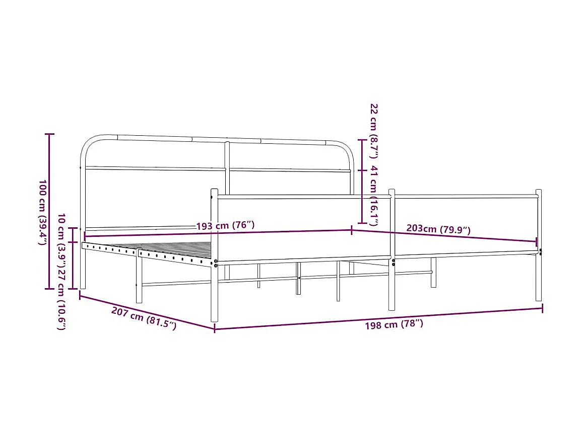 Metallbett ohne Matratze Braun Eichen-Optik 193x203 cm