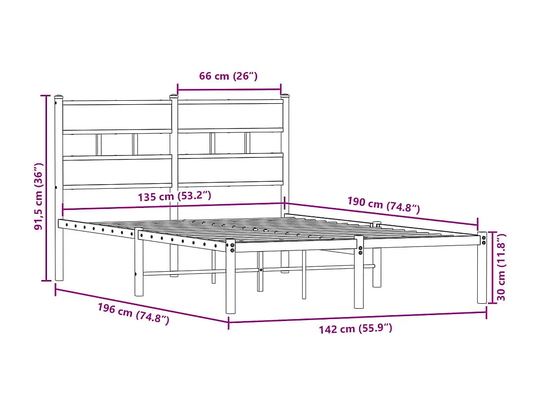 Metallbett ohne Matratze Räuchereiche 135x190 cm