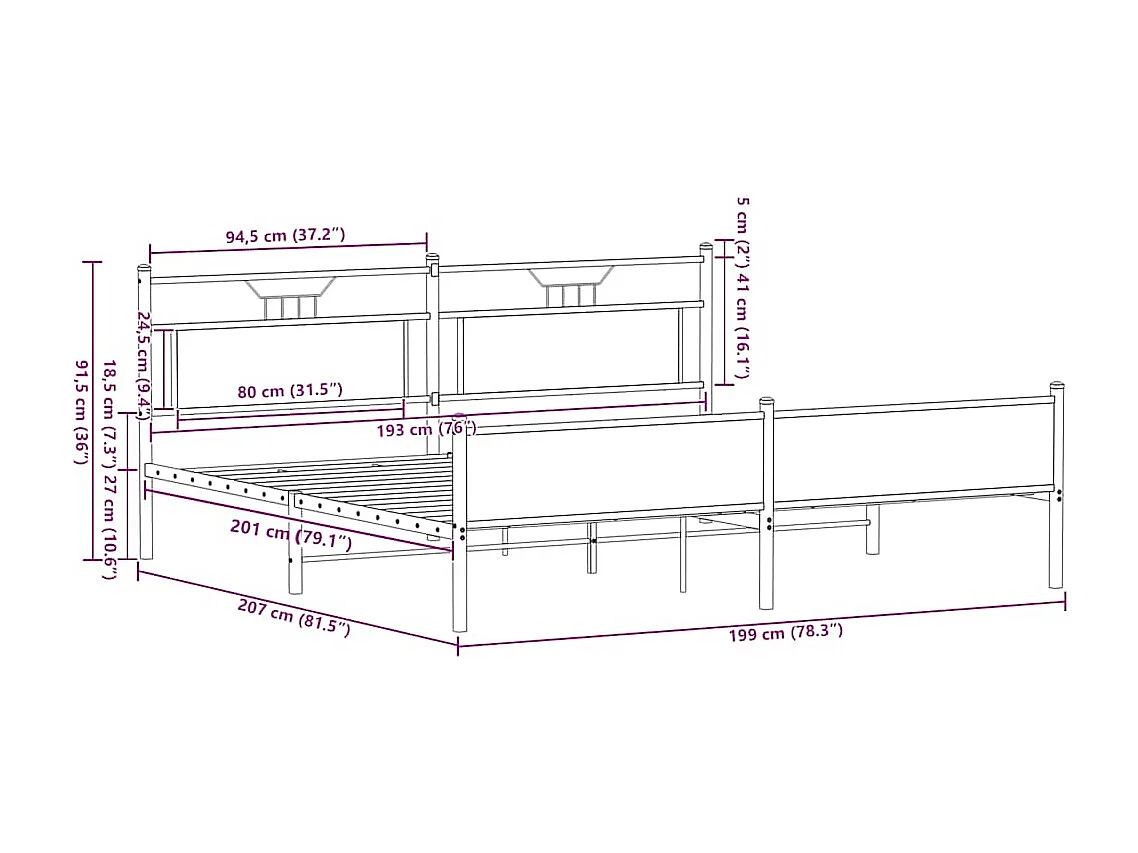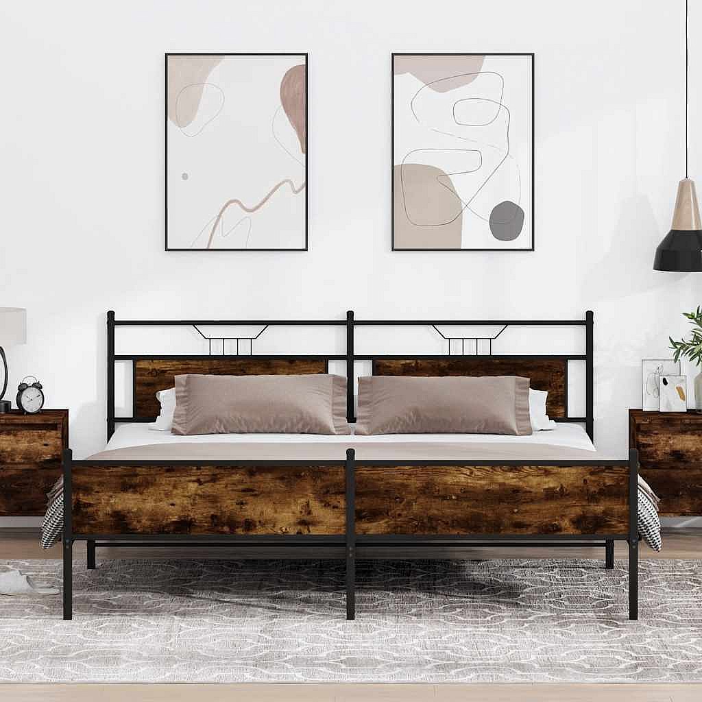 Metallbett ohne Matratze Räuchereiche 193x201 cm