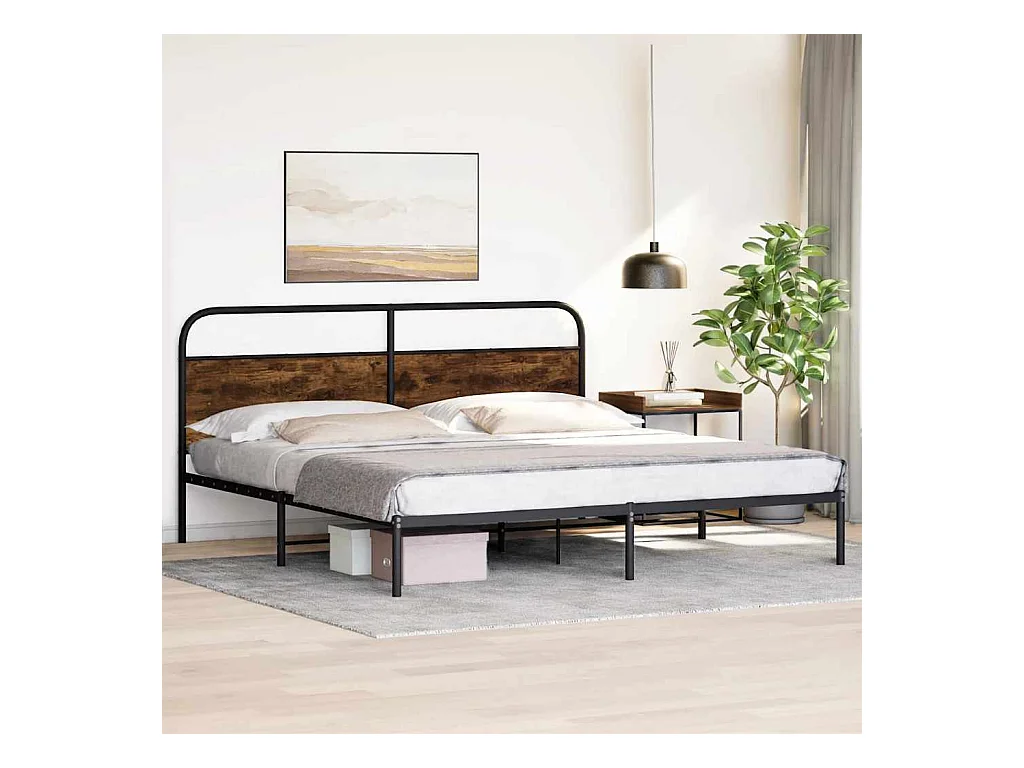 Metallbett ohne Matratze Räuchereiche 193x203 cm