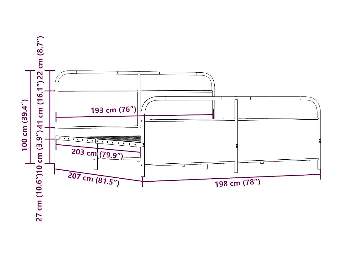 Metallbett ohne Matratze Räuchereiche 193x203 cm
