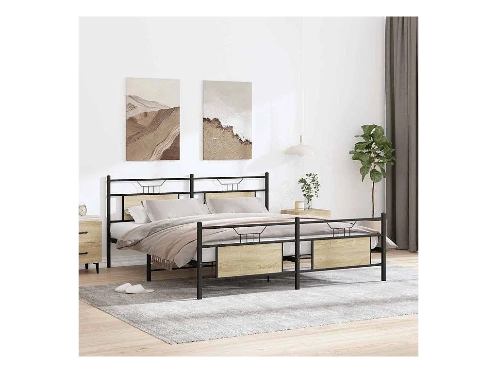 Metallbett ohne Matratze Sonoma-Eiche 160x200 cm
