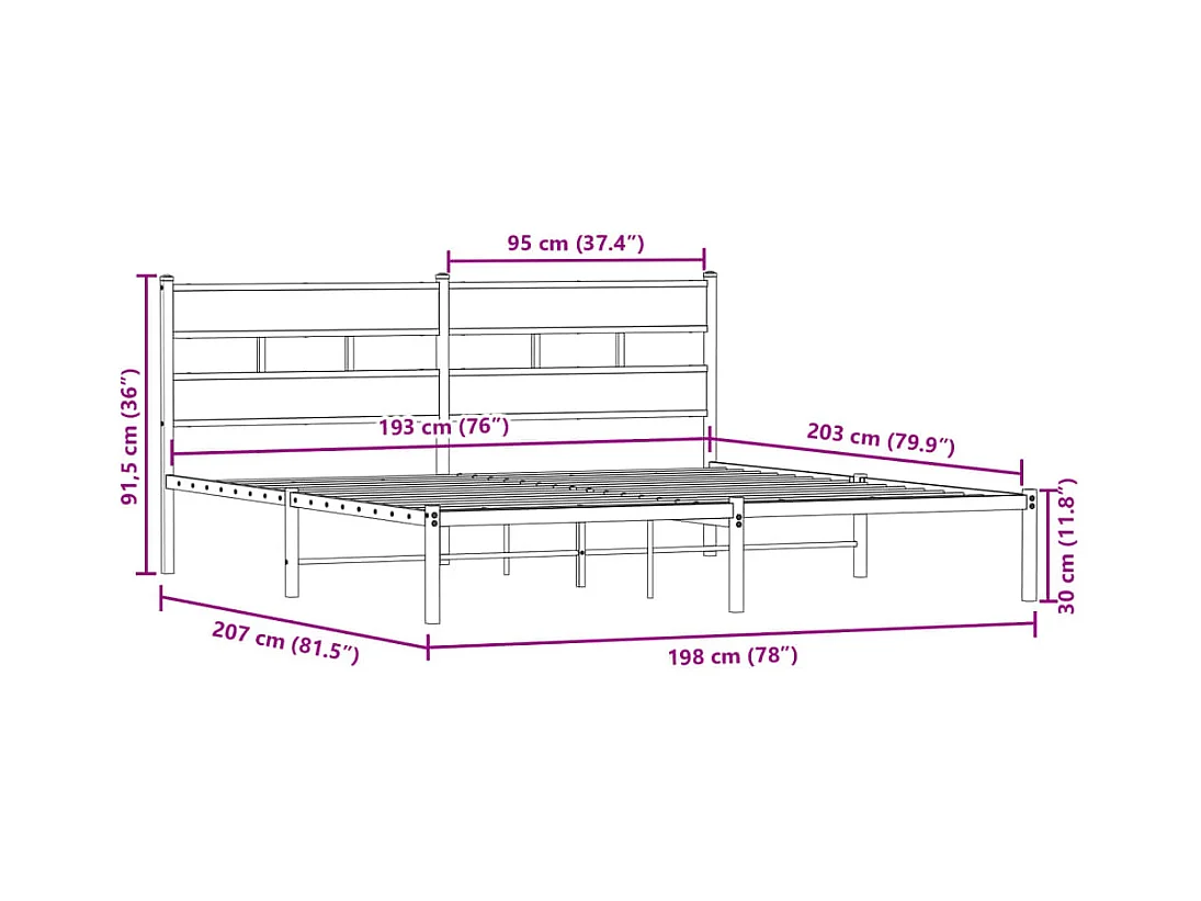 Metallbett ohne Matratze Sonoma-Eiche 193x203 cm