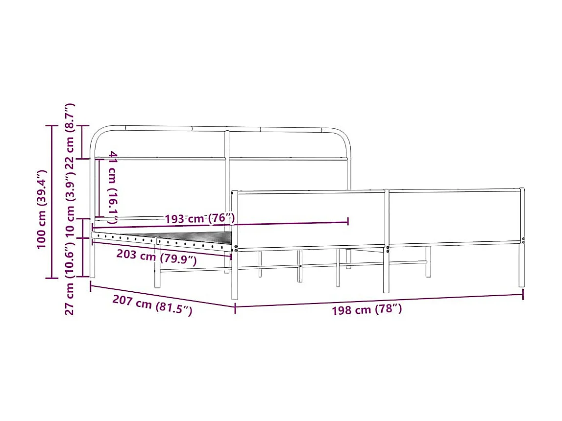 Metallbett ohne Matratze Sonoma-Eiche 193x203 cm