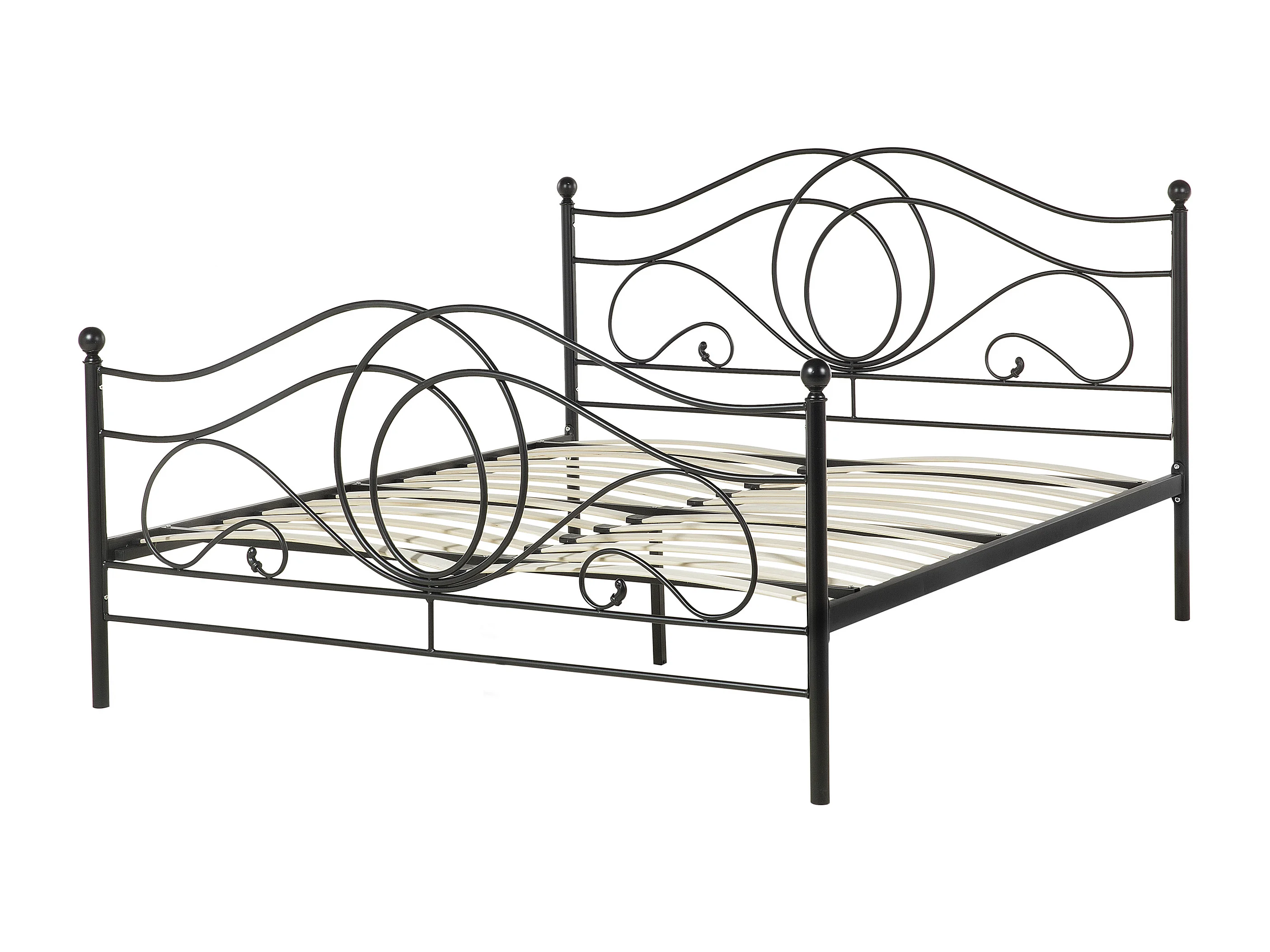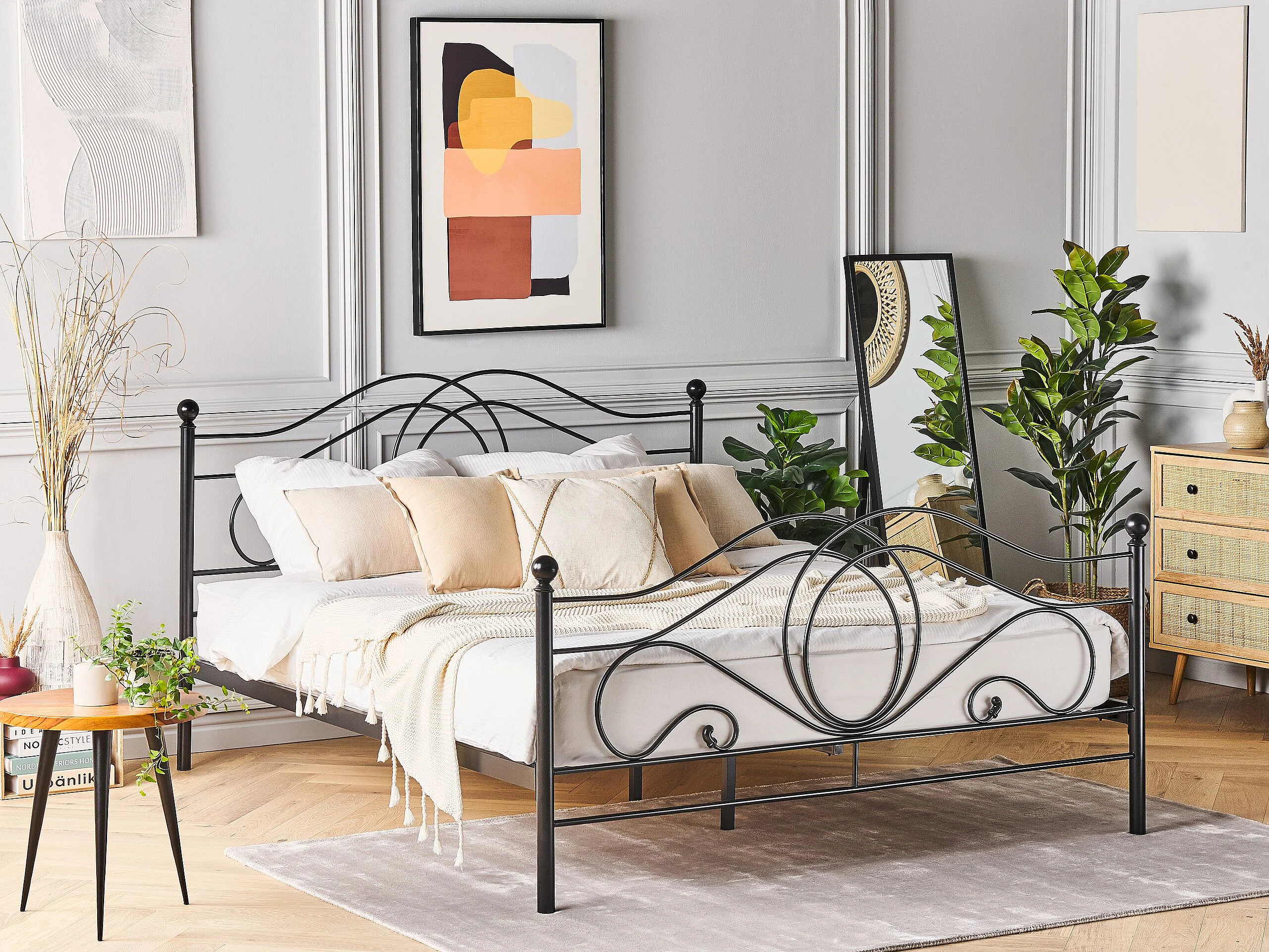 Bett schwarz Boho Metallgestell verziertes Kopfteil Lattenrost 140x200 cm Lyra