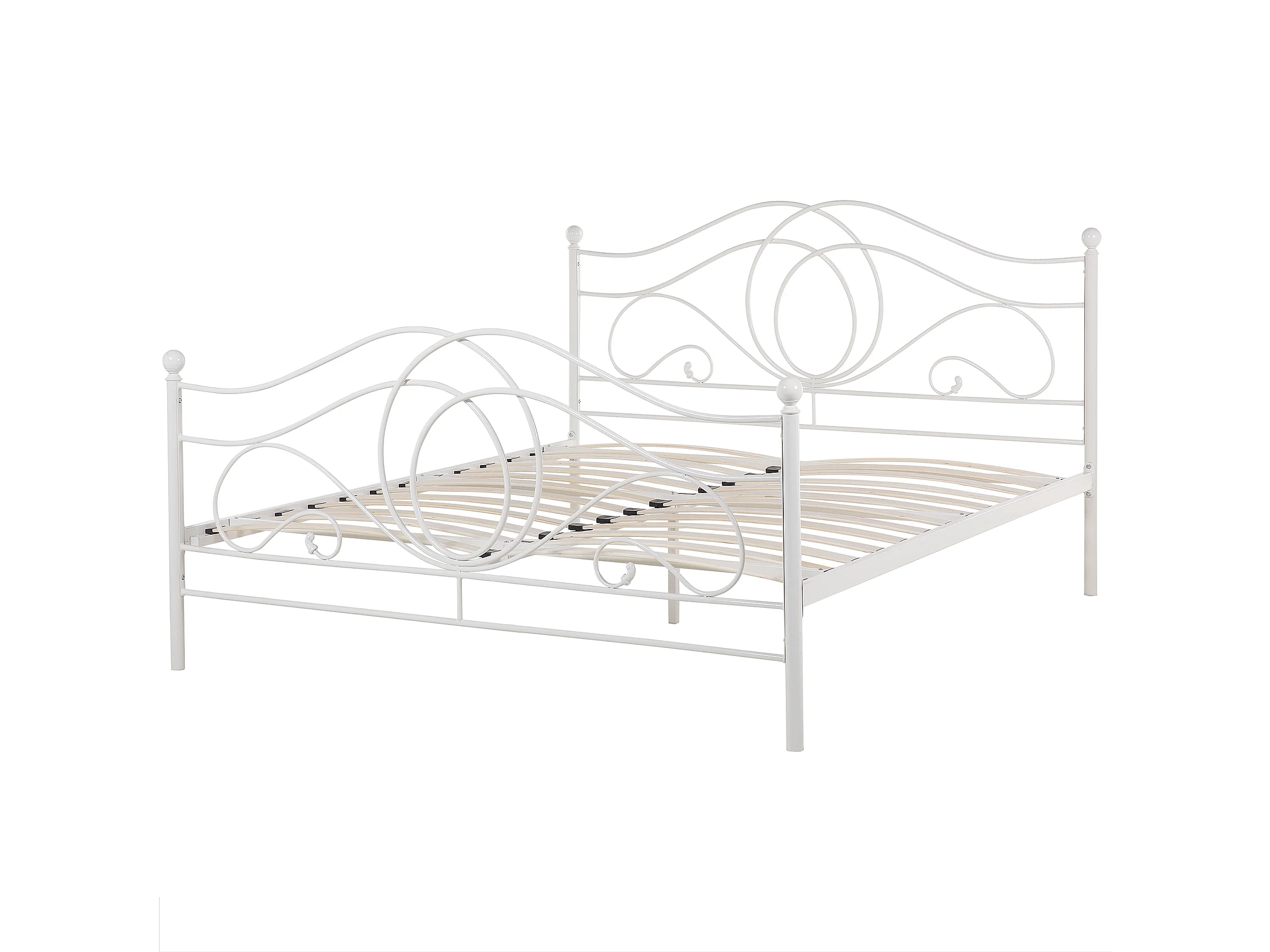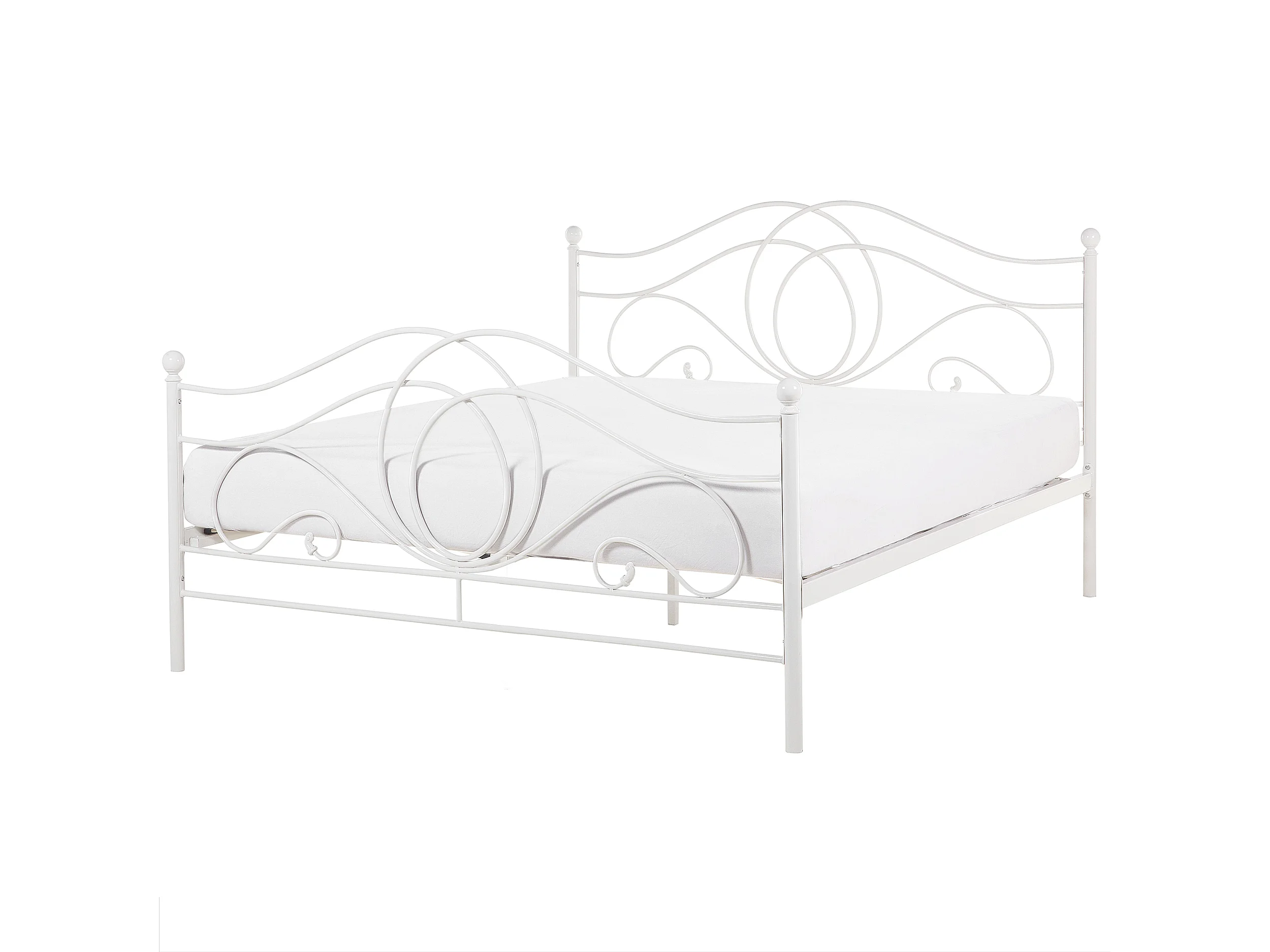 Bett im Boho Stil Metall Doppelbett 160x200 cm weiß Lyra