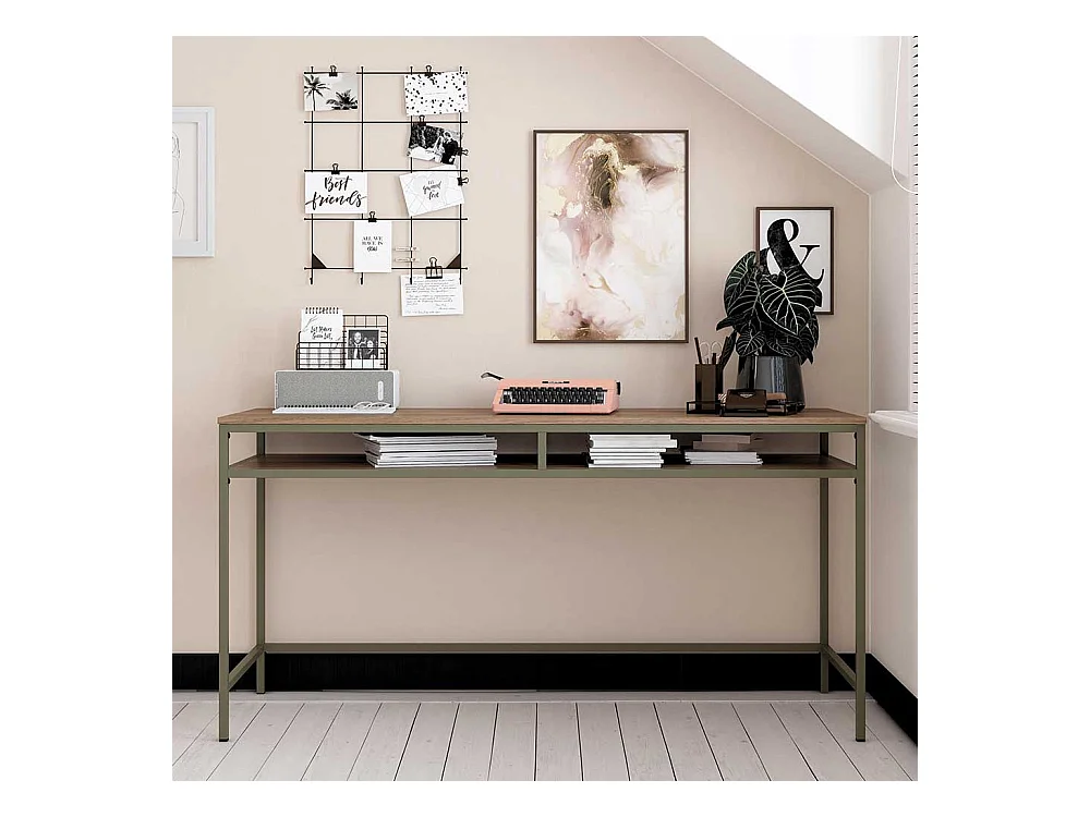 Metallgestell Schreibtisch in Walnussfarben und Oliv Industry und Loft Stil