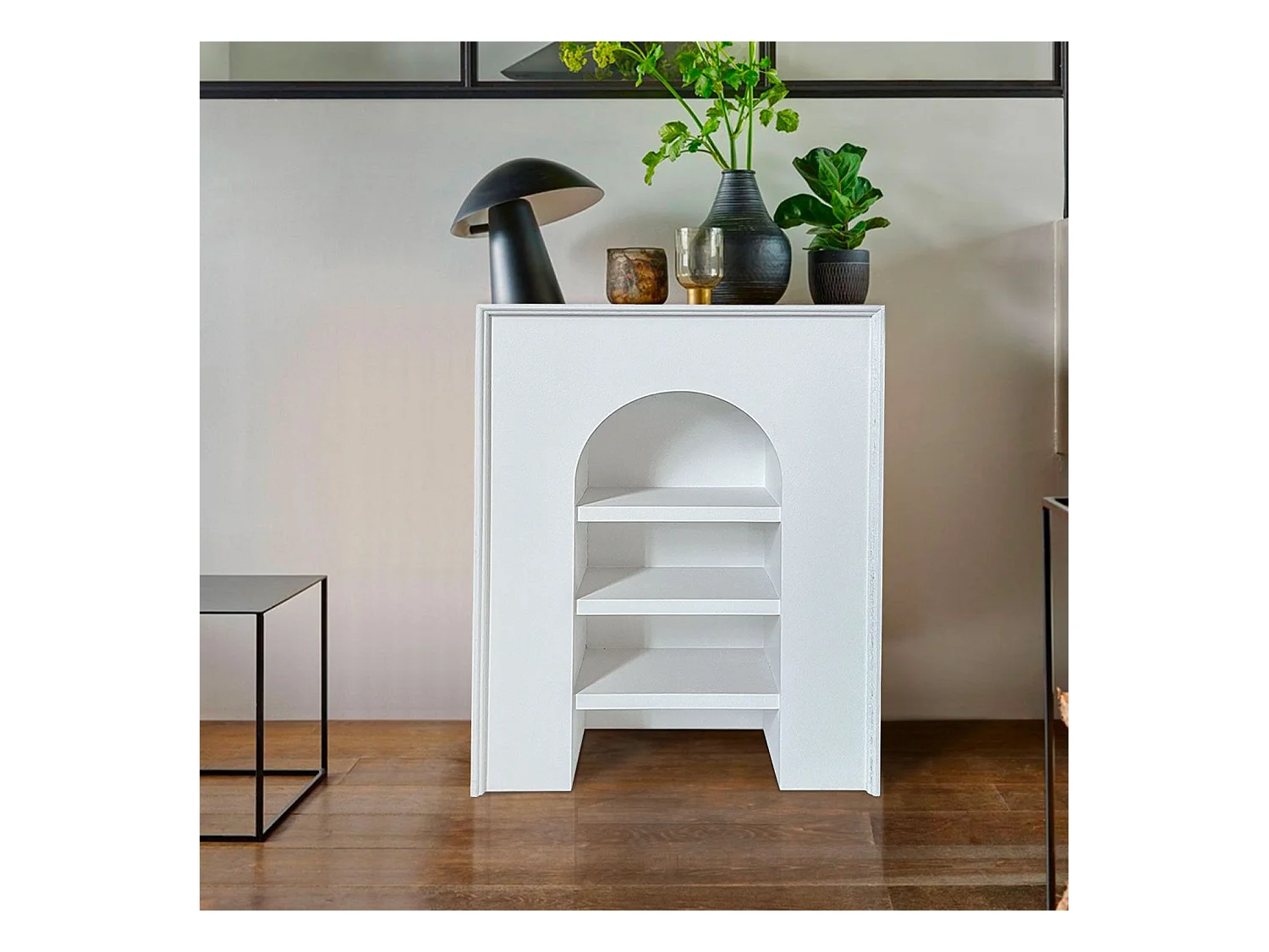 Meuble à étagères style naturel avec arche Vincia L60xH80cm Blanc texturé
