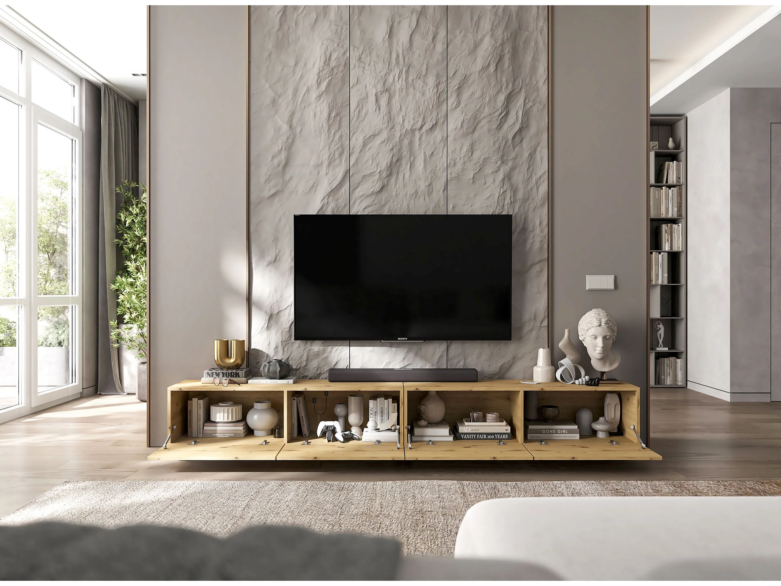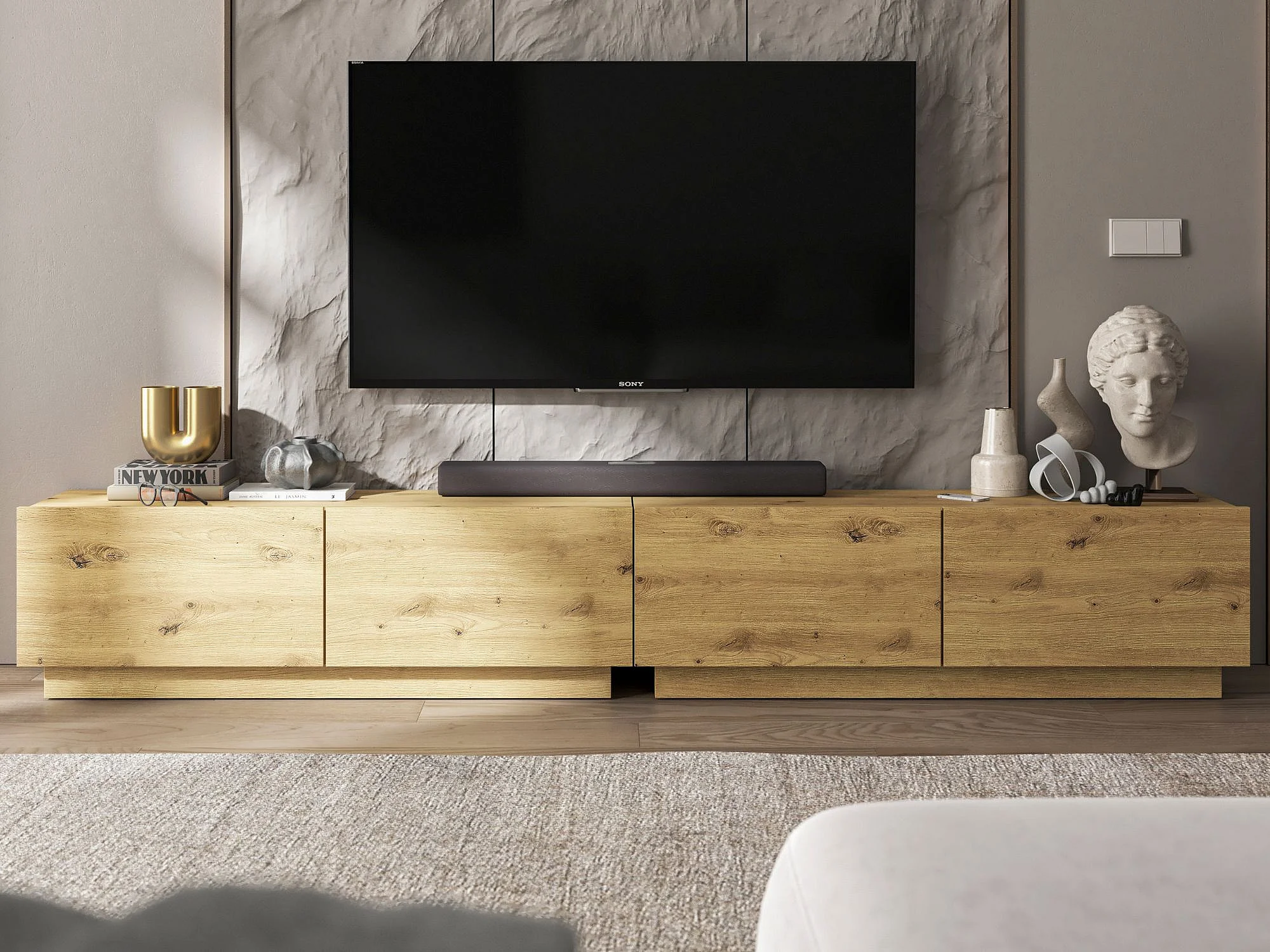 Meuble TV avec 4 portes - corps Artisan Chêne mat, façades Artisan Chêne mat - 240 cm, sur socle