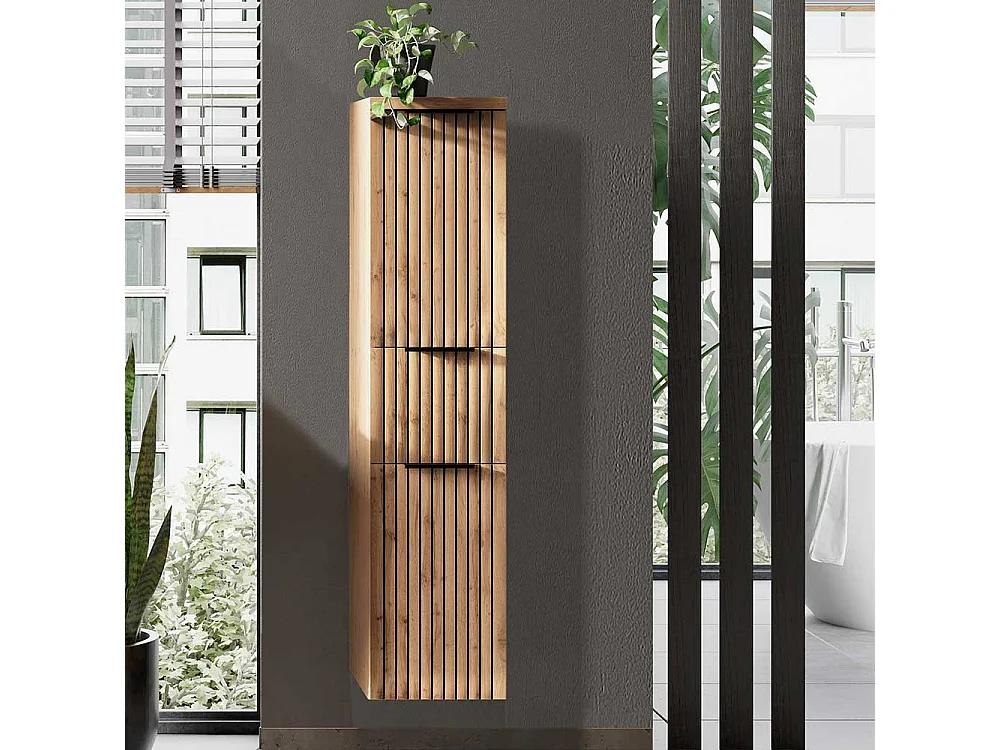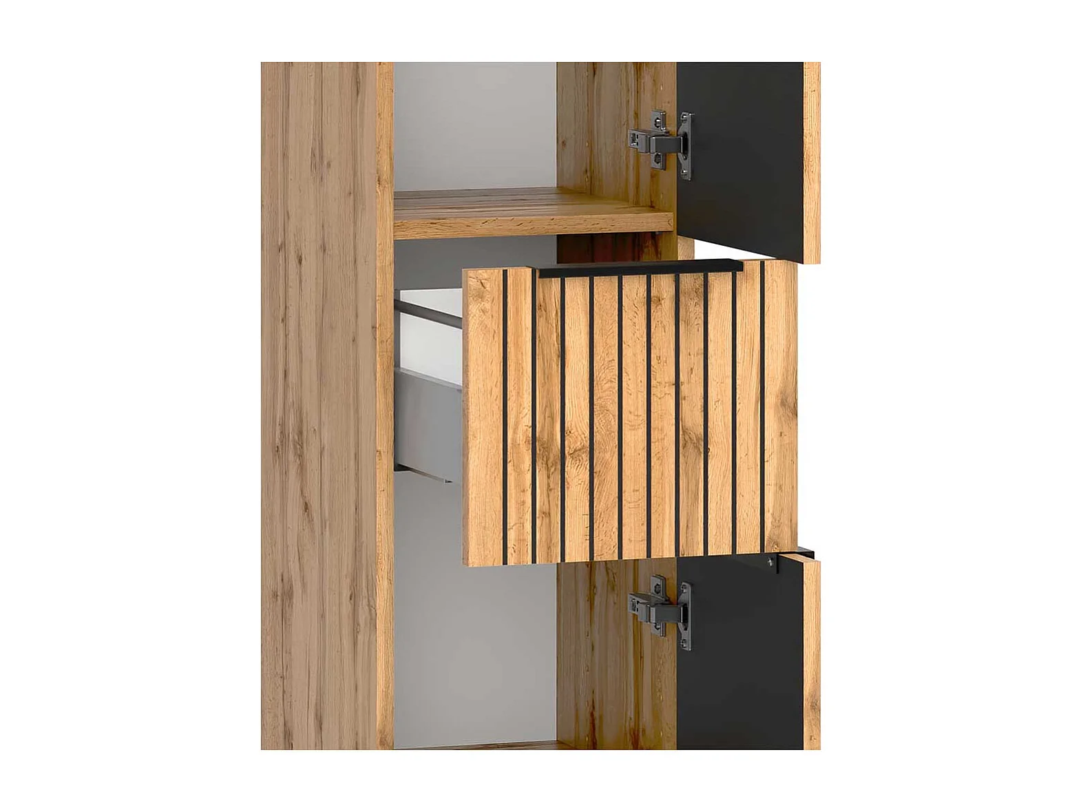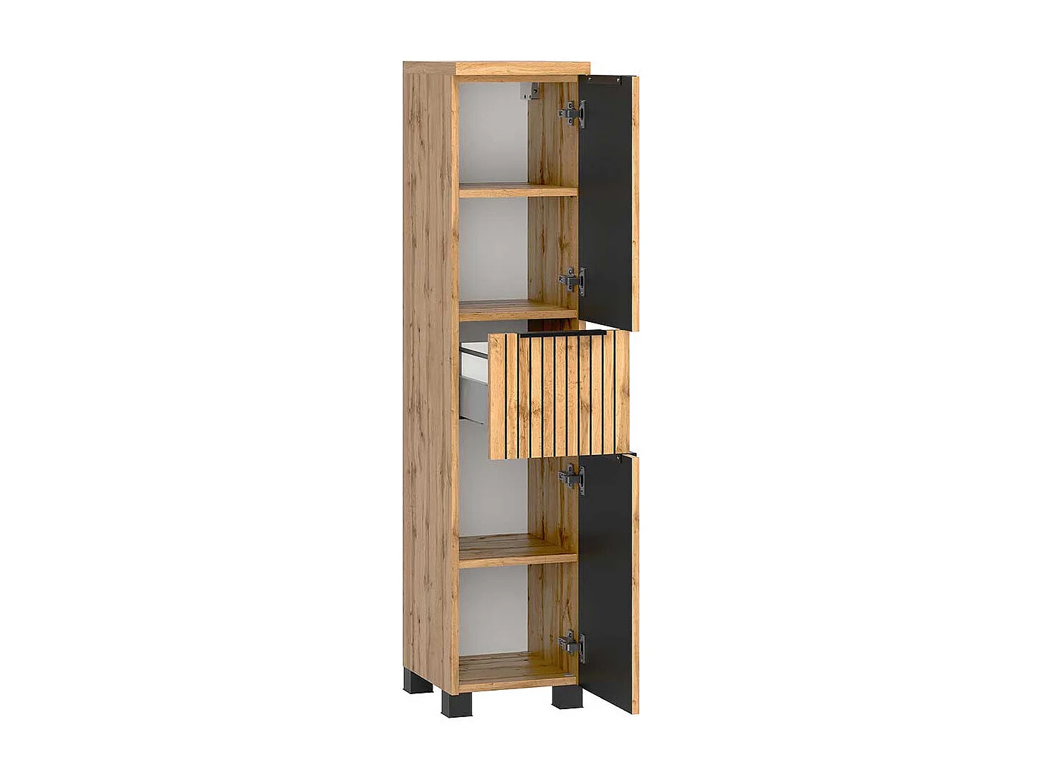 Midischrank Bad mit Schublade in Wildeichefarben Schwarz