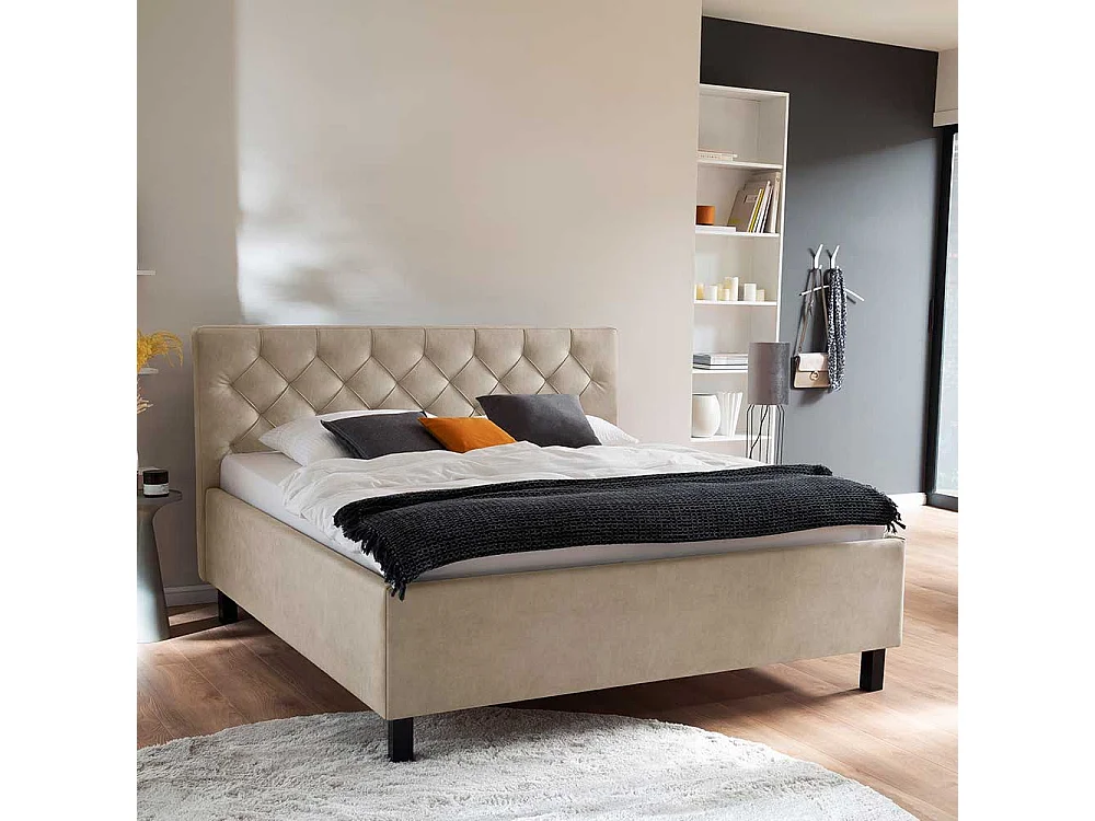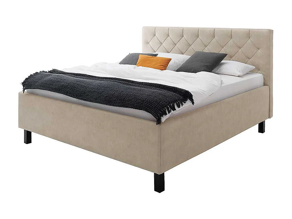 Mikrofaser Polsterbett mit gestepptem Kopfteil Bettkasten