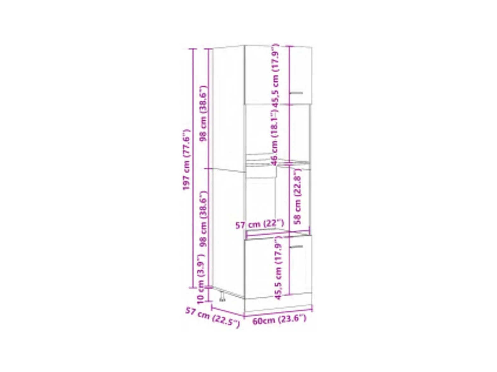 Mikrowellenschrank Lyon Artisan-Eiche 60x57x207 cm Holzwerkstoff
