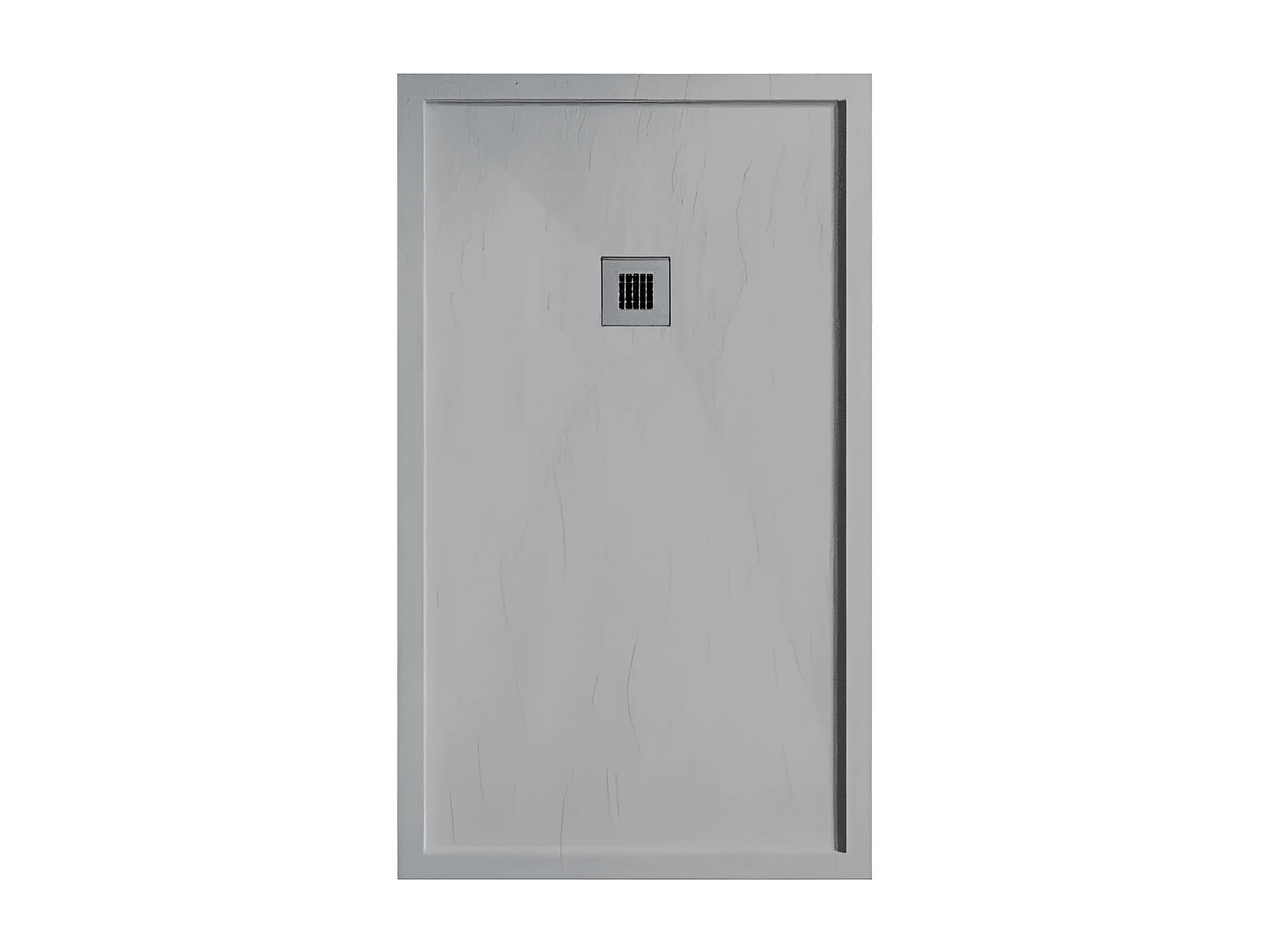 Mineralguss-Duschwanne extra flach mit Rand SARIN GRAU 80x200 cm Ablaufschutz in Chrom