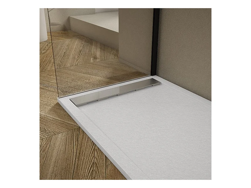 Mineralguss-Duschwanne extra flach RIBERA Schieferoptik WEIß 90x150cm