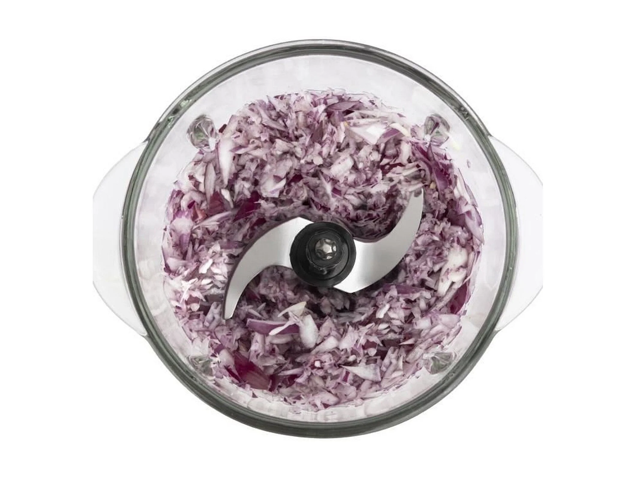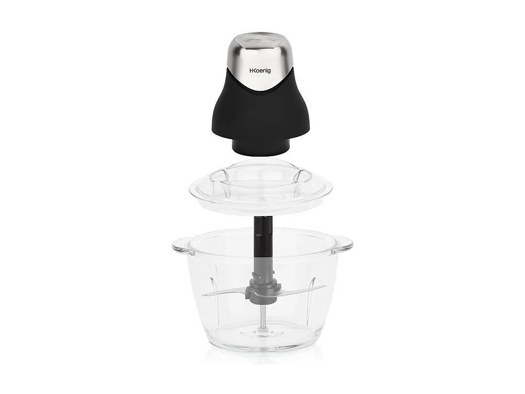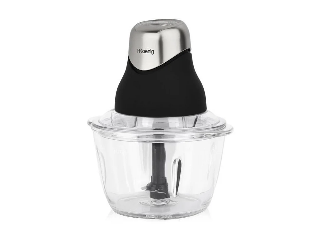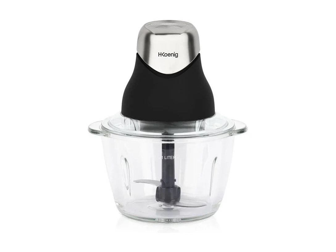 Mini-Elektrozerkleinerer H.Koenig LEO8 320W - Glasbehälter 1L, Edelstahlklingen, matt schwarzes und chromfarbenes Design