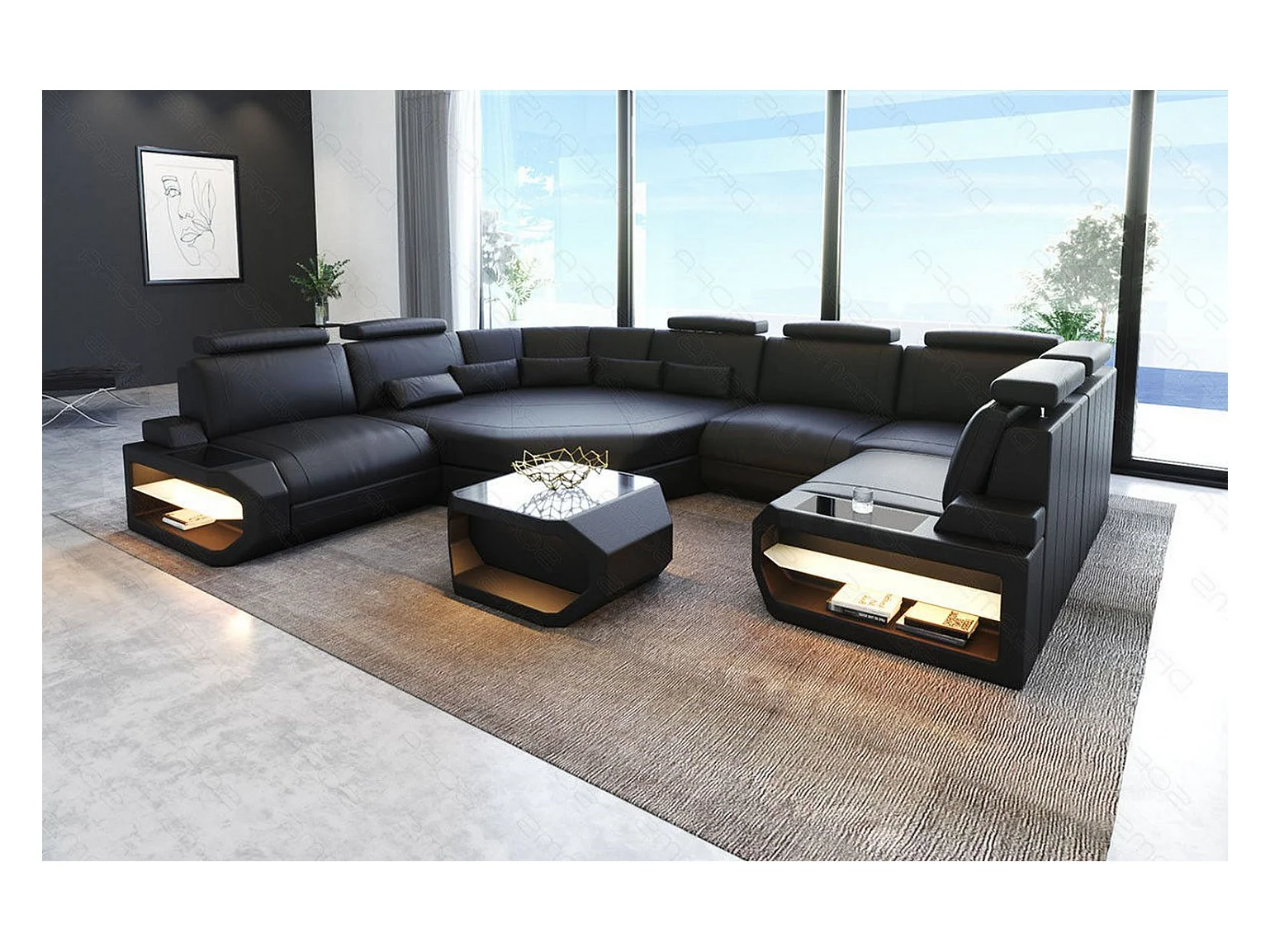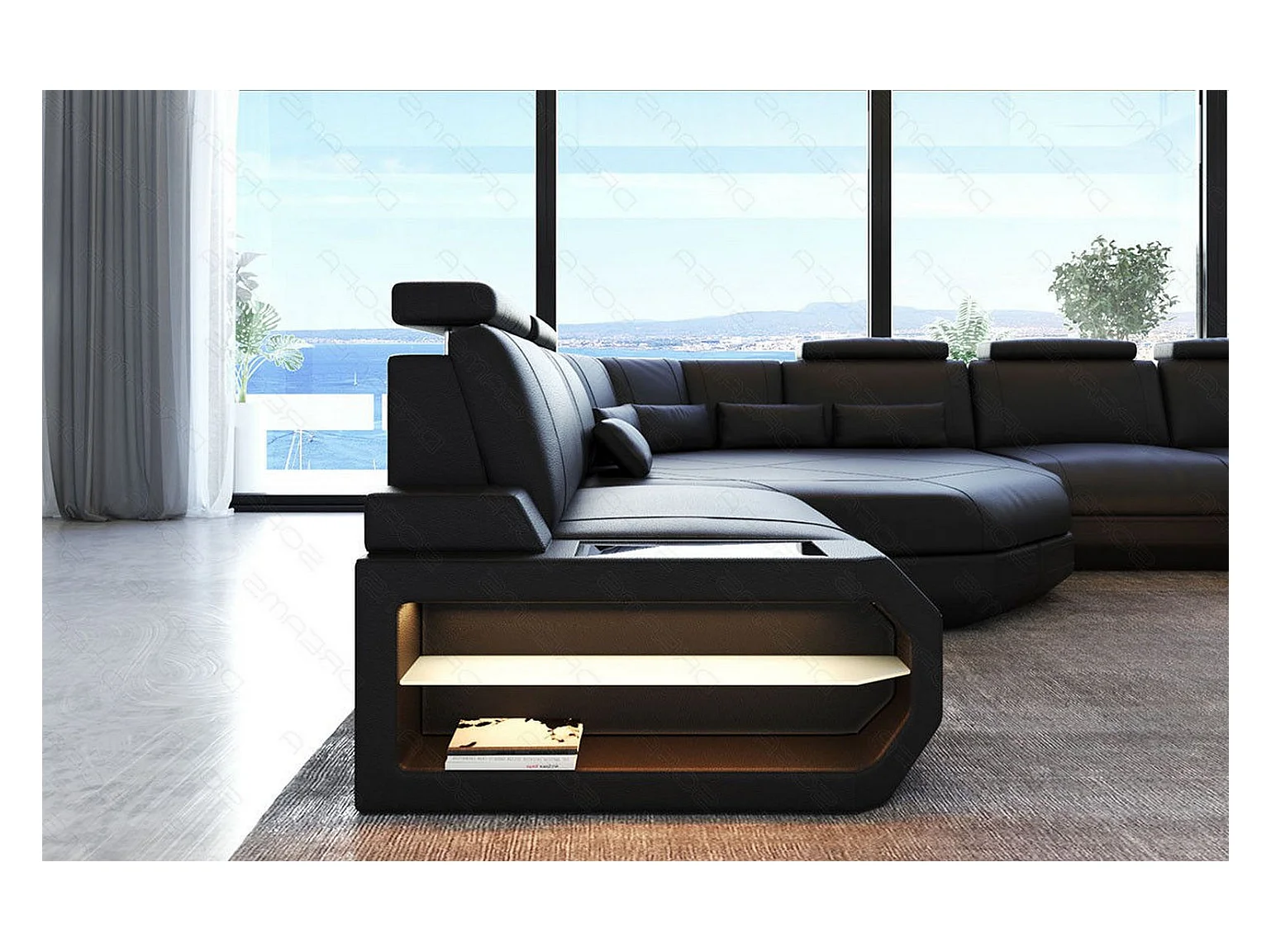 Mini Sofa Asti U Leder Echtleder Schwarz Links