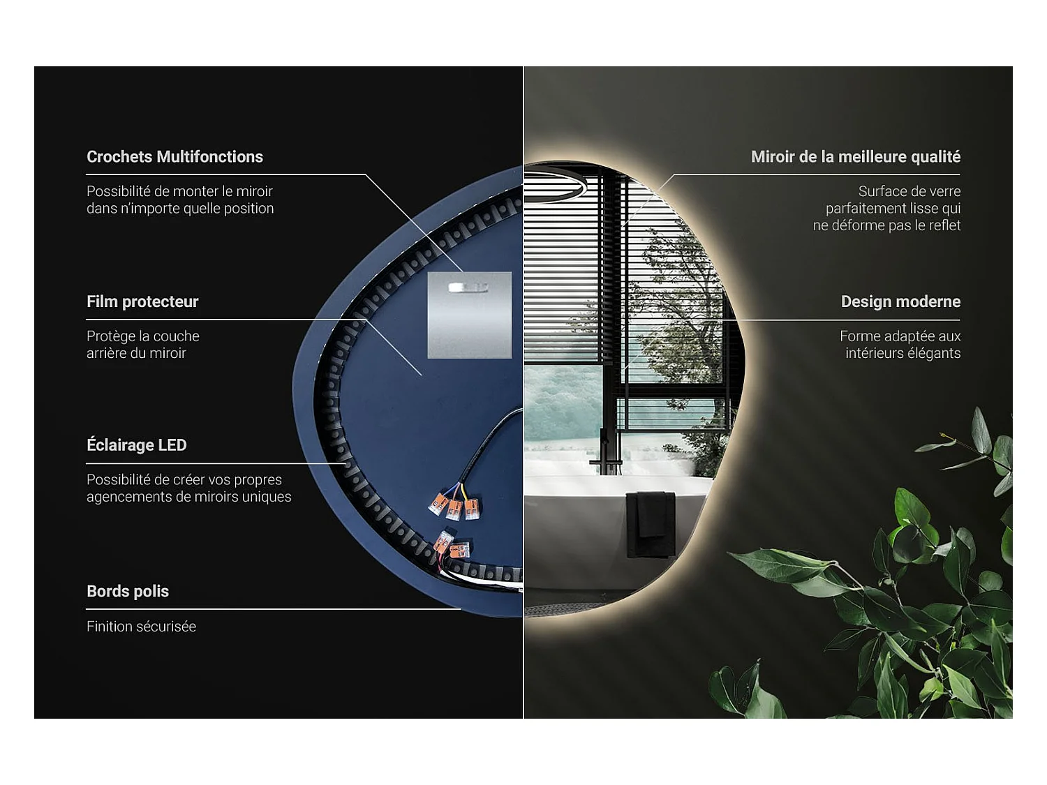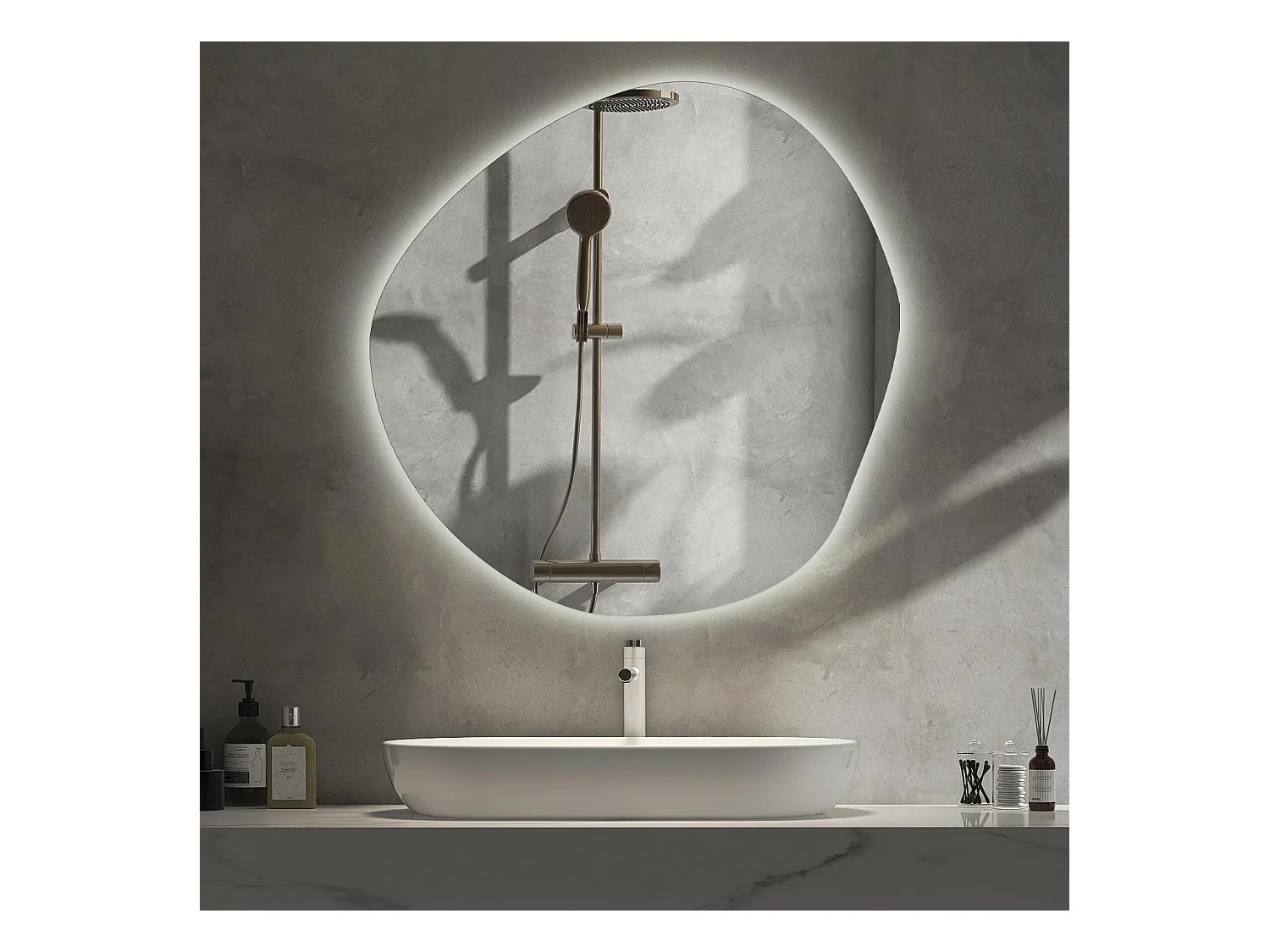 Unregelmäßig geformter dekorativer LED-Spiegel - Tulup - 67 cm x 67,6 cm - Warmes Licht