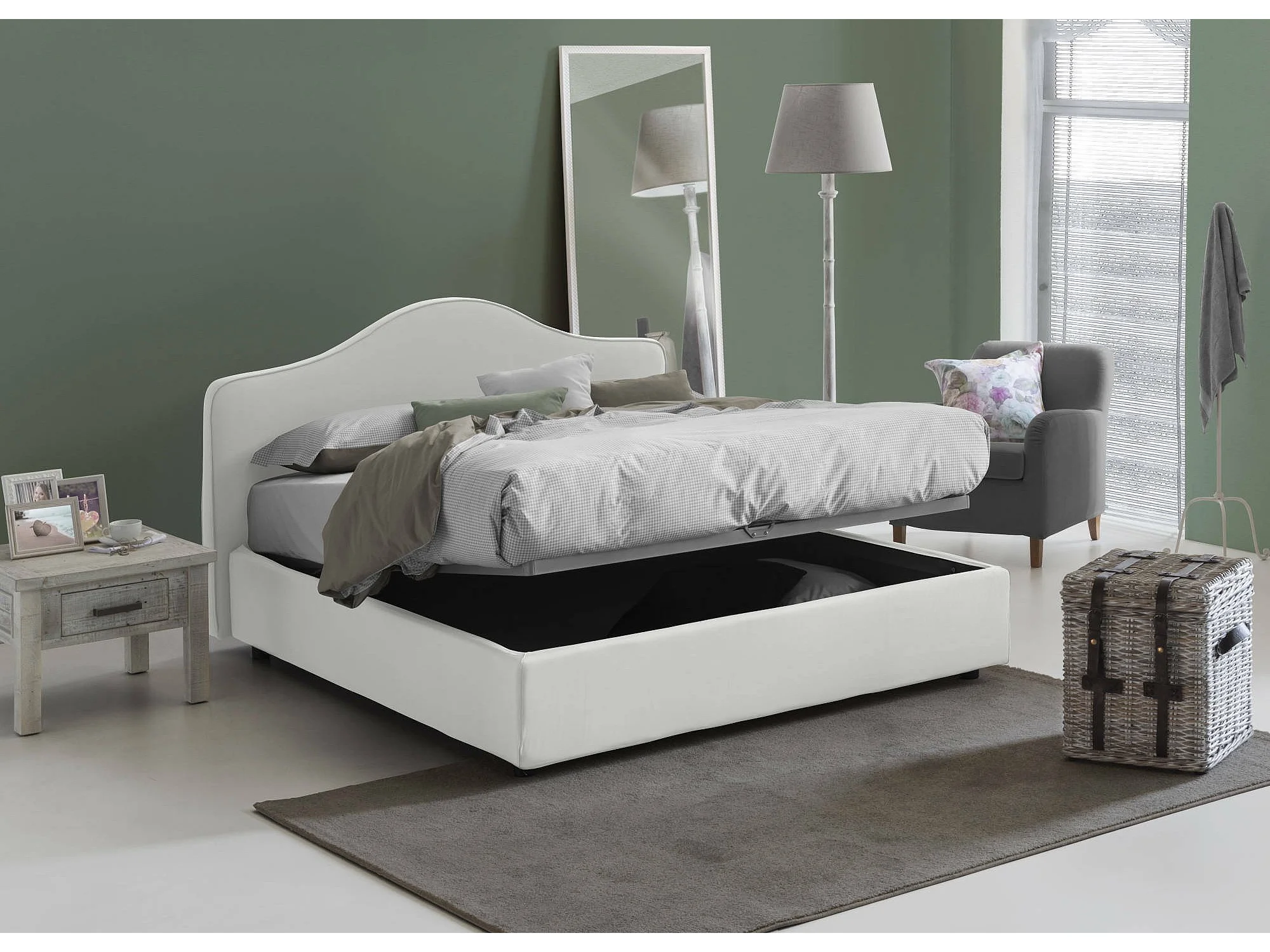 Mirta Doppelbett, Bettkasten mit Stoffbezug, 100 % Made in Italy, Öffnung vorne, inklusive Matratze 160 x 200 cm, Weiß