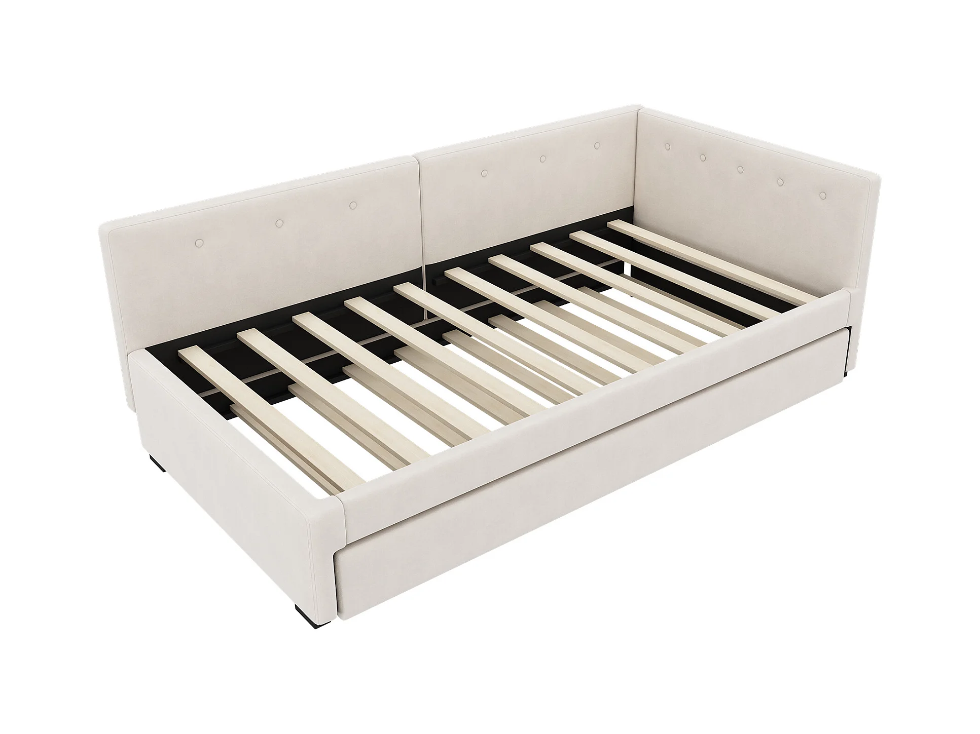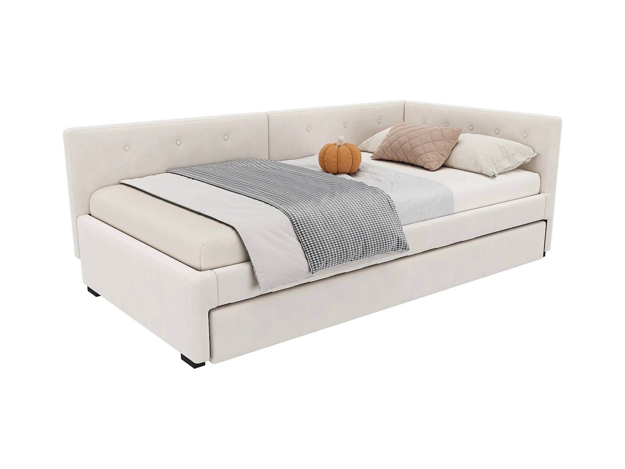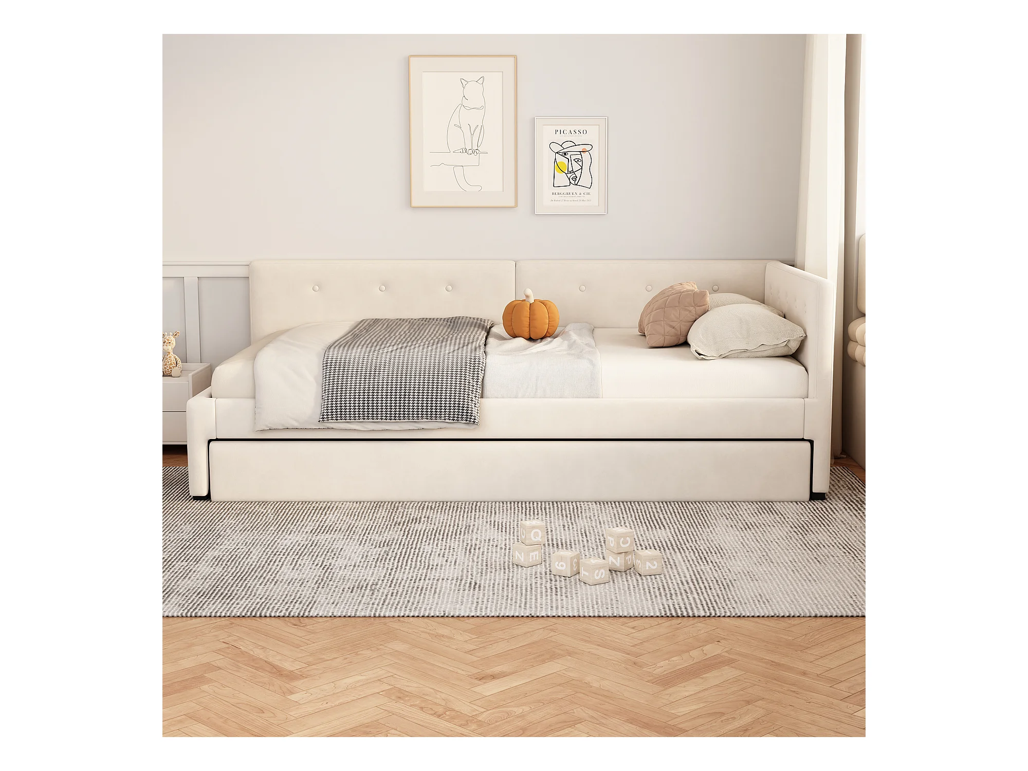 Mit Samt gepolstertes Schlafsofa 90 x 200 cm + ein Ausziehbett 90 x 190 cm – Beige