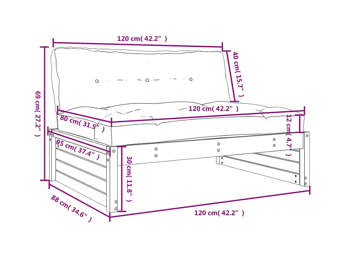 Mittelsofa 120x80 cm Kiefernholz Imprägniert