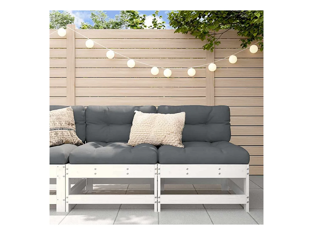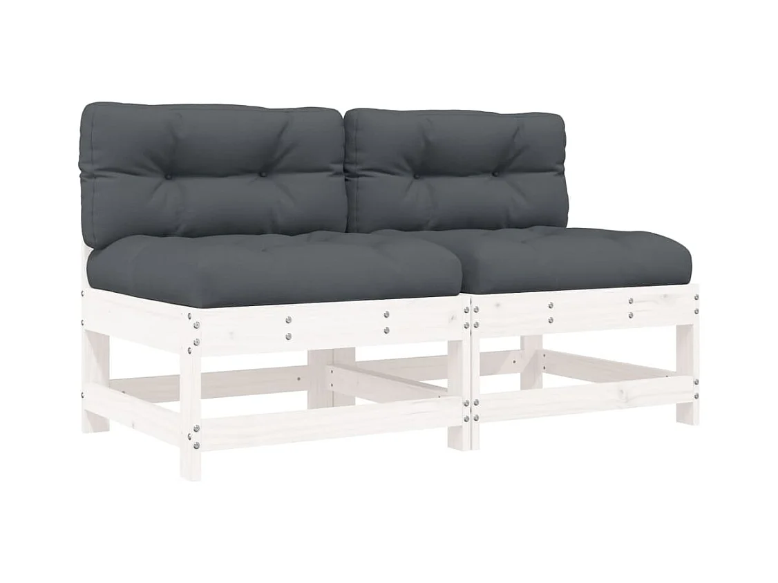Mittelsofas mit Kissen 2 Stk. Weiß Massivholz Kiefer