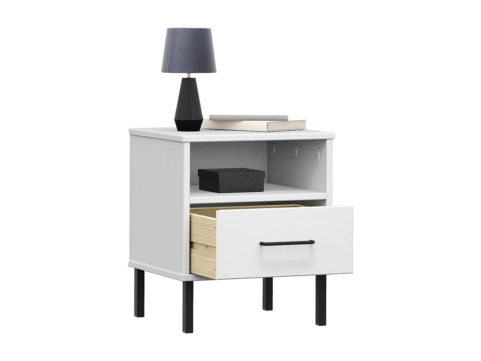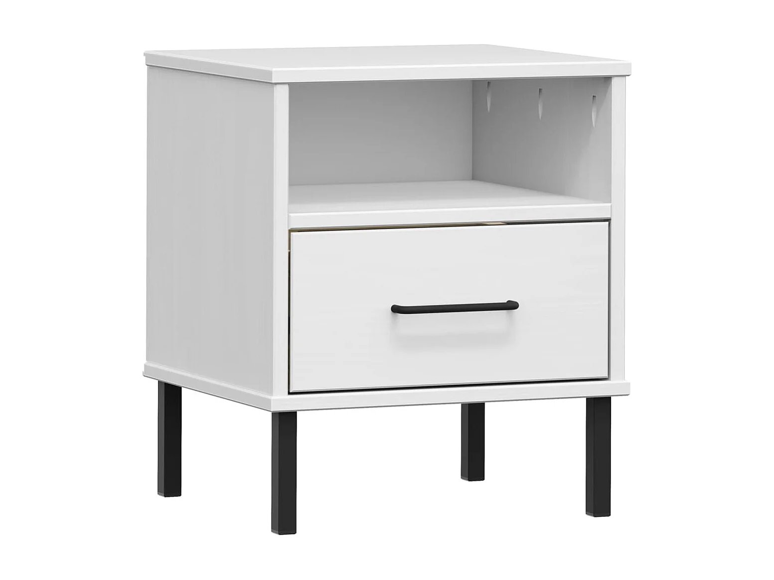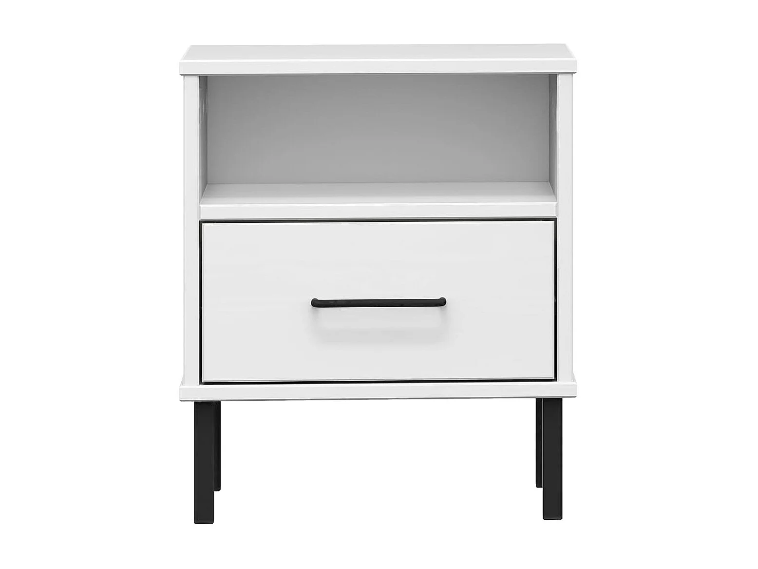 Mjolda Nachttisch OSLO mit Metallbeinen Weiß Massivholz Kiefer