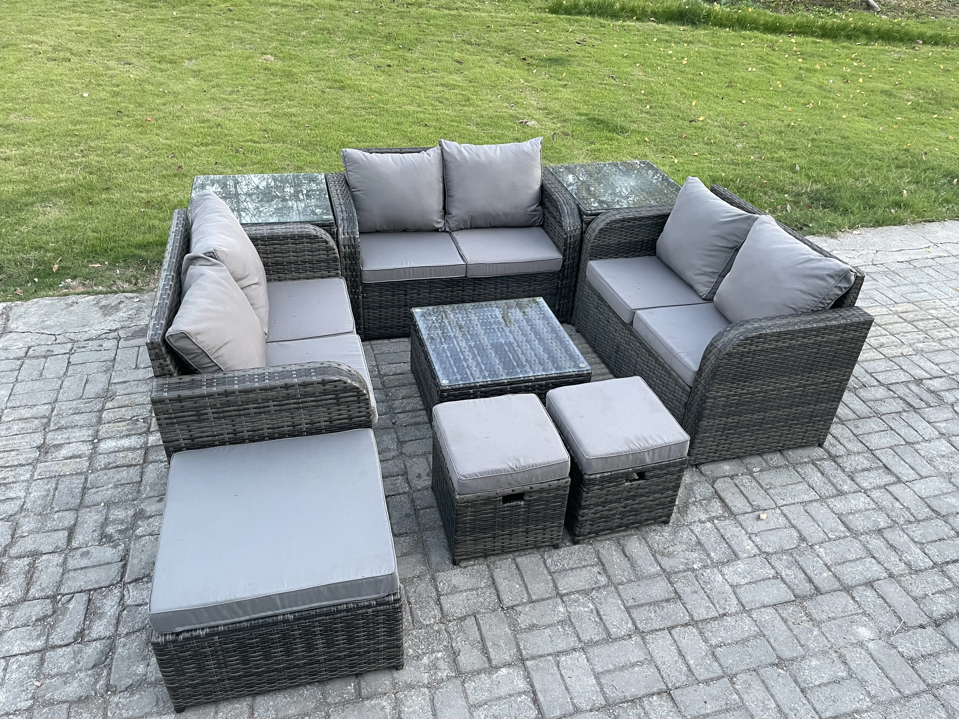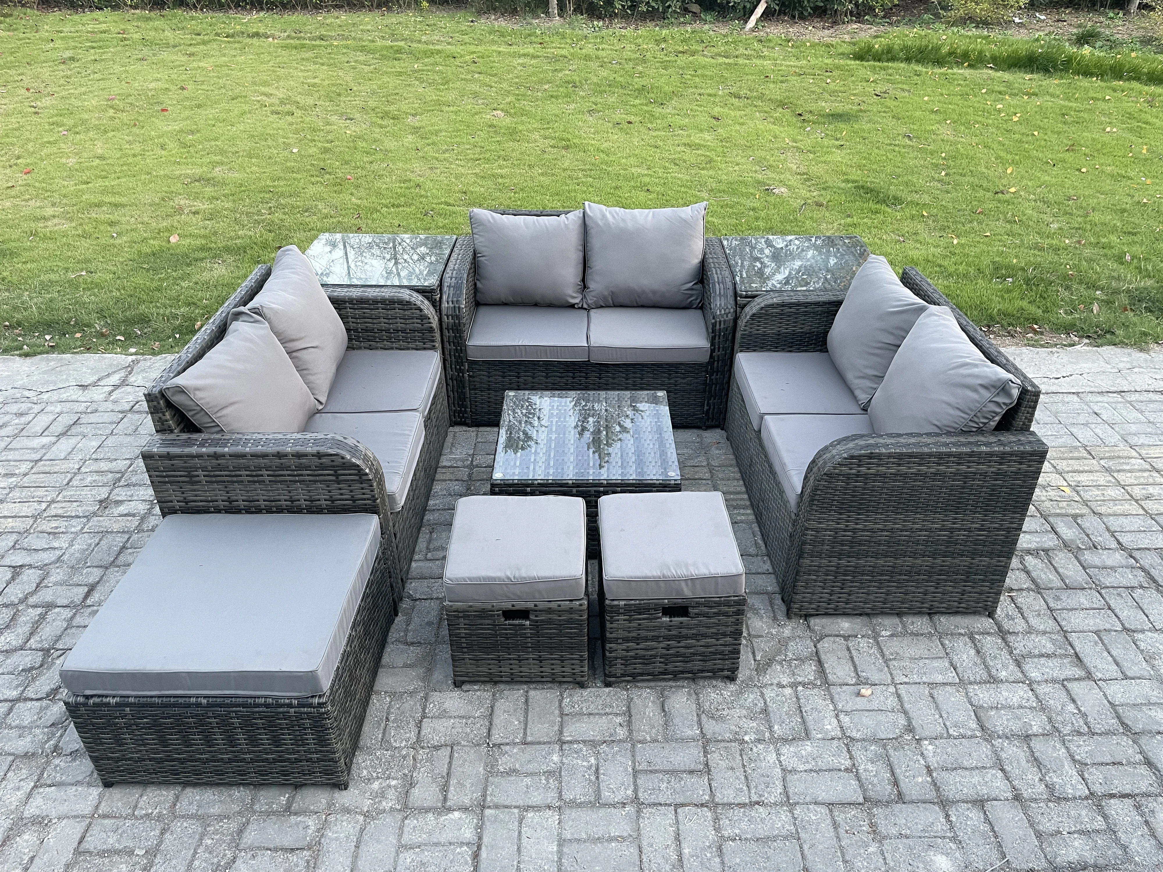 Möbe 9-Sitzer Gartenmöbel set für den Terrasse Balkon Dunkelgrau