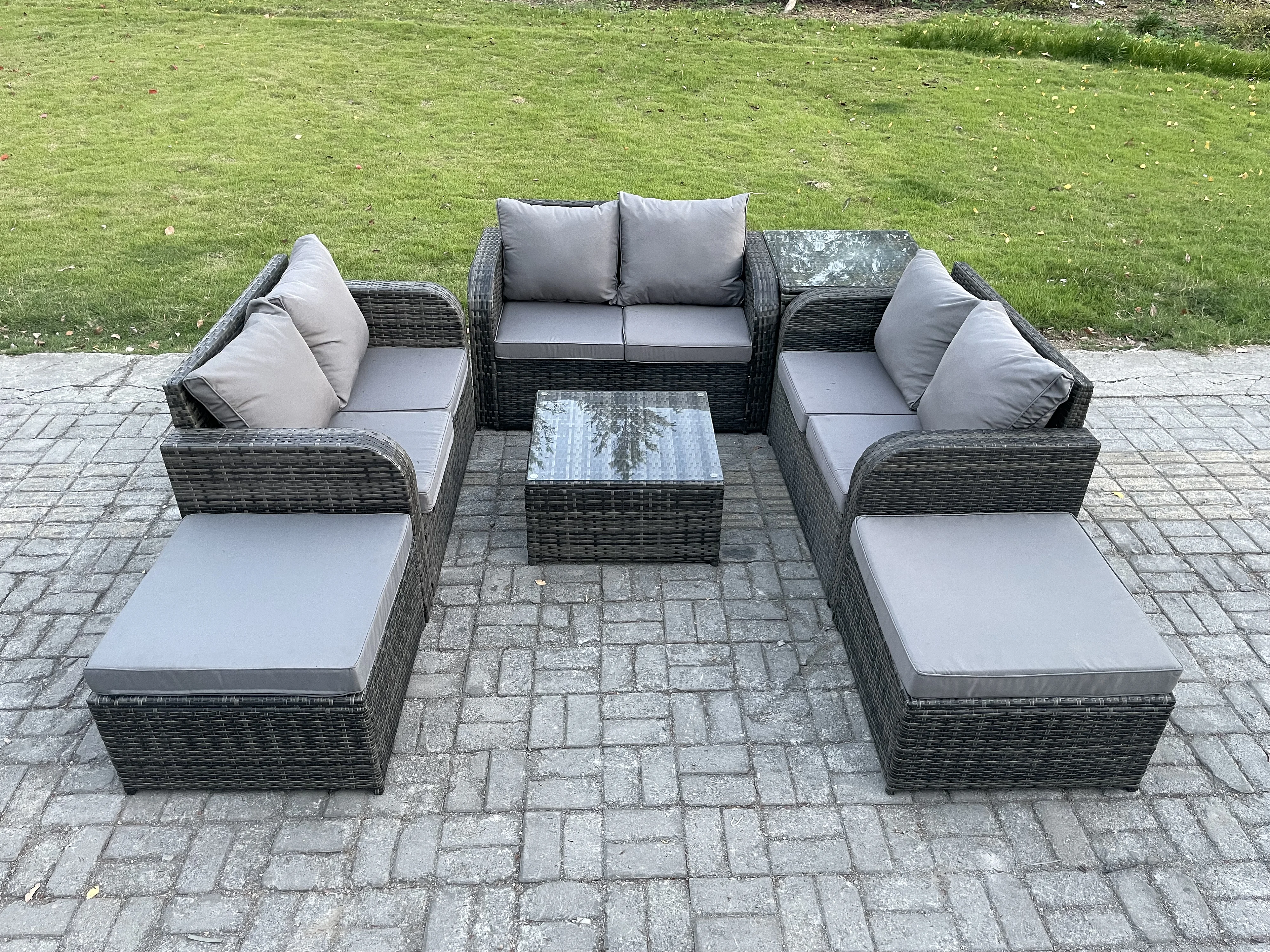 Möbe Gartenmöbel set für den Terrasse Balkon 8-Sitzer Dunkelgrau