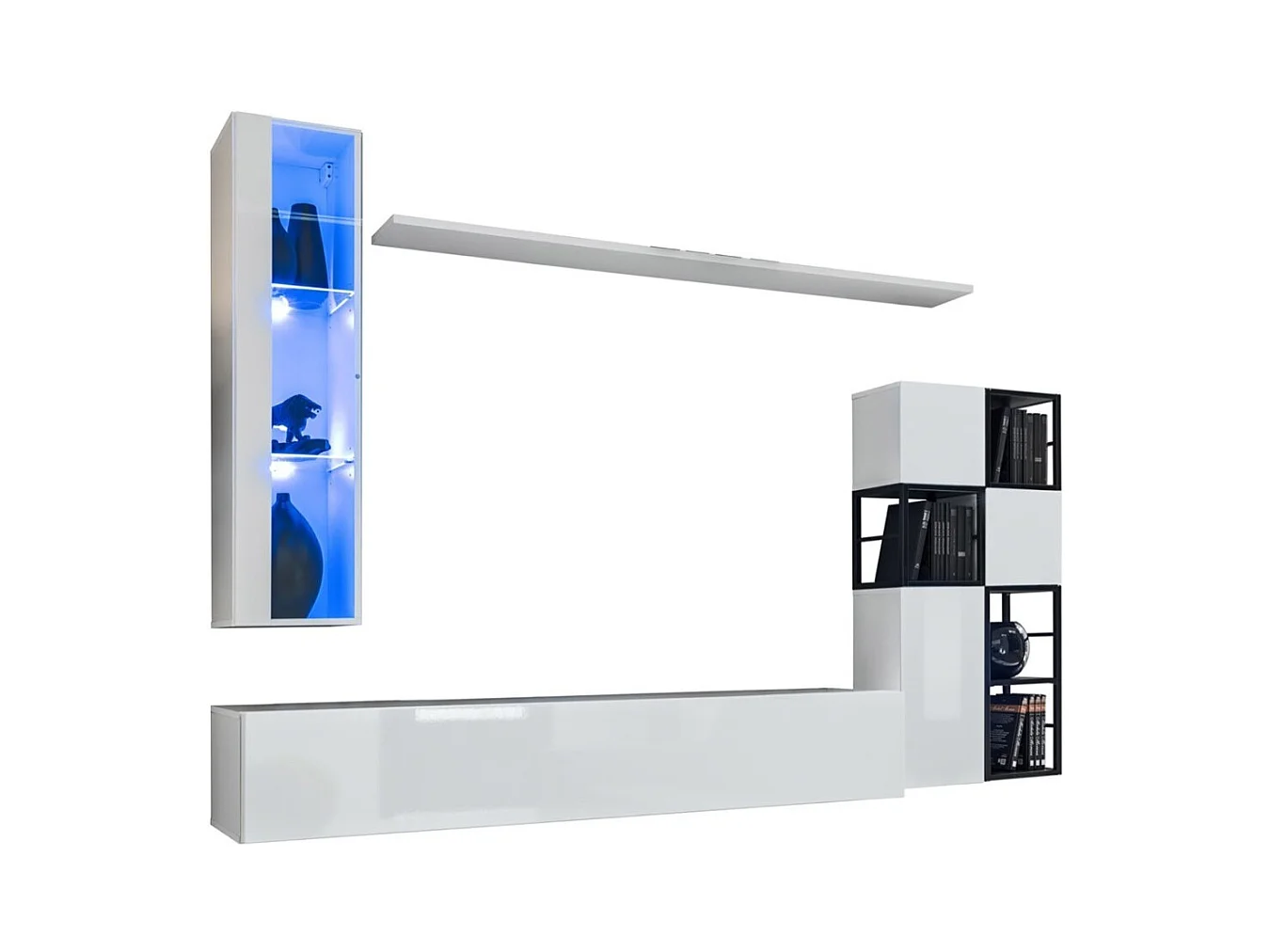 Wohnzimmermöbel Set im Industriestil SWITCH M2 – Weiß – Integrierte LEDs – Modernes Design