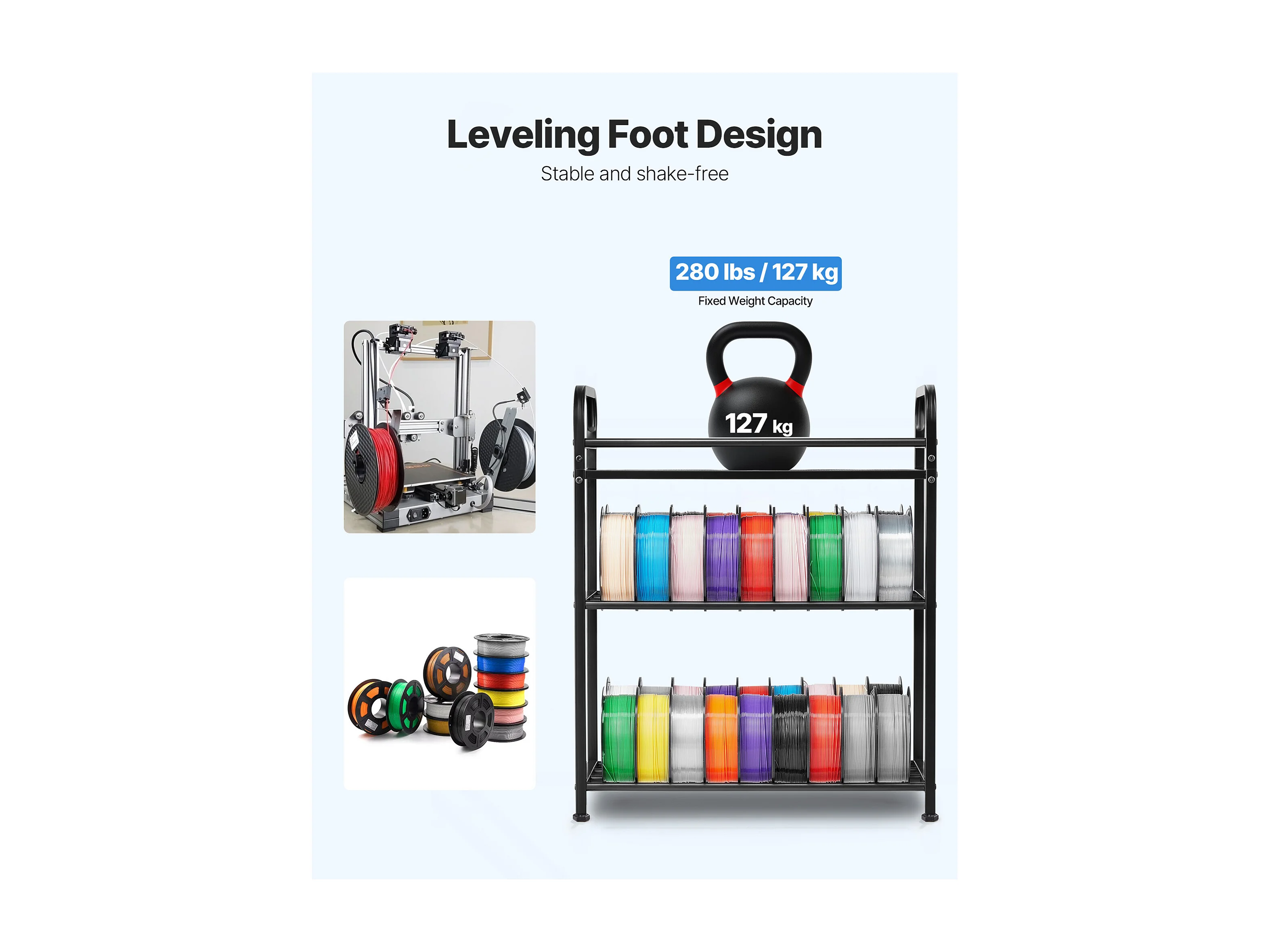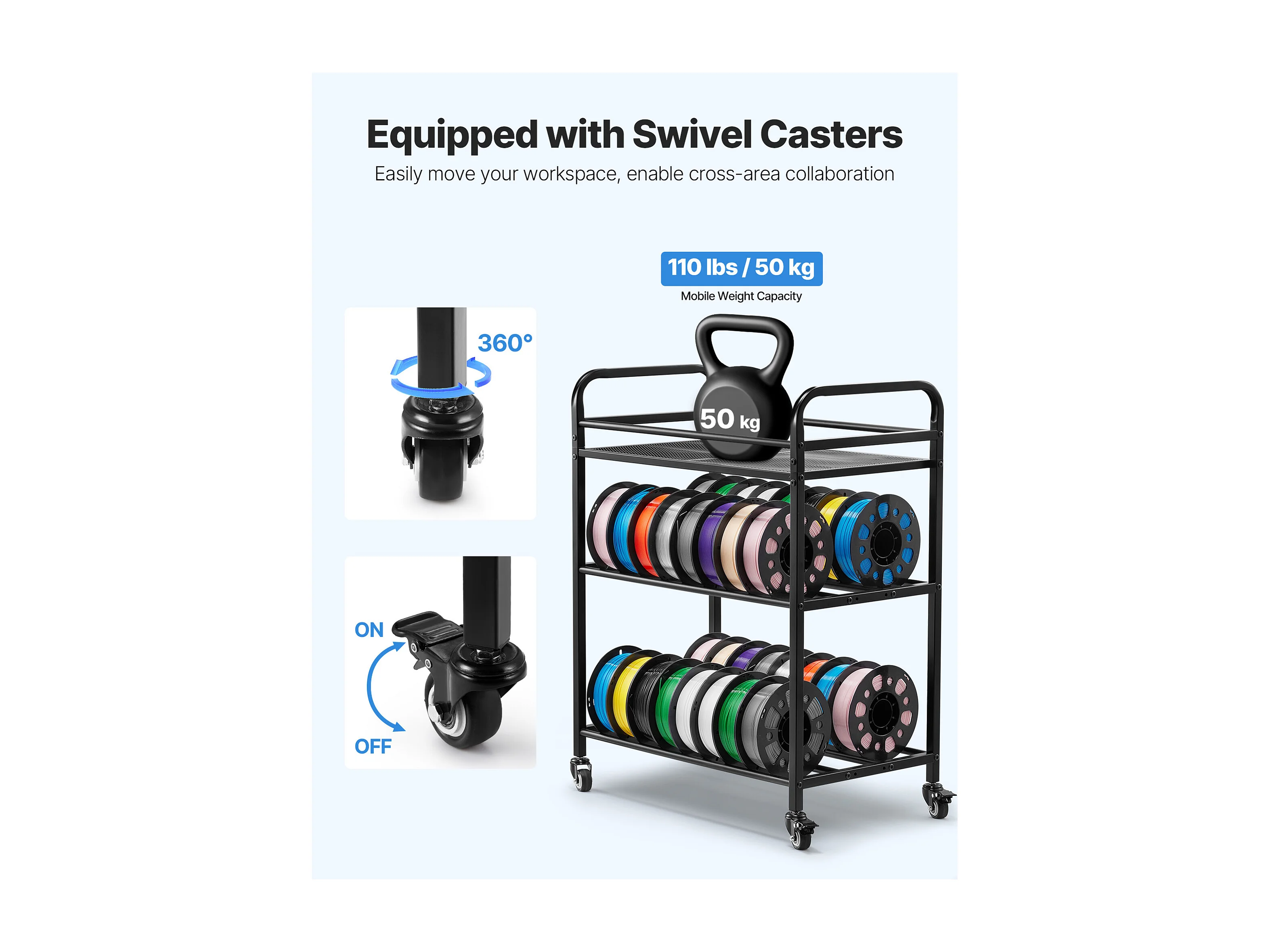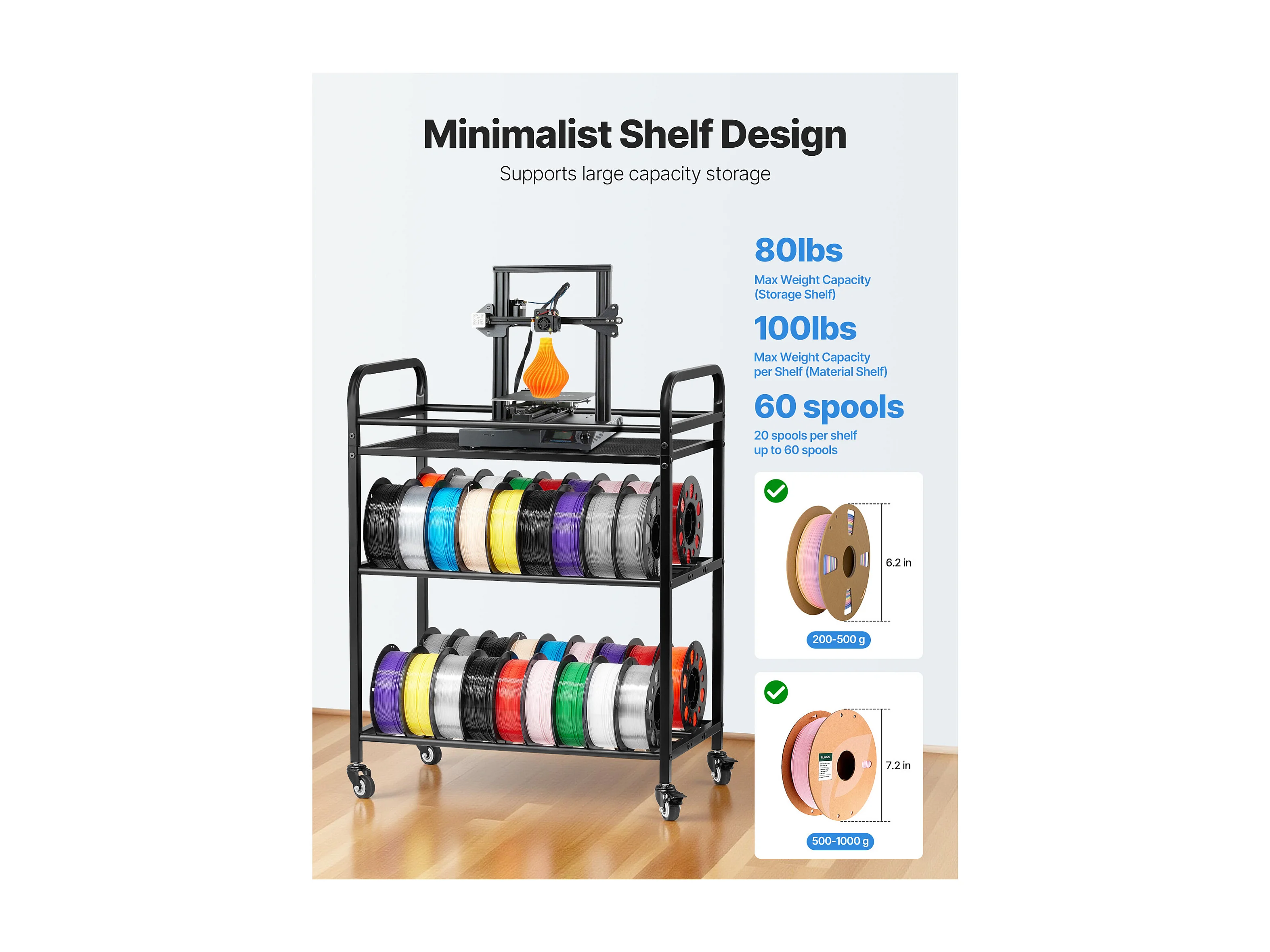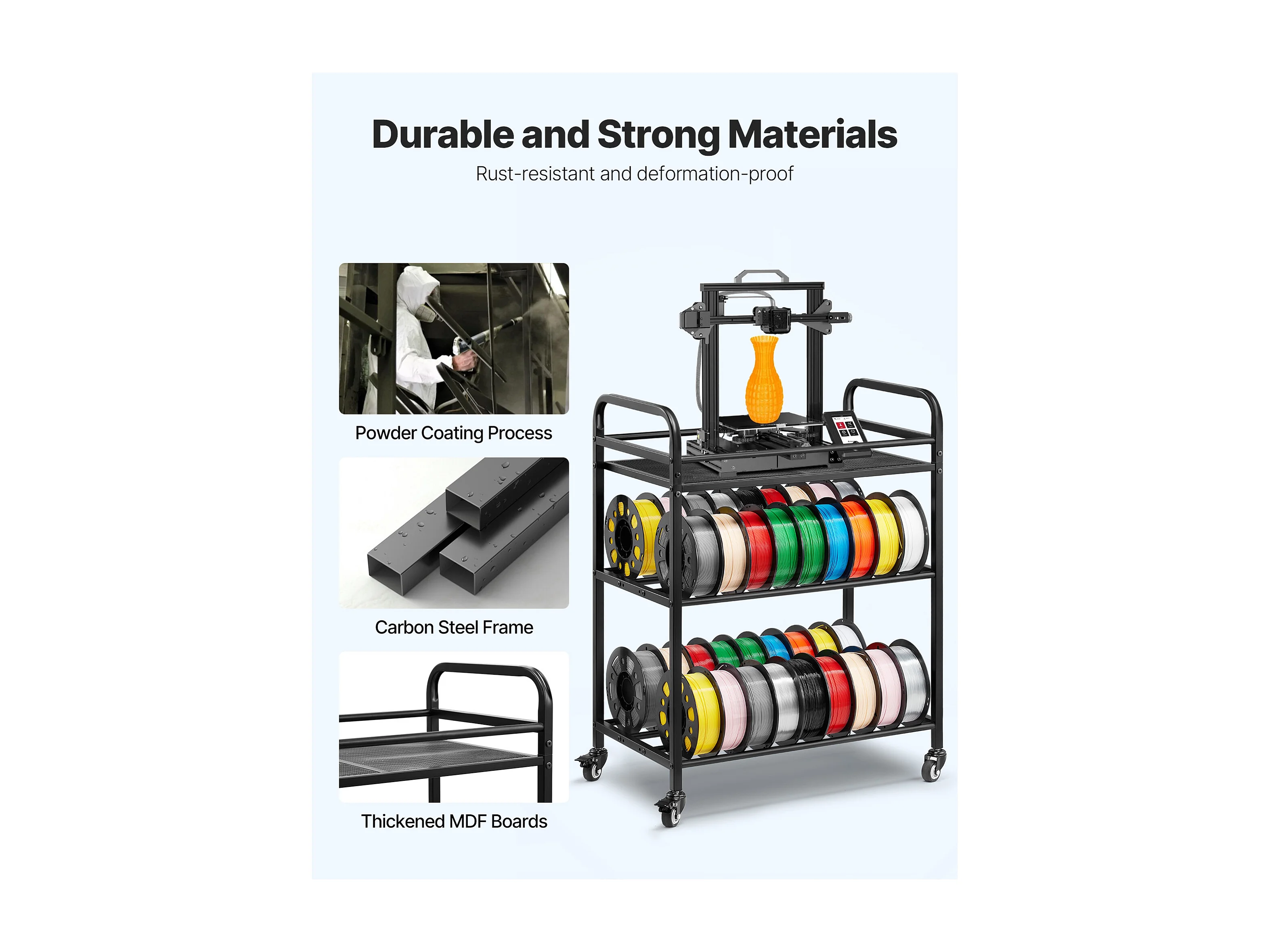 Mobiles Regal SucceBuy für Filamente mit 3 Ebenen, Regal zur Aufbewahrung von 3D-Drucker-Filamenten, für 3D-Druckstudio, Werkstatt, Schwarz