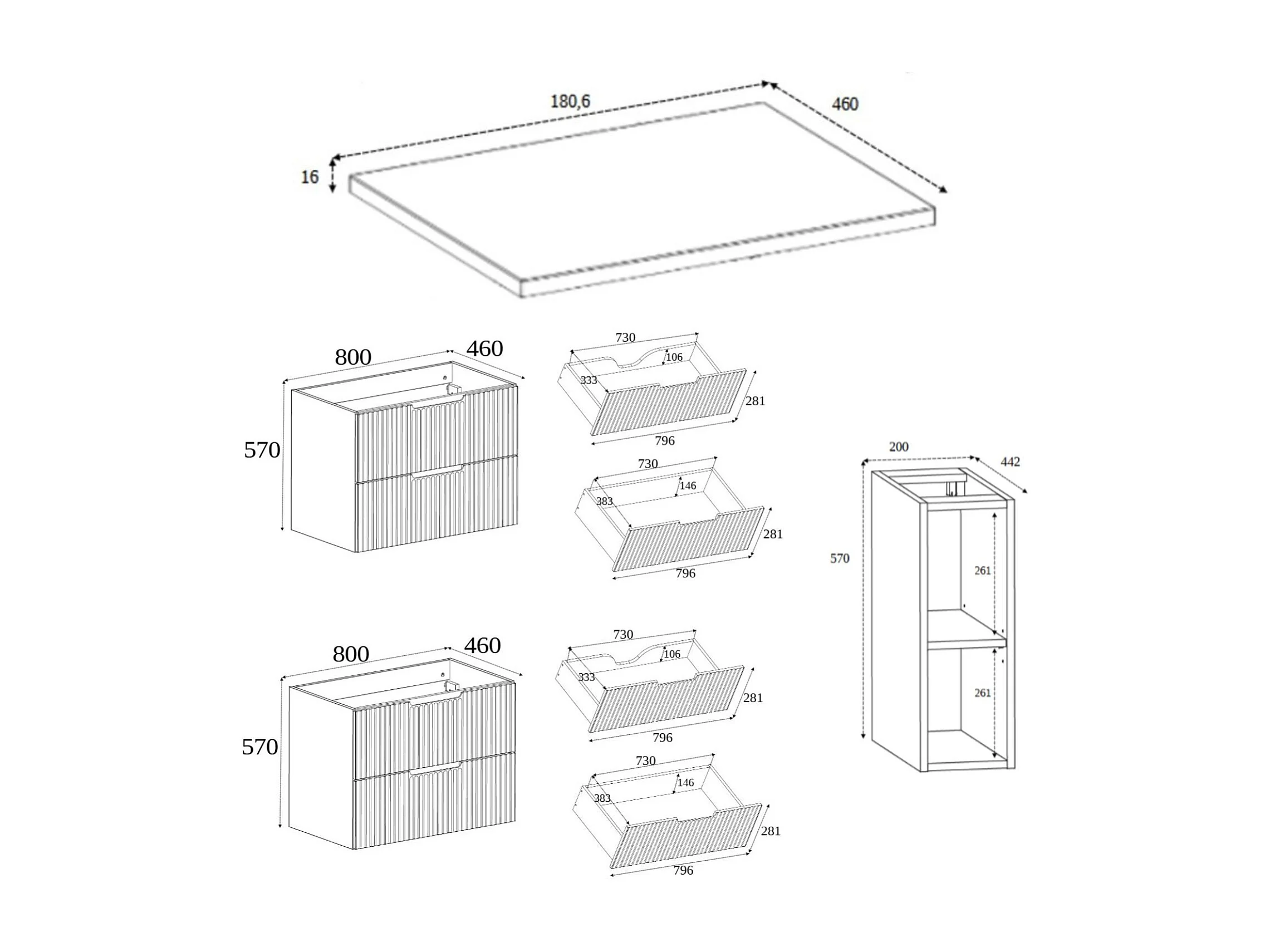 Mobiletto da bagno, bianco / rovere Craft 180 (2 x 80 + 20) x 58,6 x 46 cm