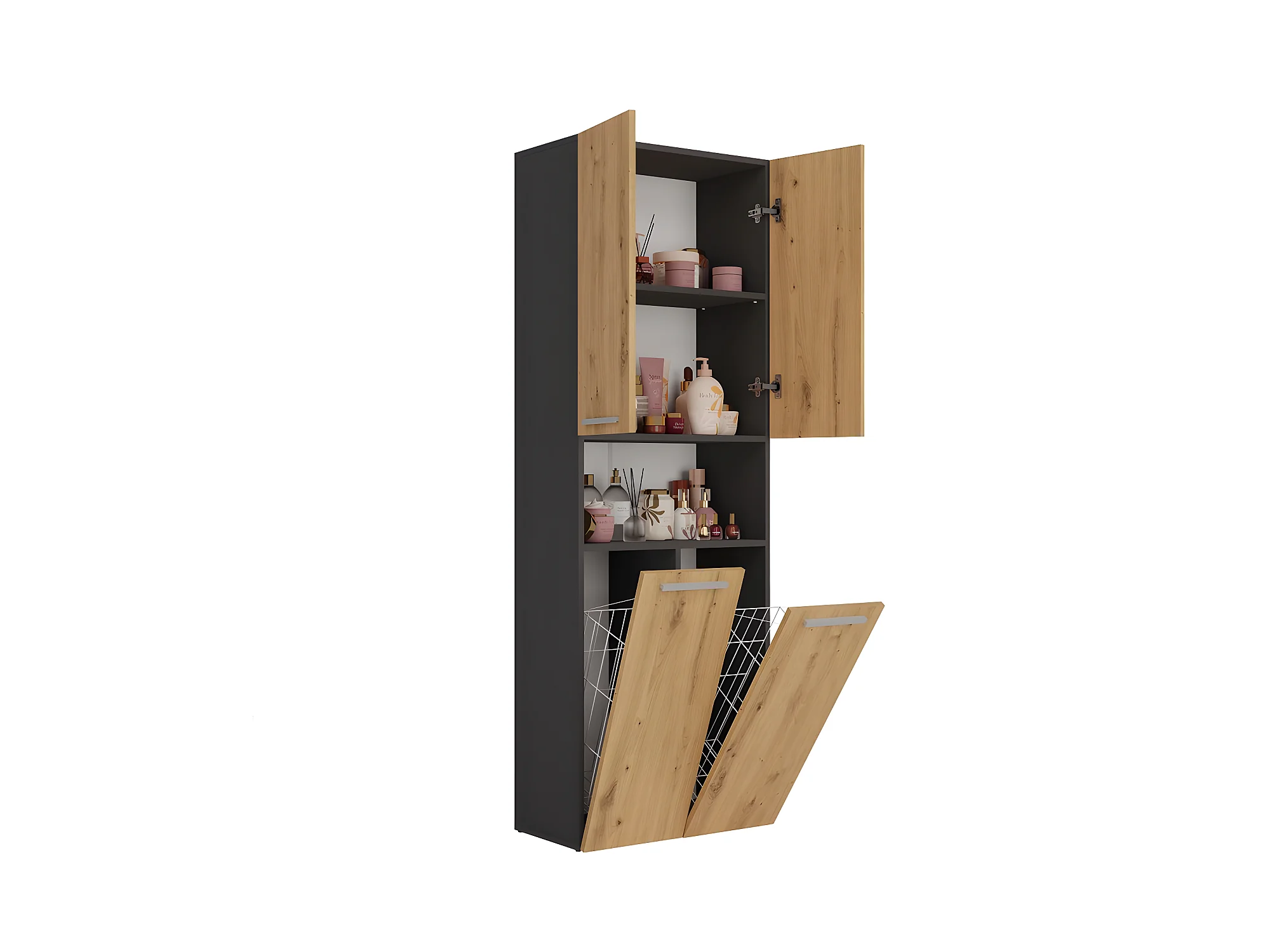 MOBY - Badezimmerschrank mit 2 Reihenkörben - Badaufbewahrung - 174x60x30 - Hochschrank