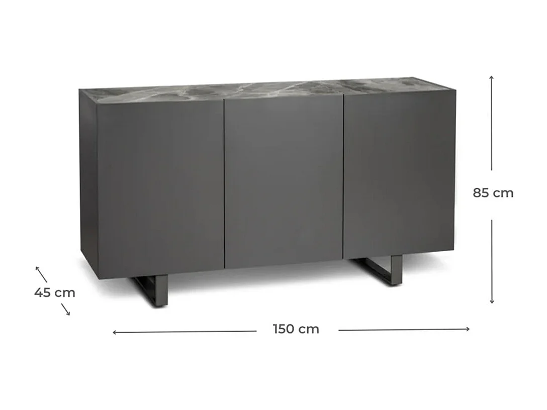 Moderne Anrichte mit 3 Türen und Keramikplatte in Marmoroptik Thyme