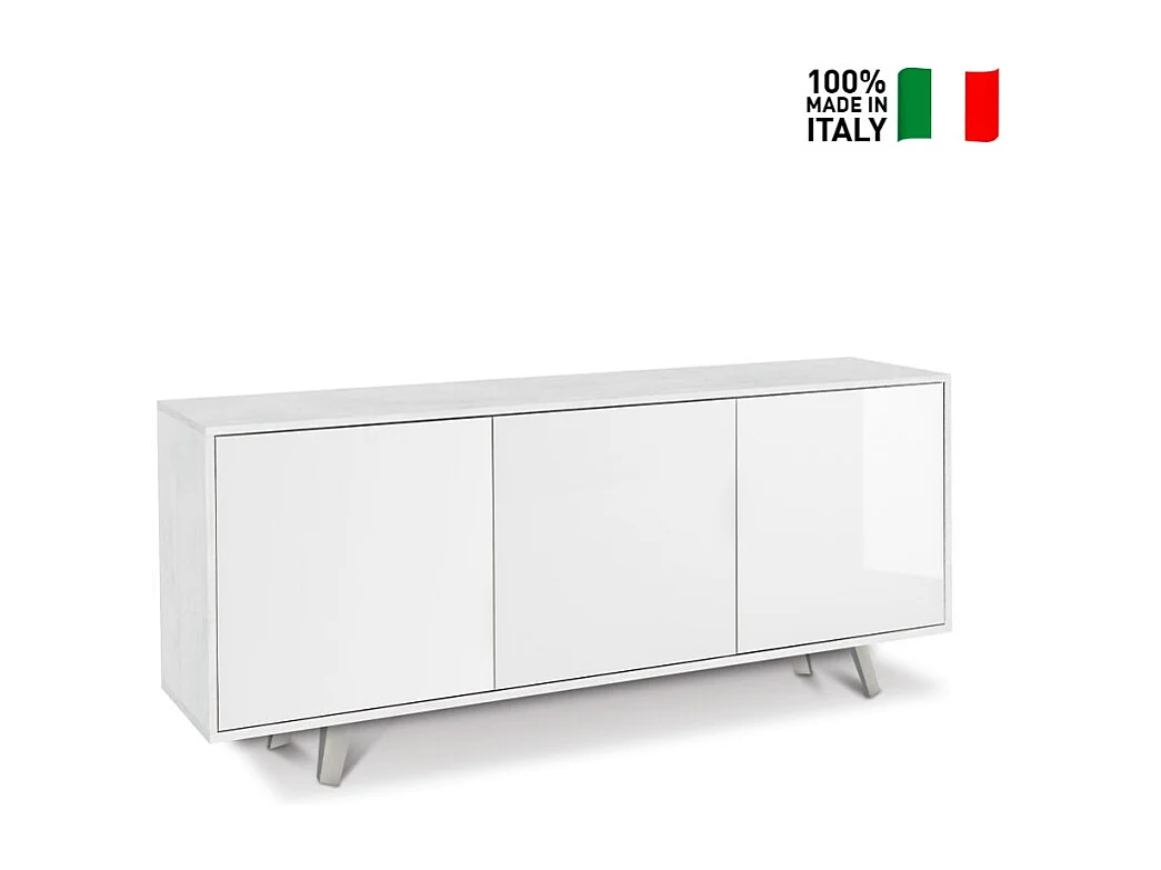 Moderne Anrichte Perth, 3-türig, für Wohnzimmer und Küche - Weiß - Weiß glänzend