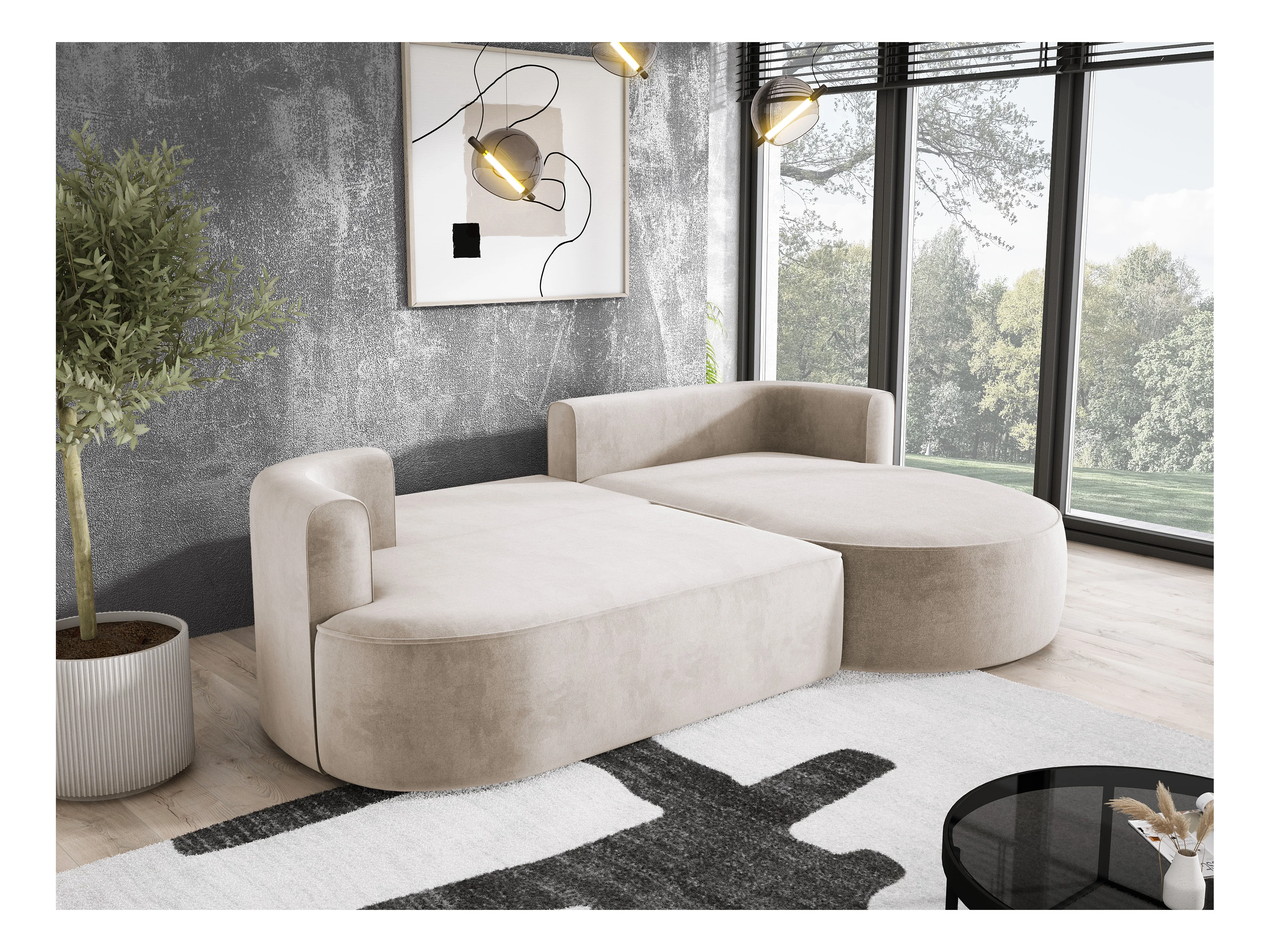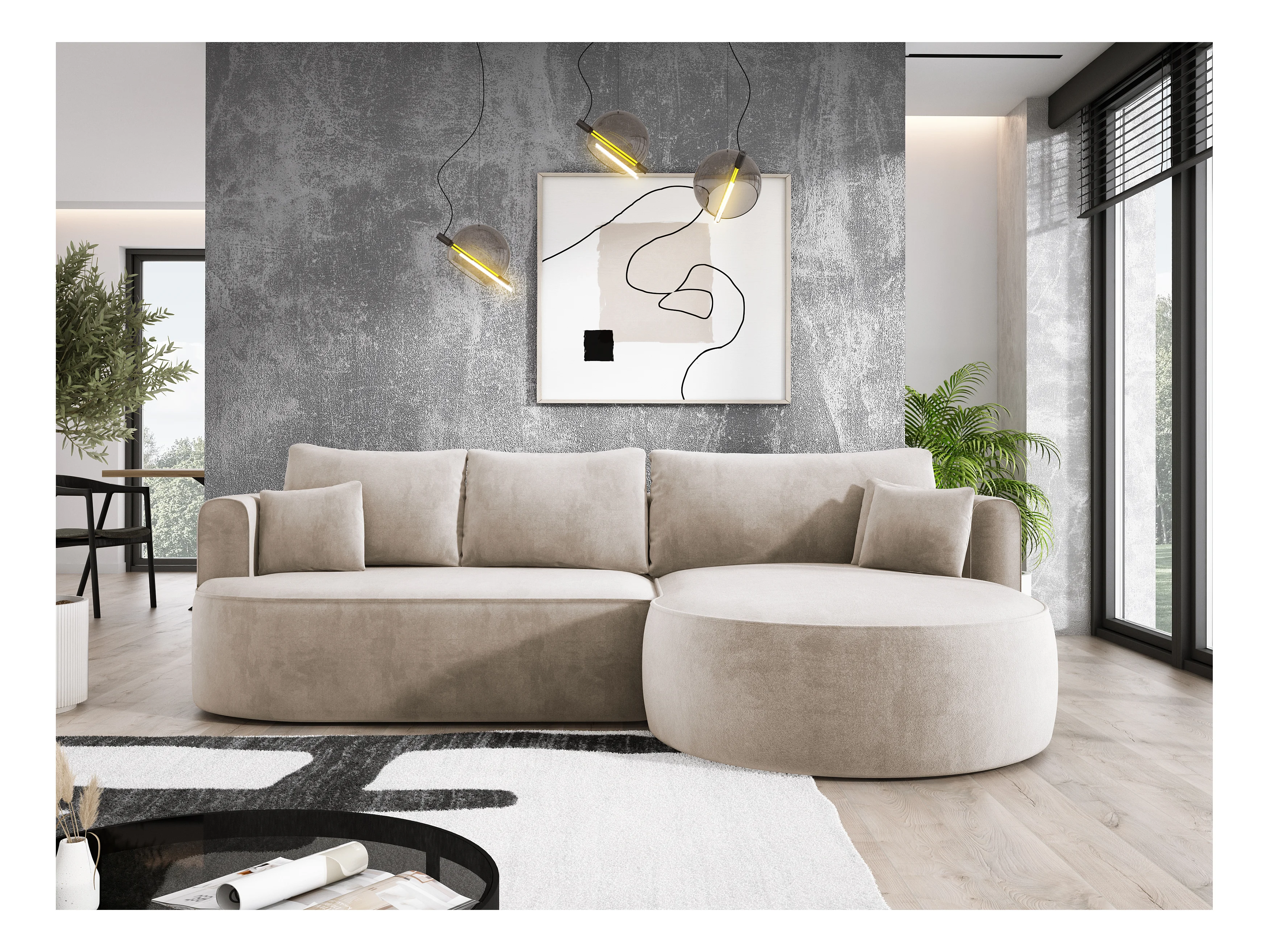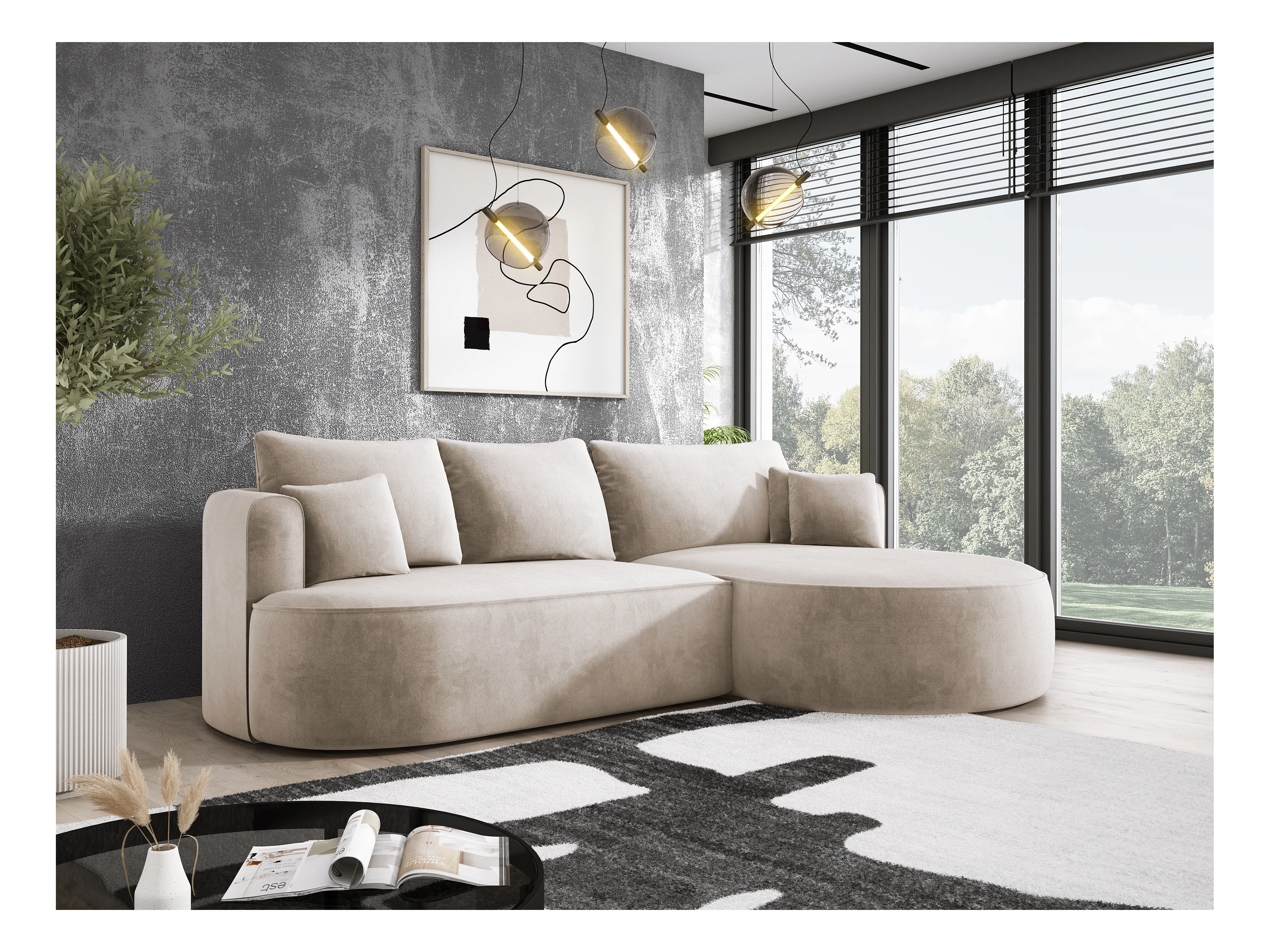 Moderne Ausziehbare Ecksofa FIORE Mit Schlaf-Funktion, Couch mit automatischer Auffaltung, Sofa, Schlafcouch RECHTS 284x183x82cm Beige