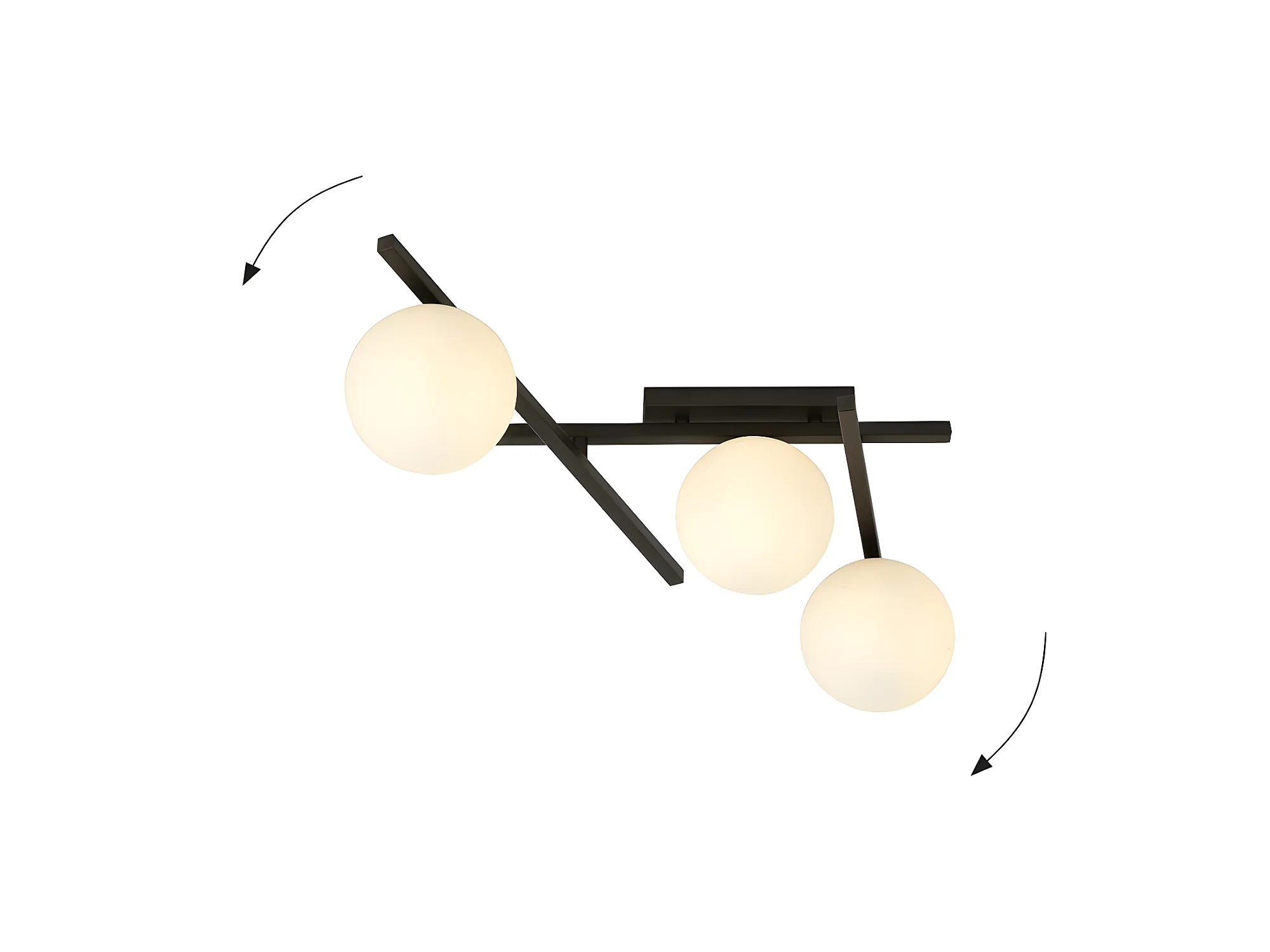 Moderne Deckenleuchte Tramas mit unregelmäßigen Metallstäben und 3 Glaskugeln 3xE14
