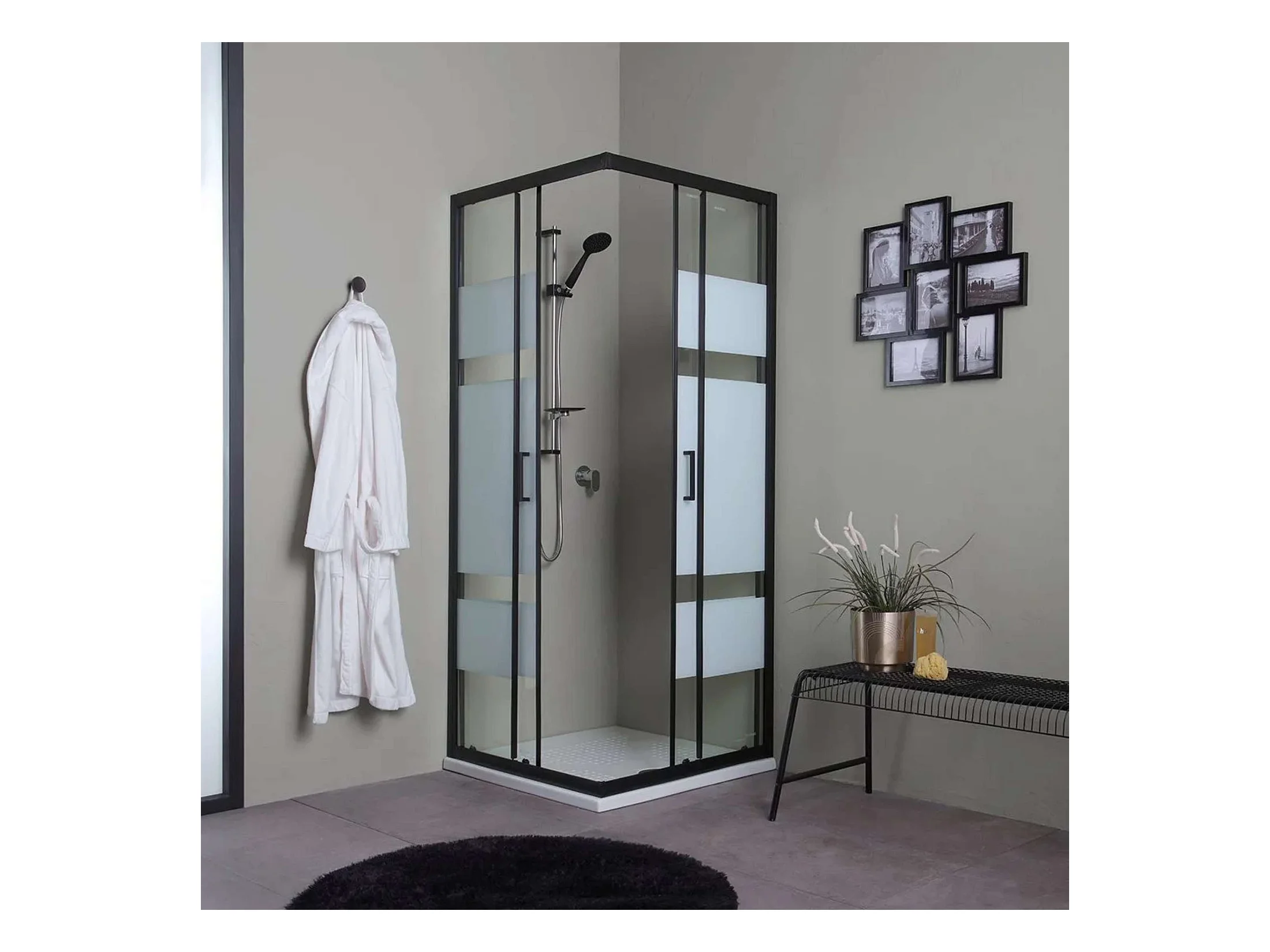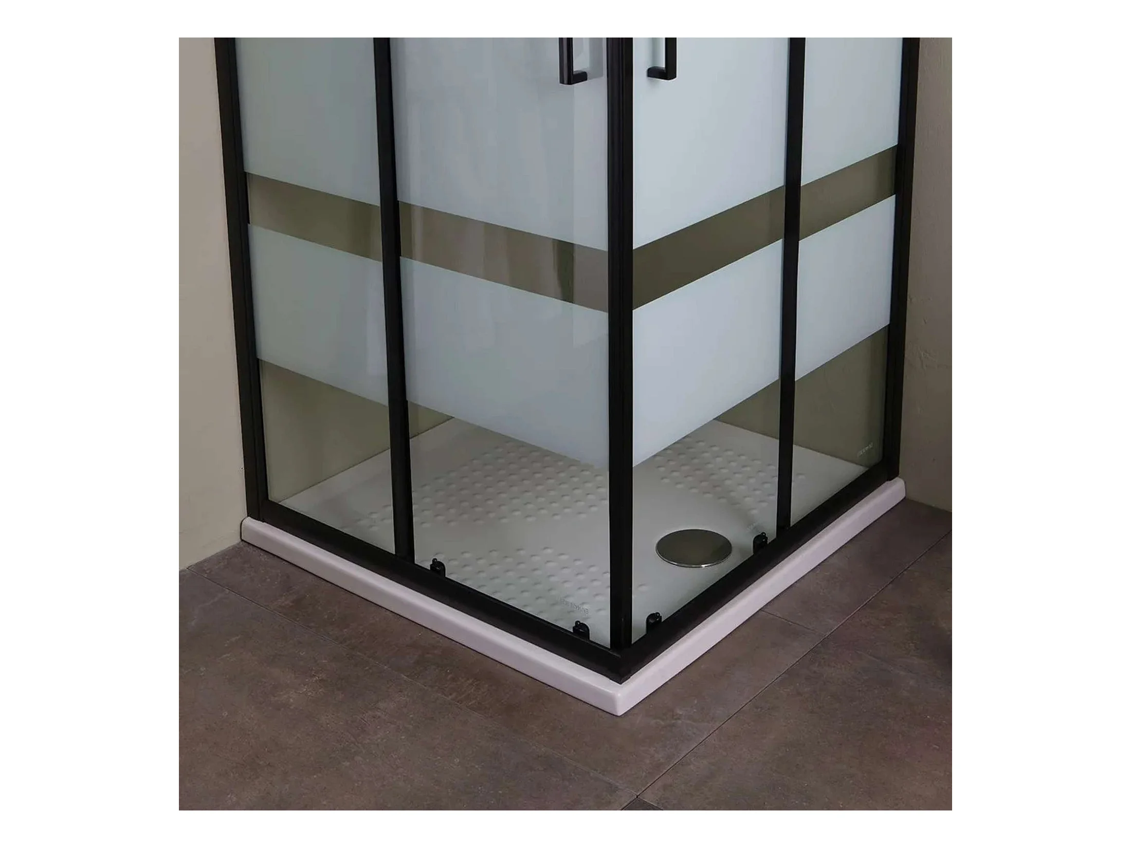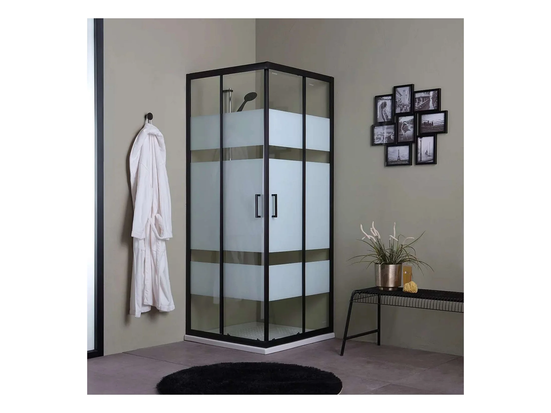 Moderne Duschkabine für Badezimmer „Cielo“ mit Schiebetür, Siebdruck und mattschwarzem Profil, 80 x 100 cm, 190 h