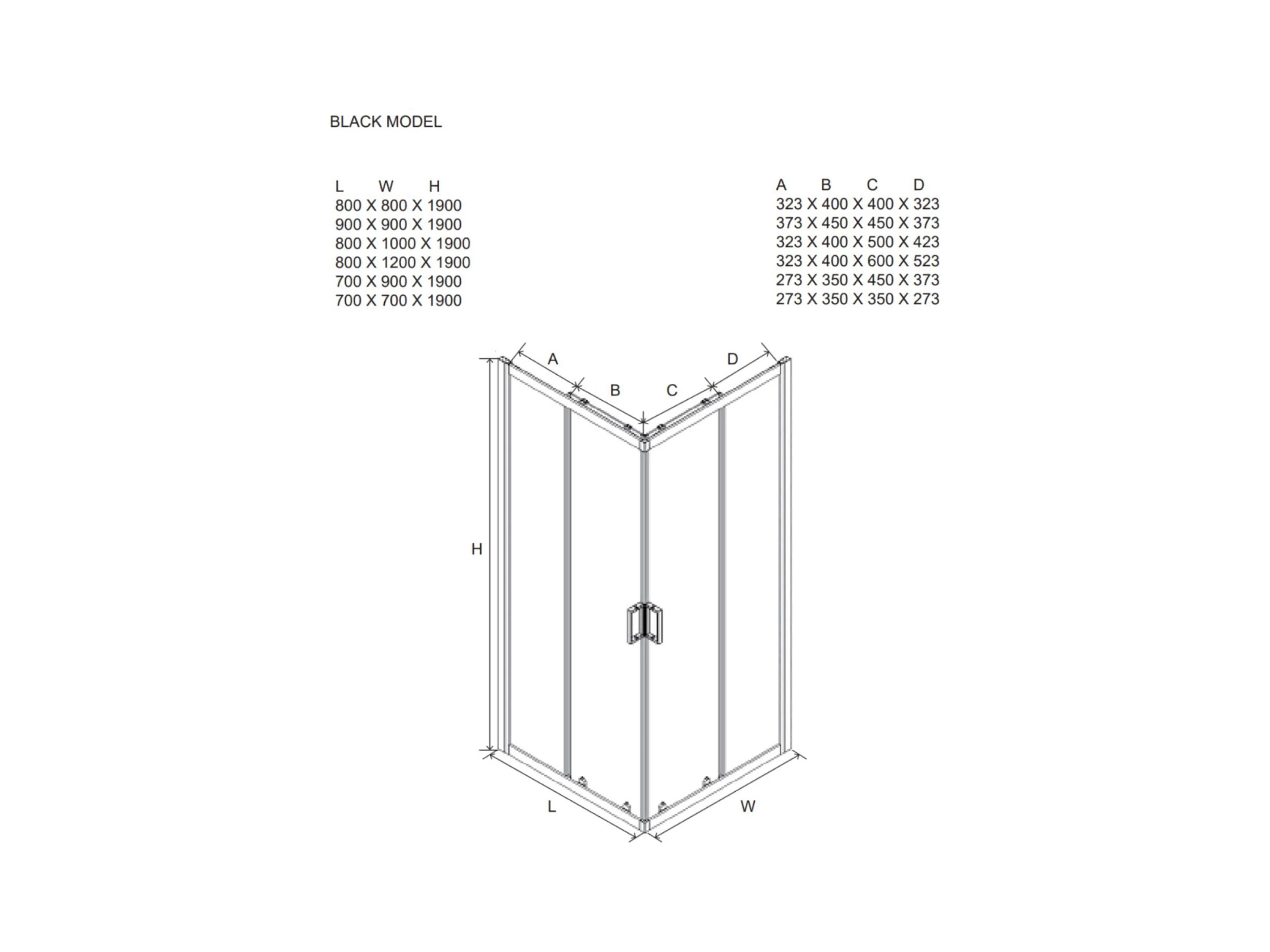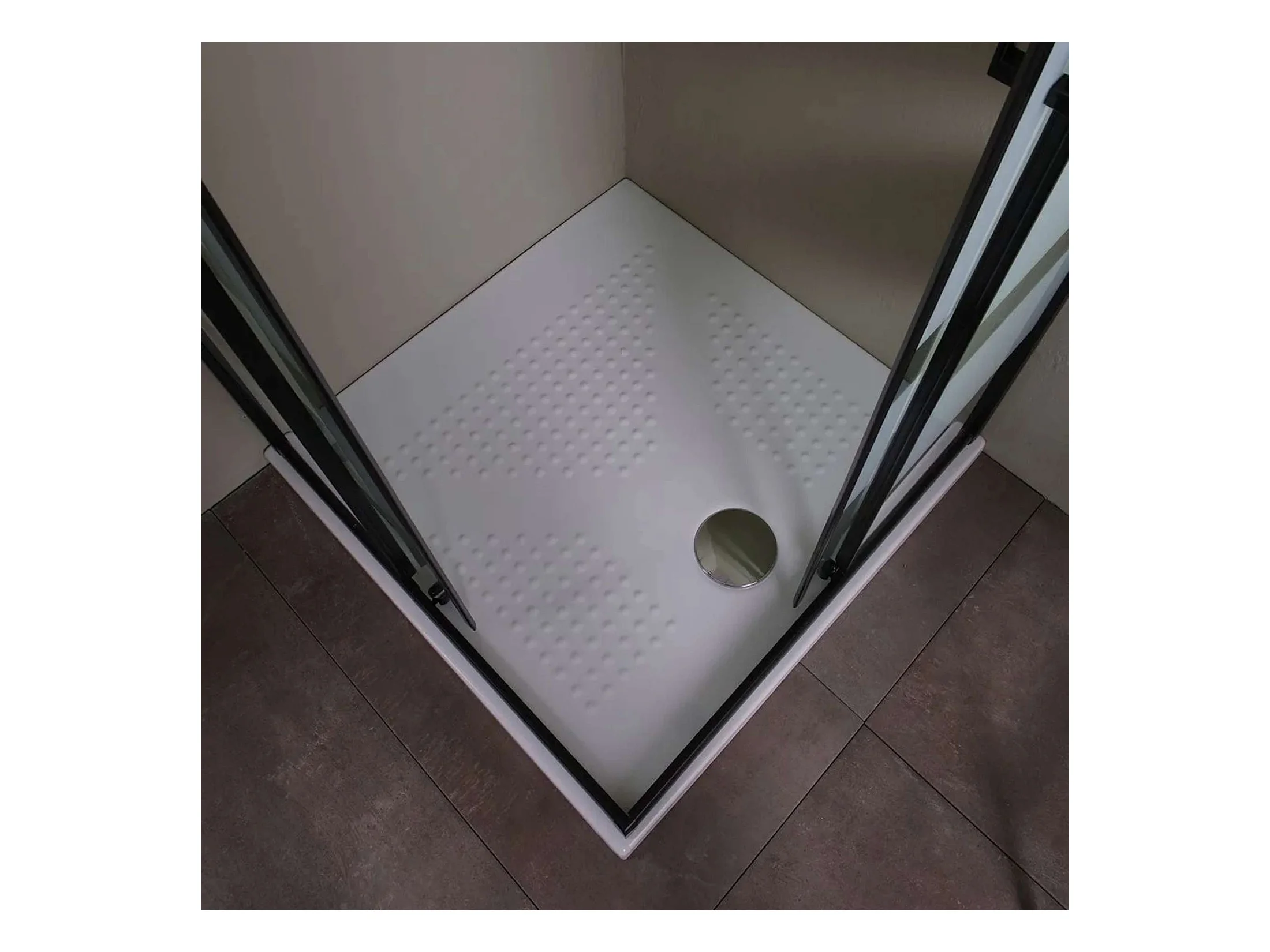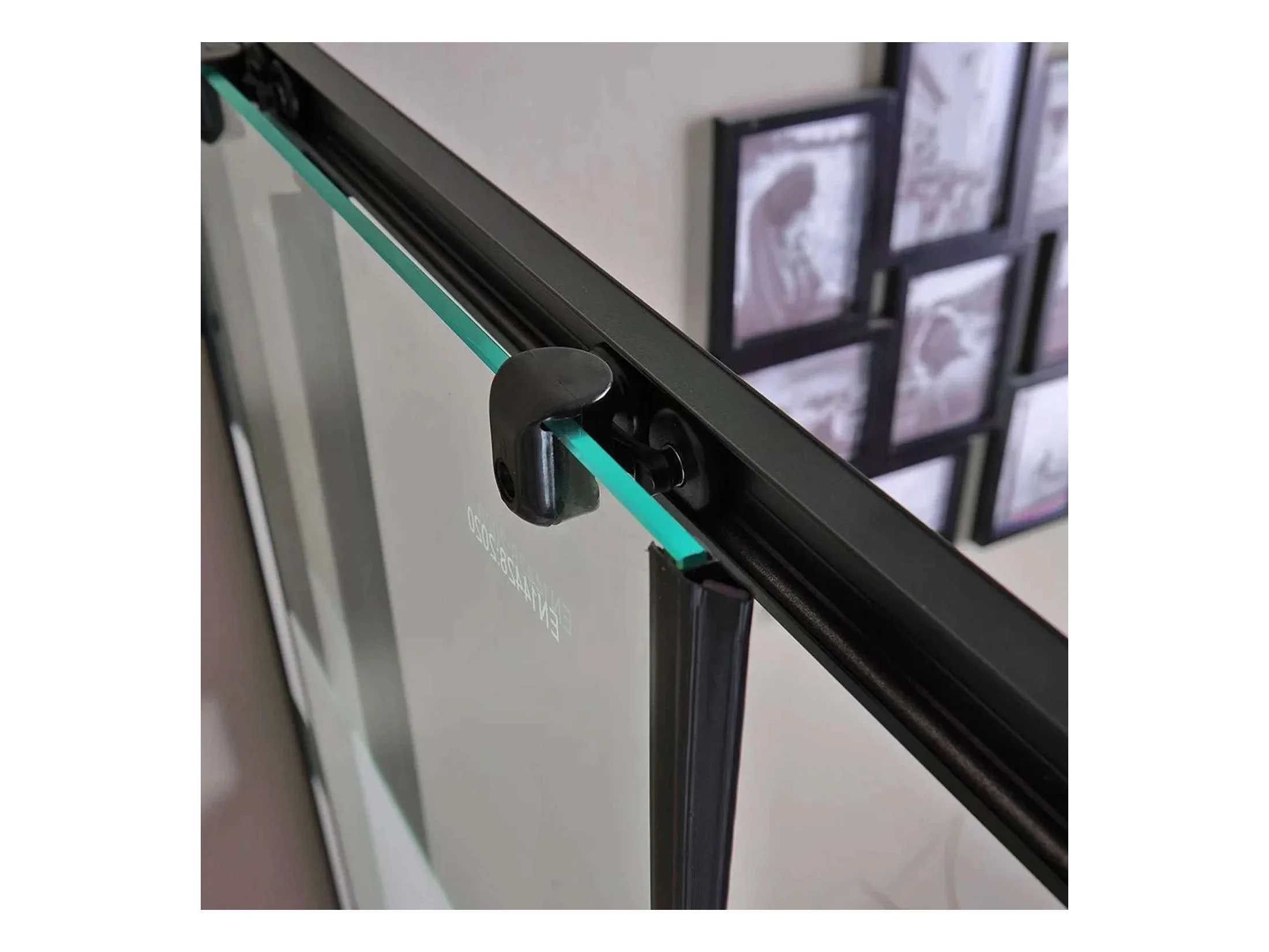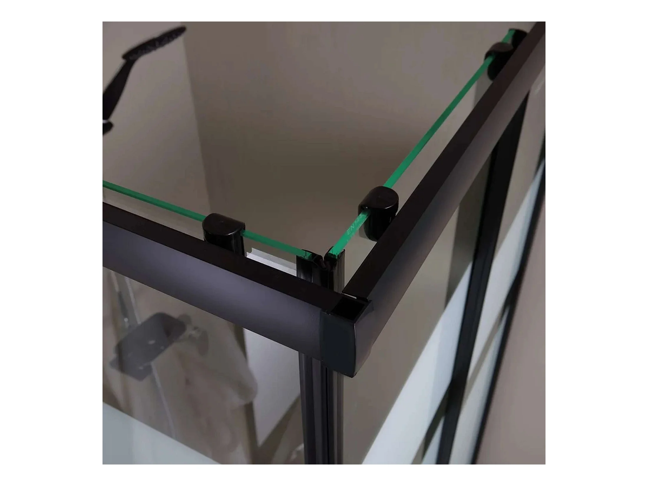 Moderne Duschkabine für Badezimmer „Cielo“ mit Schiebetür, Siebdruck und mattschwarzem Profil, 80 x 100 cm, 190 h