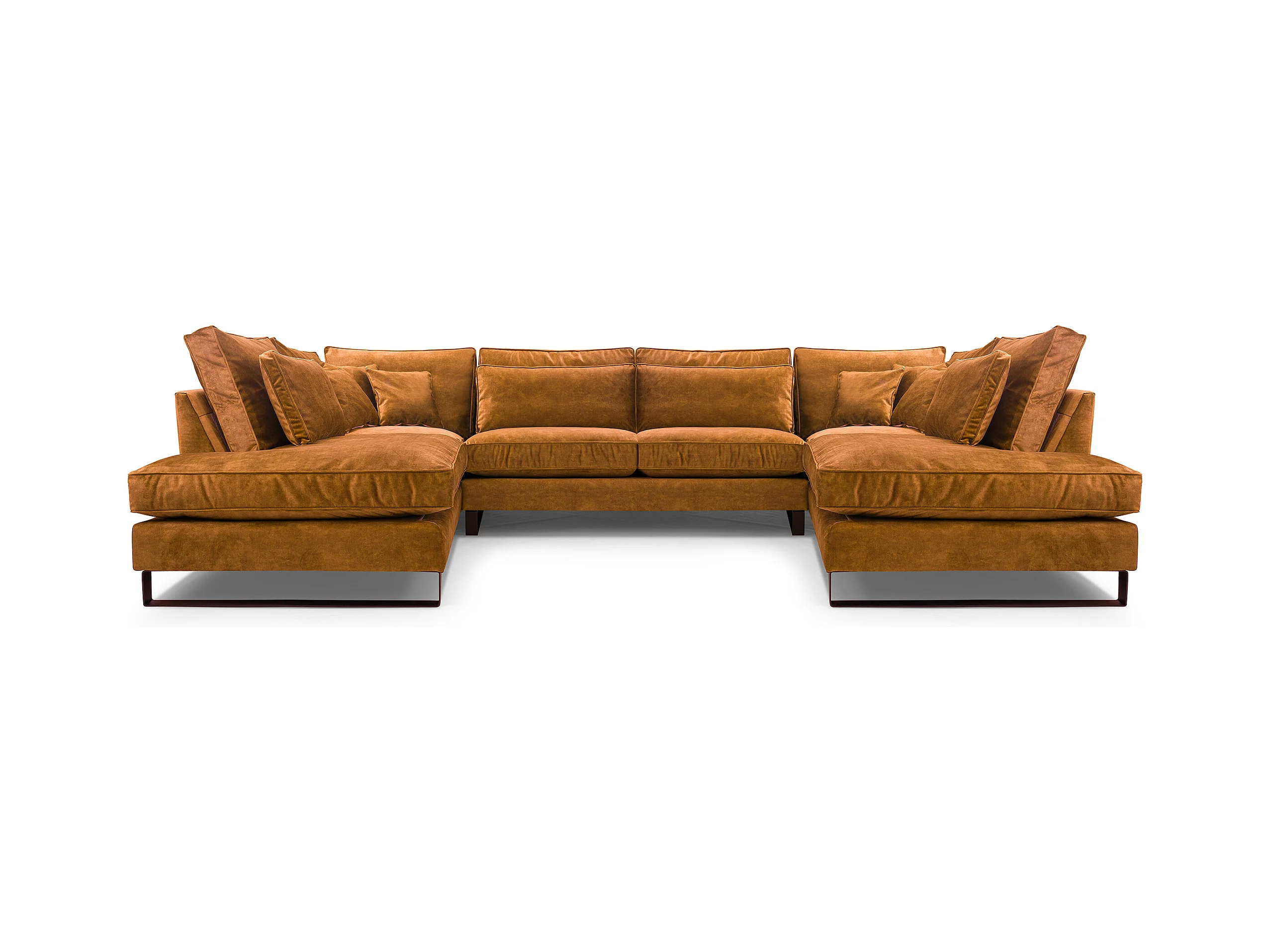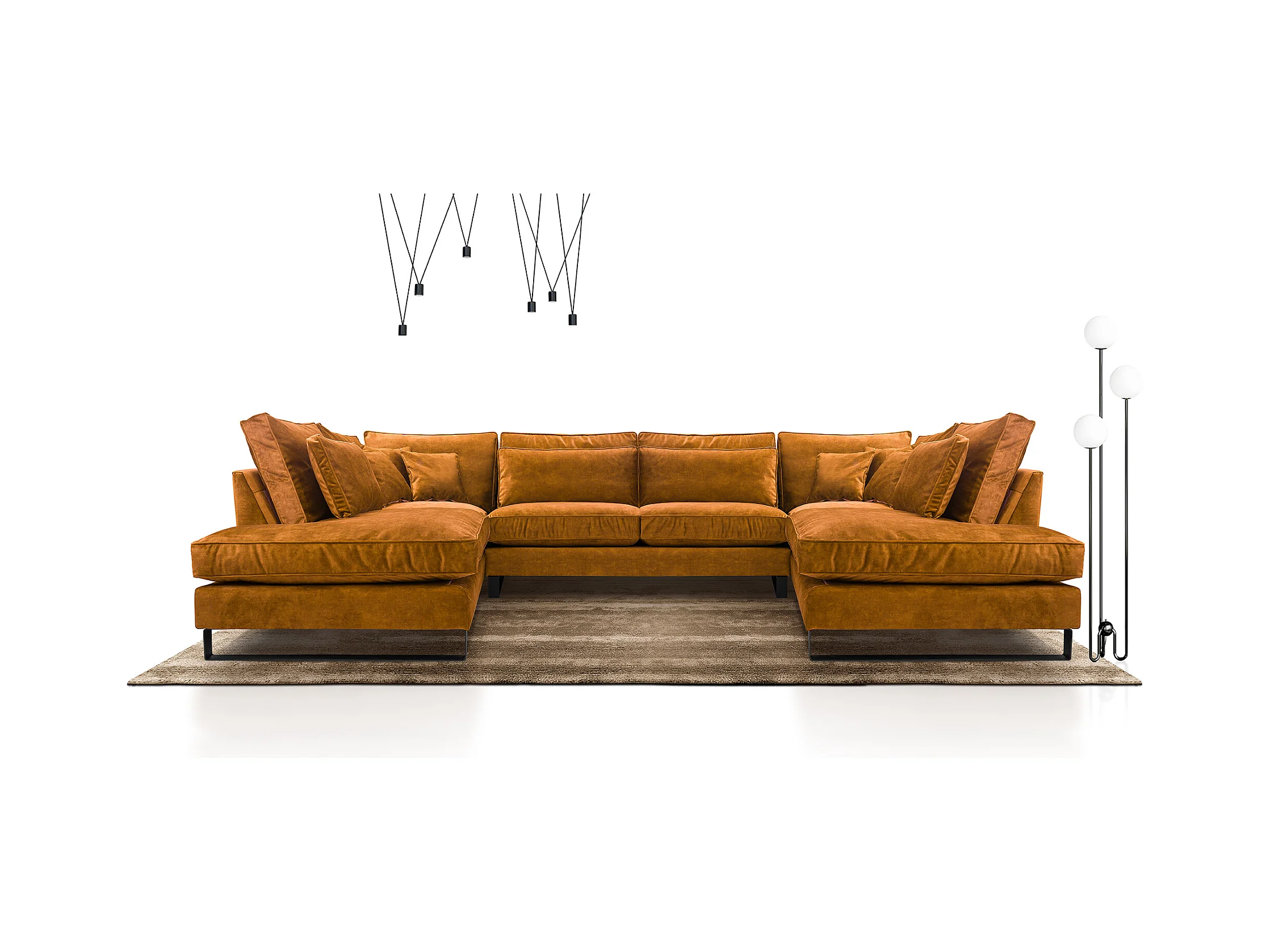Moderne Eckcouch CORBLACK, freistehend, mit Wellenfedern & Rückenkissen, Metallbeine, Wohnlandschaft, 103x407x224 cm, Gold