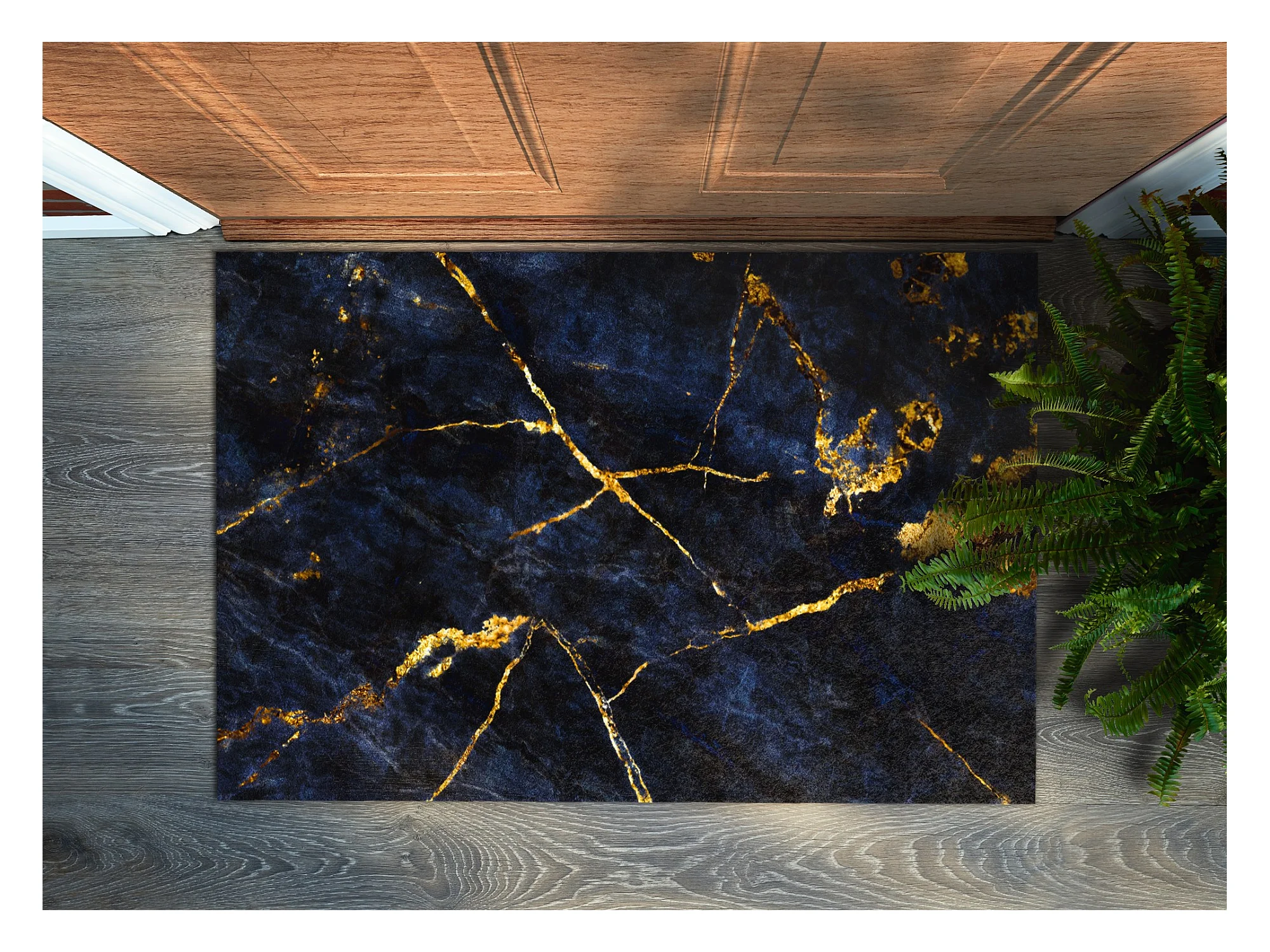 Moderne Fußmatte für den Innenbereich – bequem und elegant – 150 x 100 cm – marineblauer Marmor