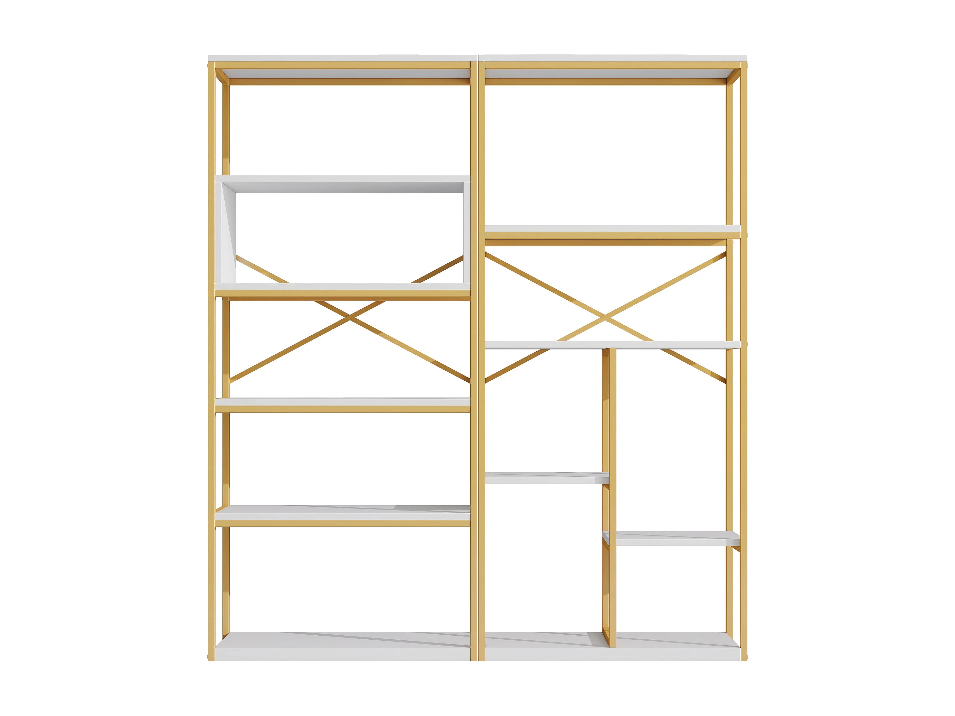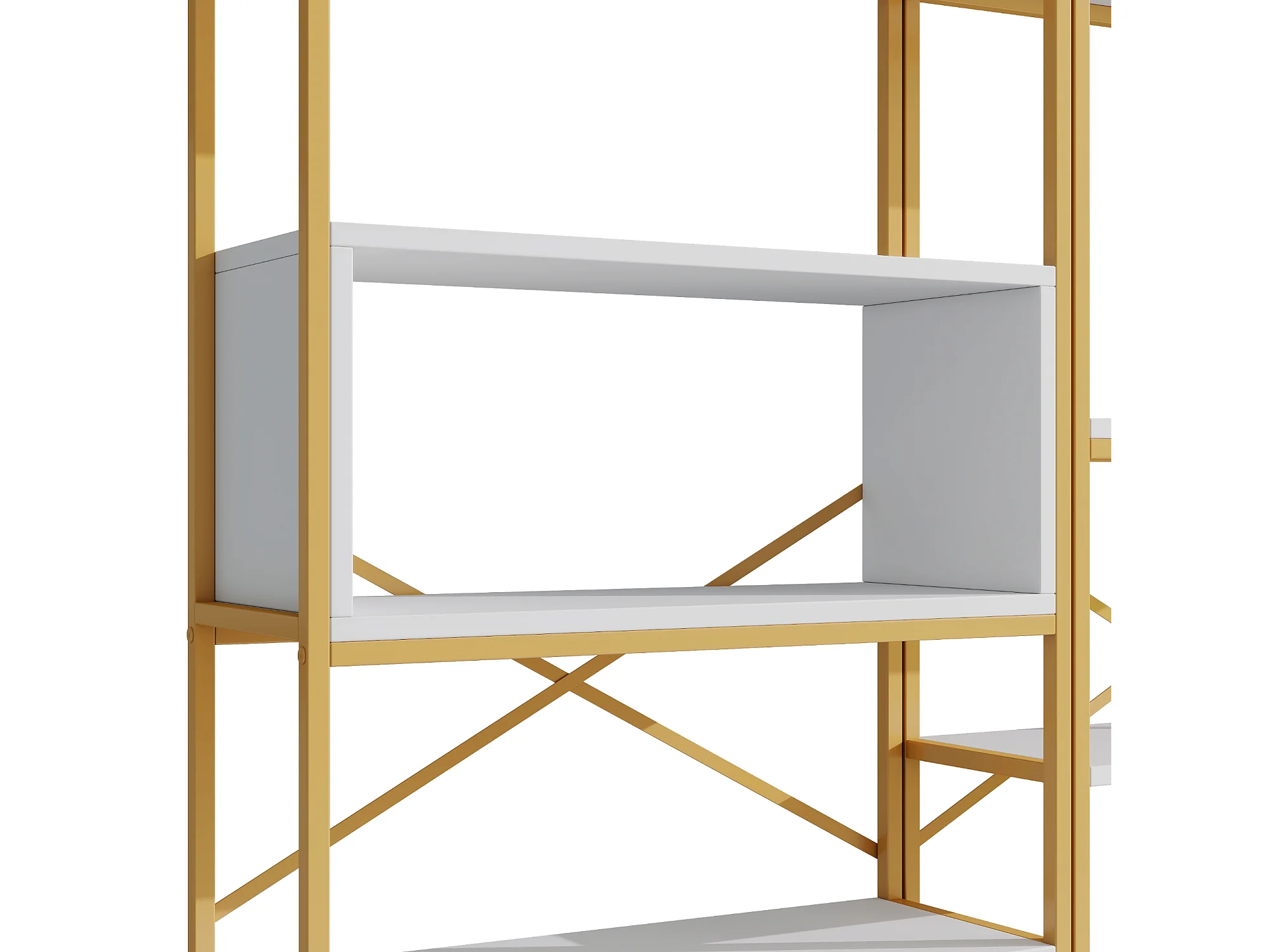 Moderne Regal 160x29,5x180 cm - Mehrstufige Regalböden - Konstruktion aus Stahlrohren und MDF - Rechteckige Form - Gold und Weiß