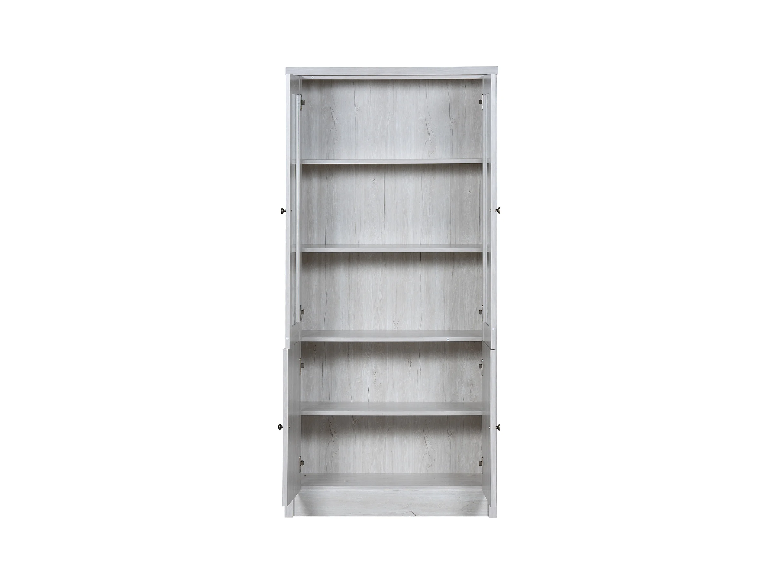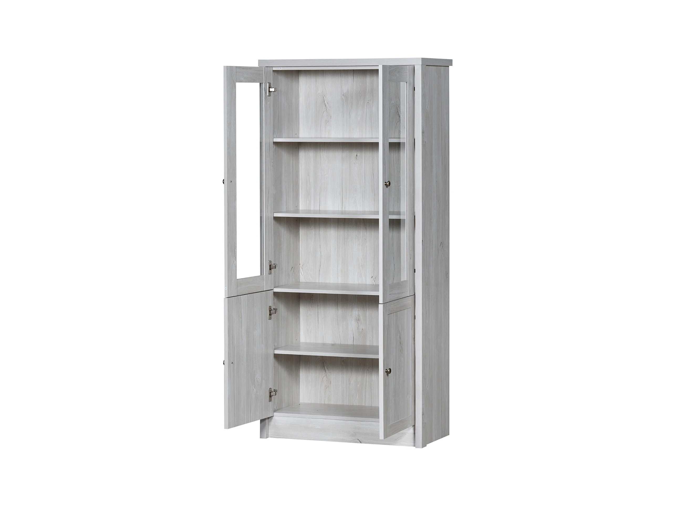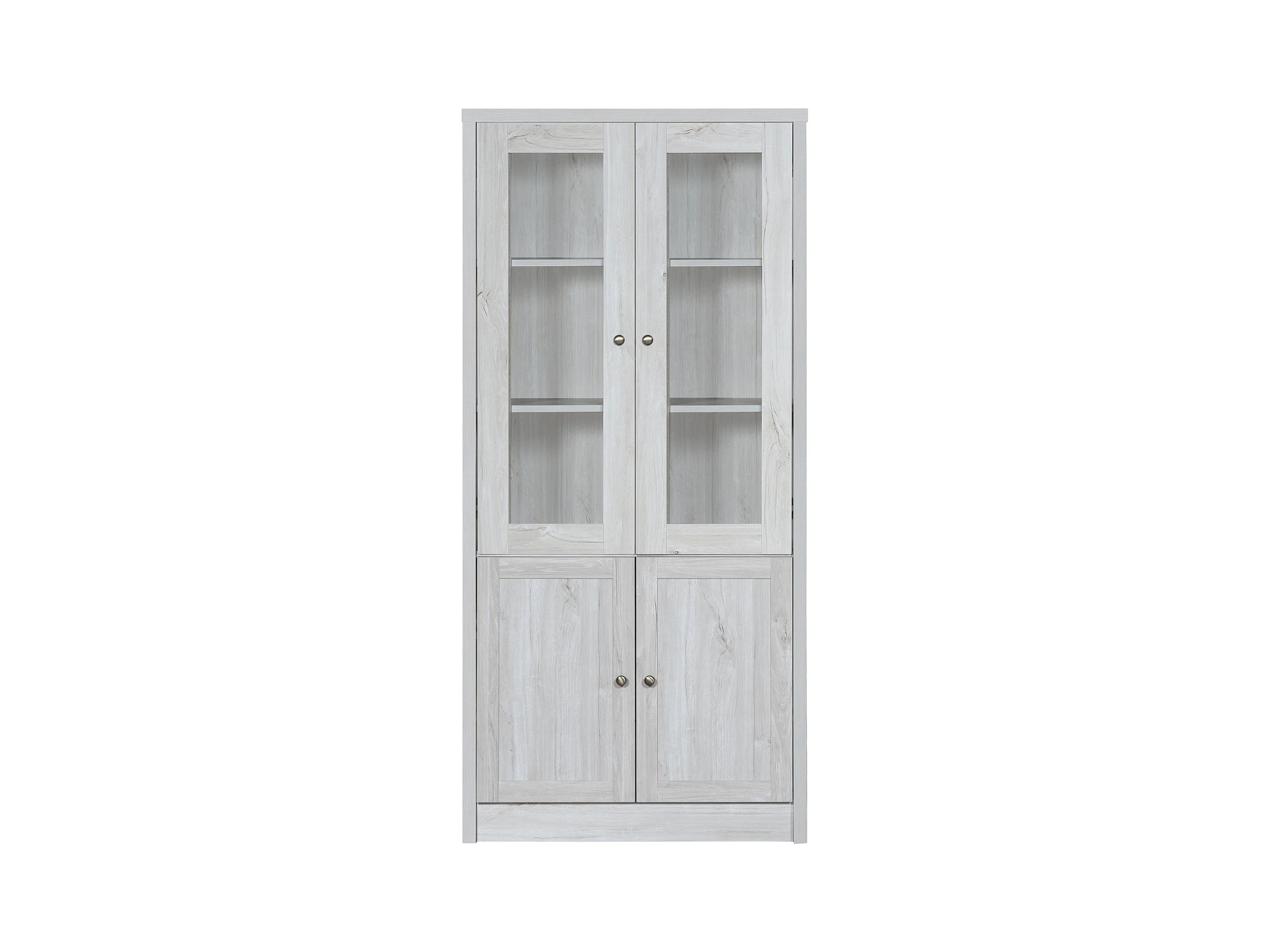 Moderne Vitrine 80x34x171 cm - Außenseite aus Holz, Glastüren, 2 Holztüren und Messinggriffe.