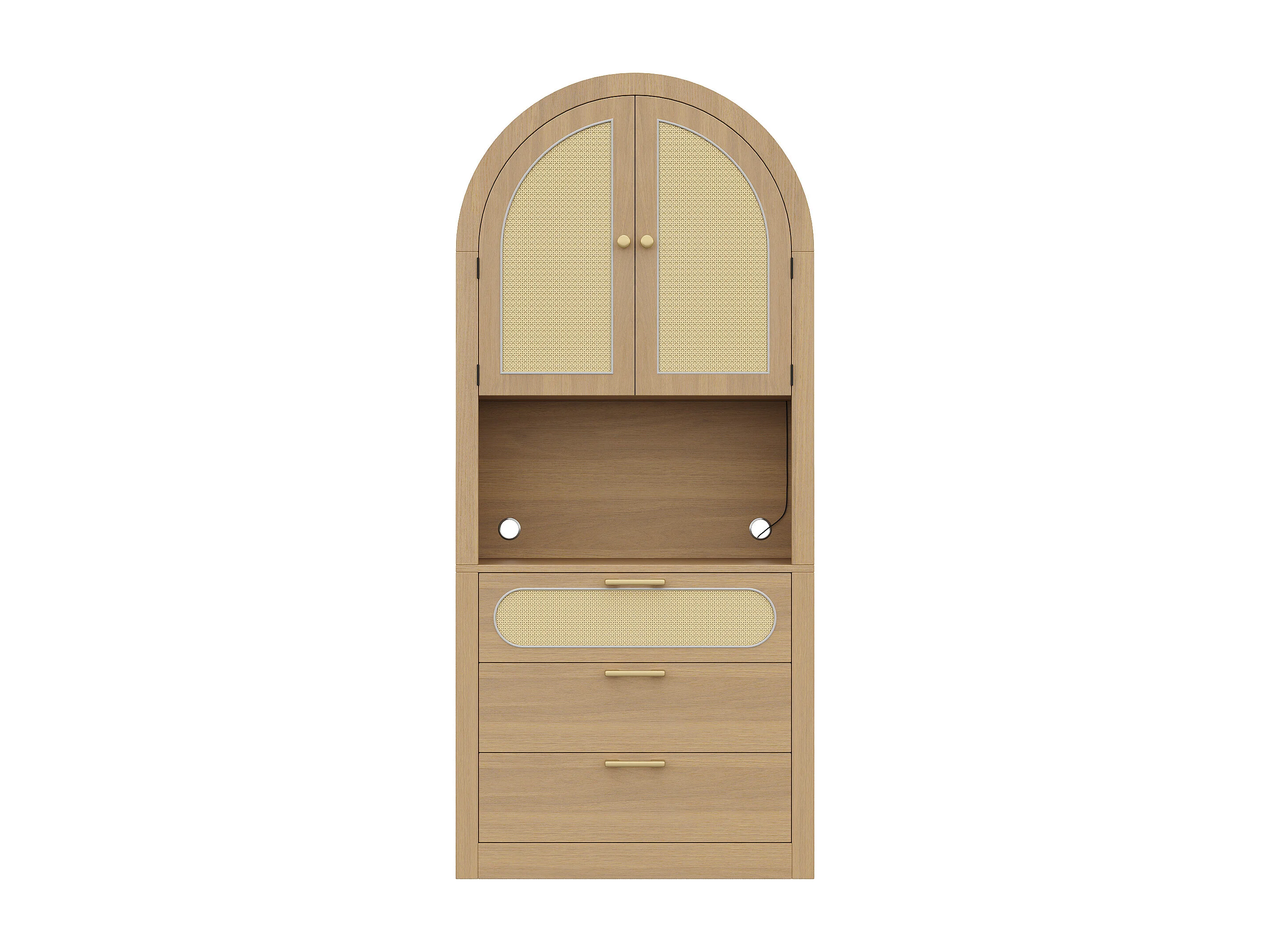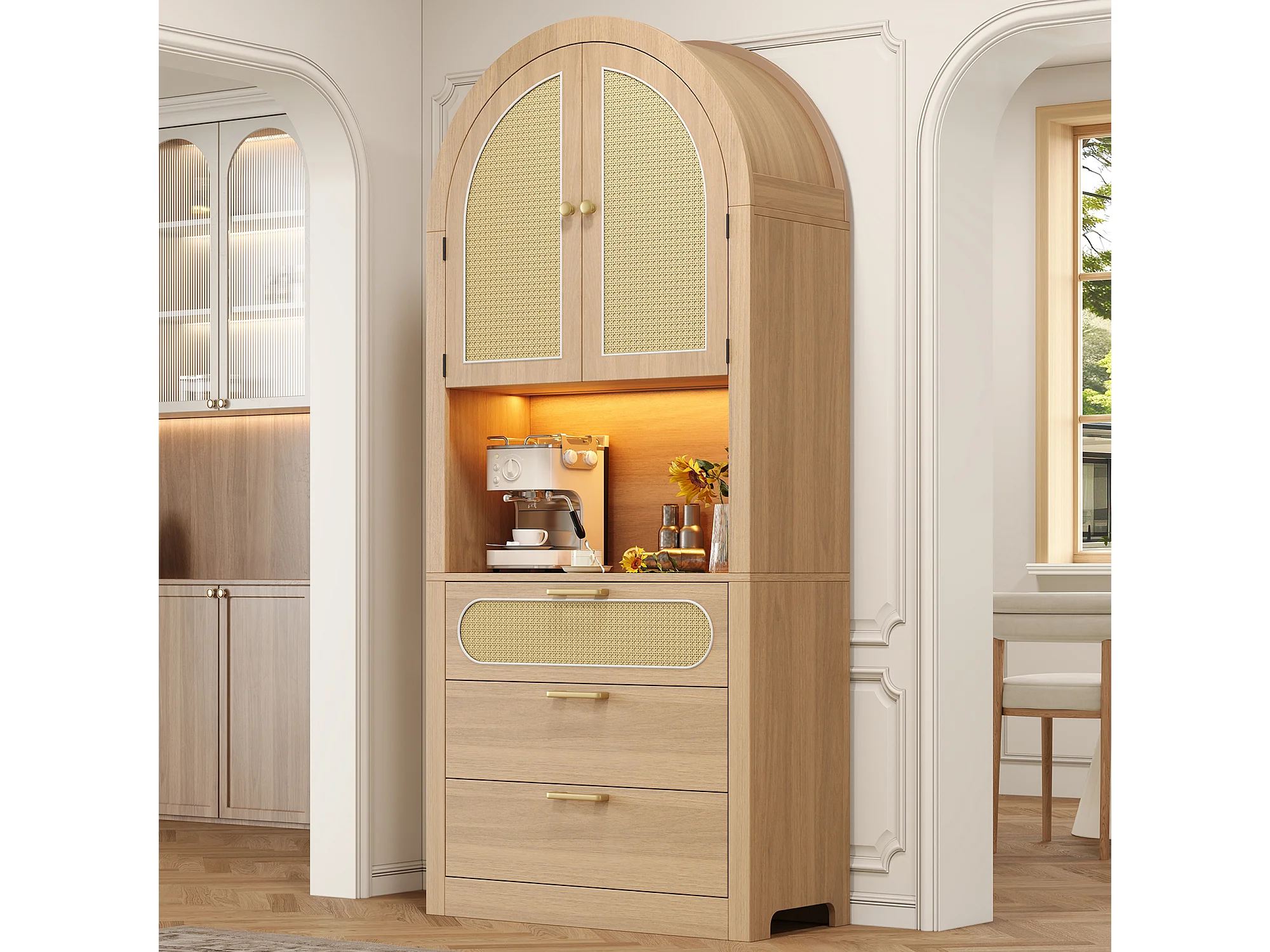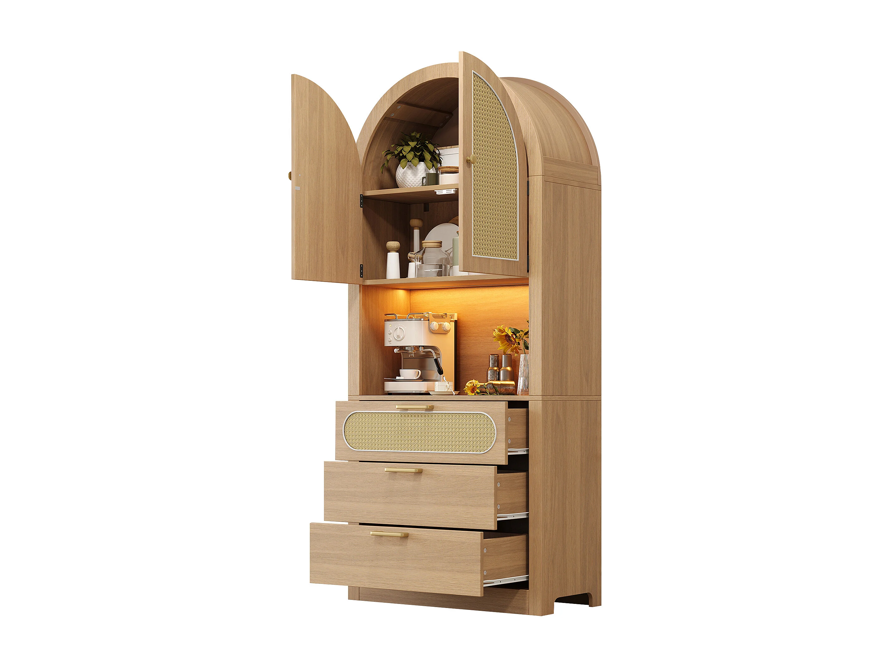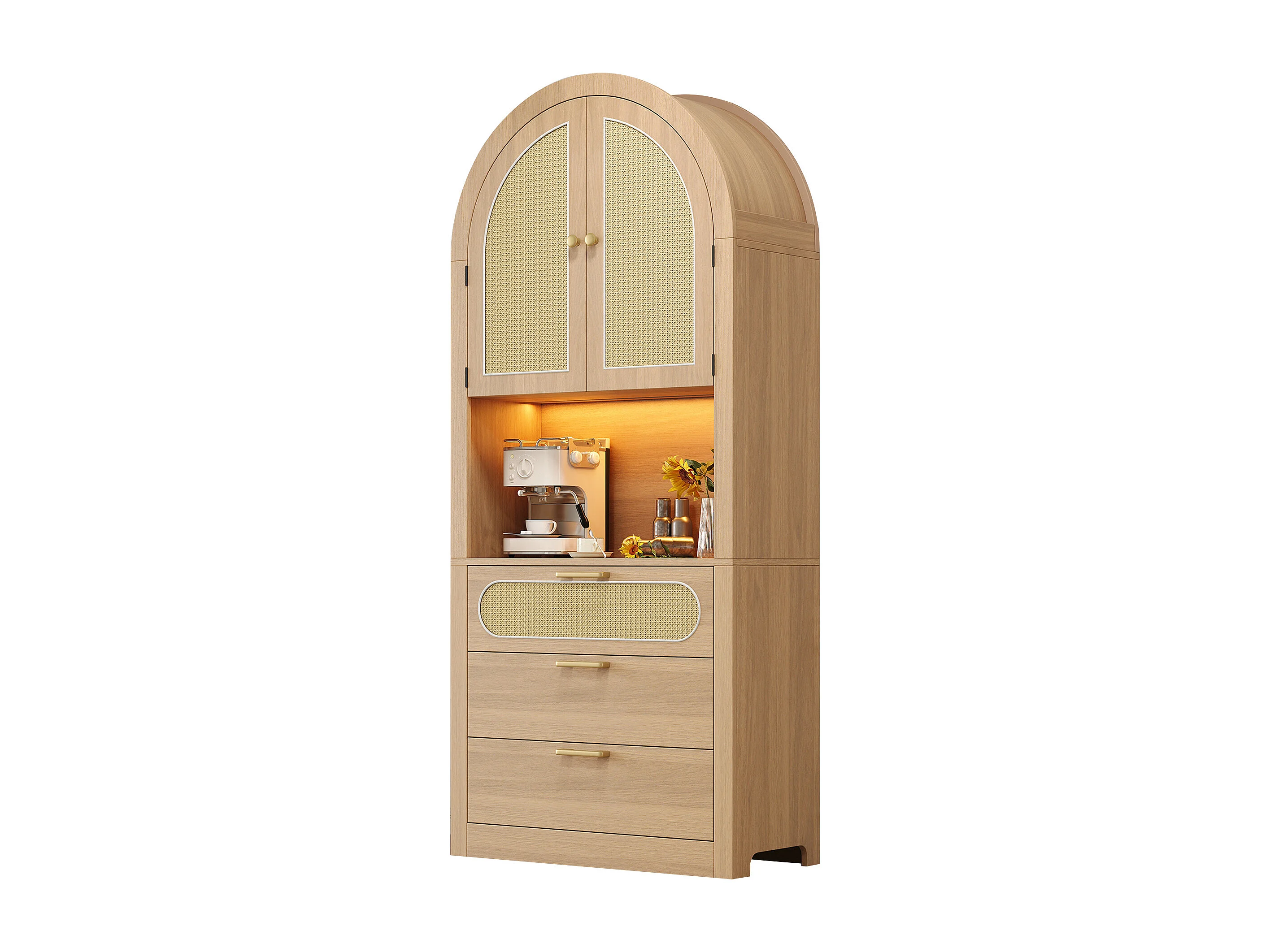 Moderne Vitrinen/Staufächer 80x35x180 cm - mit einstellbarer LED-Beleuchtung - mit 3 Schubladen und 2 Türen - Rattantüren - Helleiche