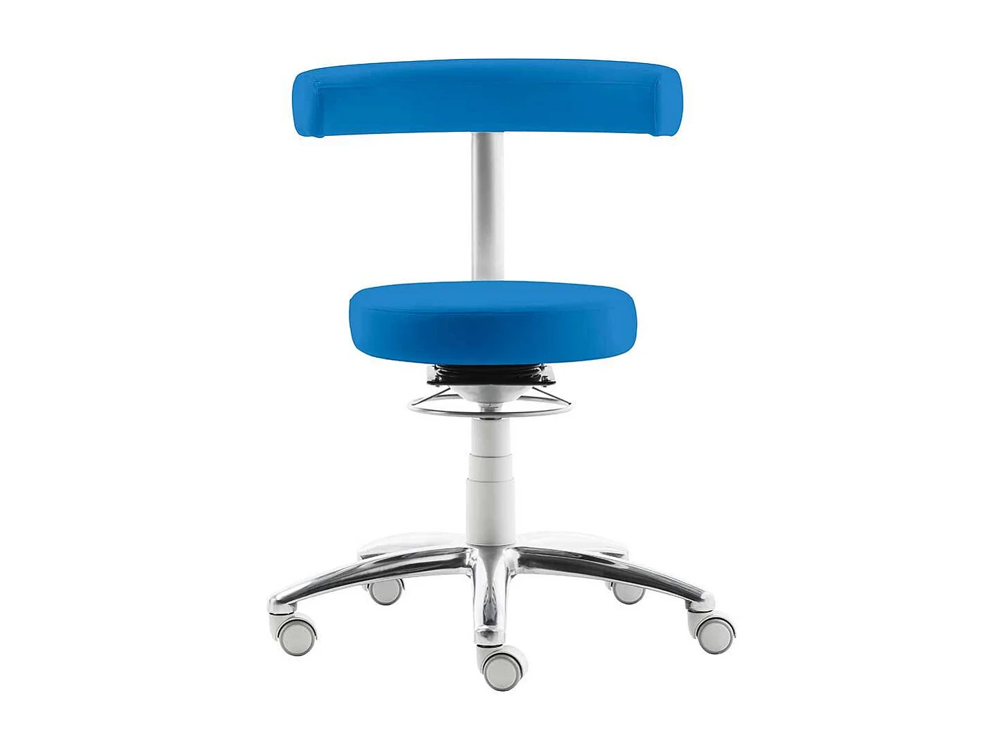 Moderner Arbeitshocker mit gepolsterter Rückenlehne drehbar
