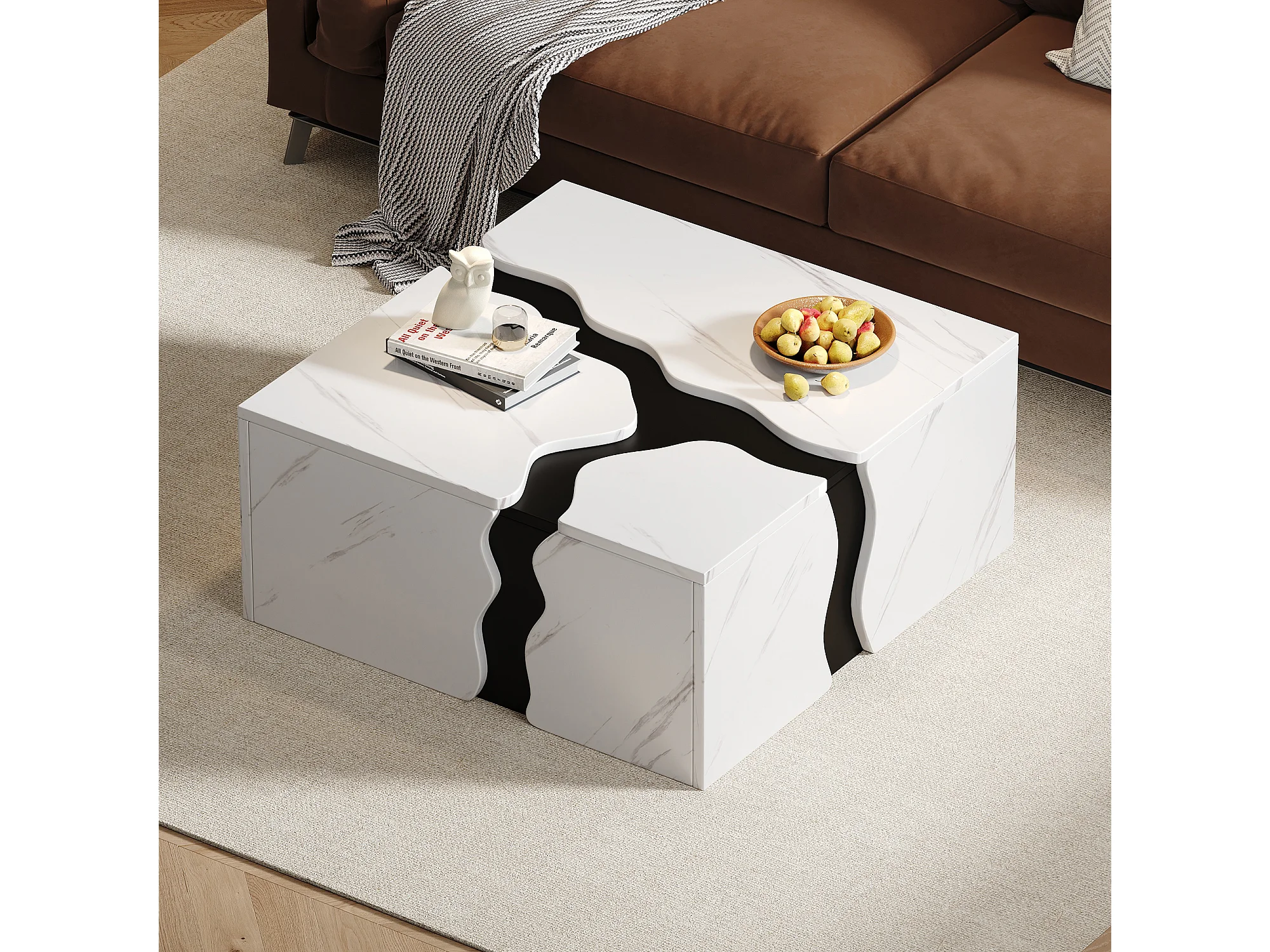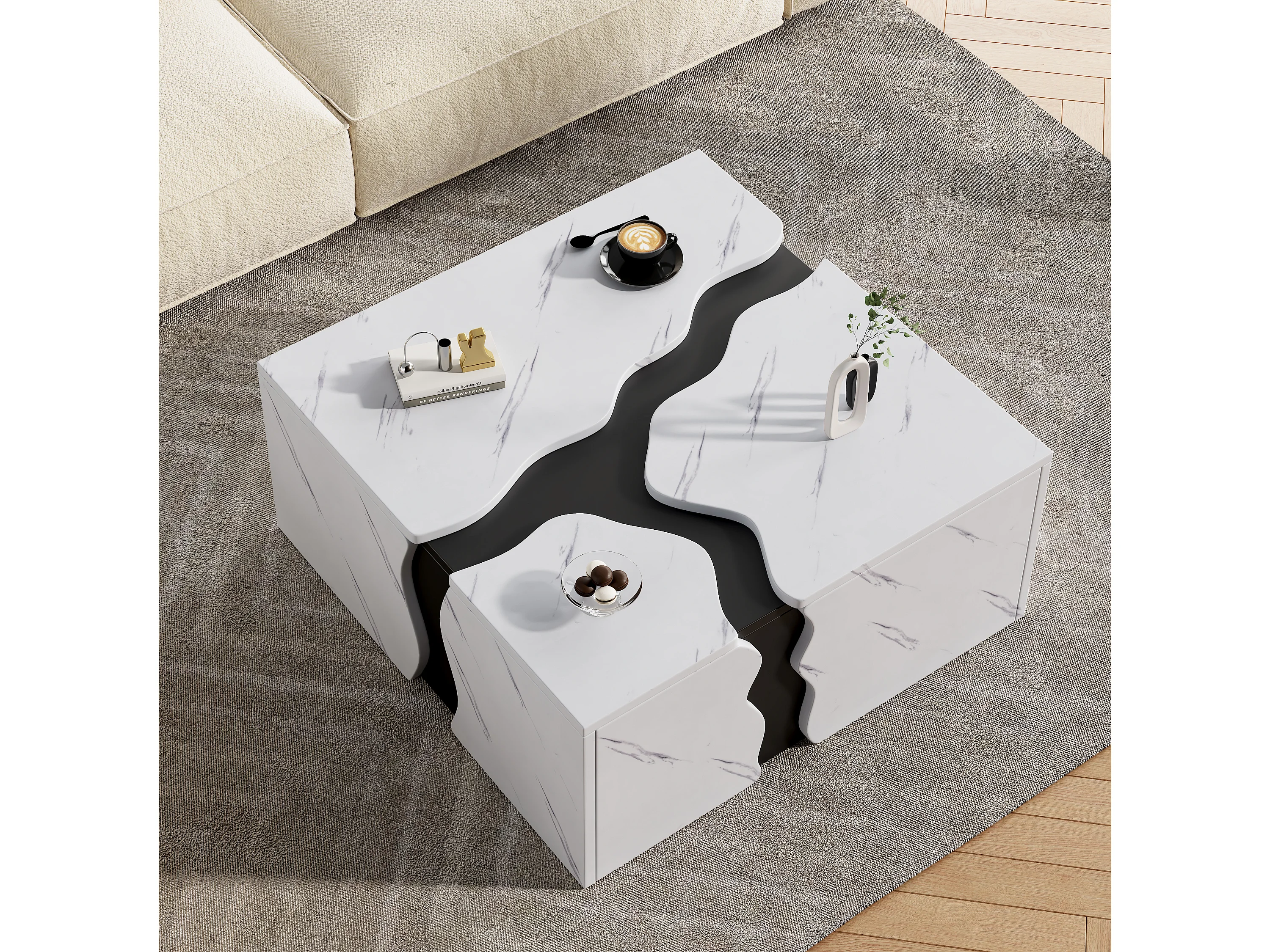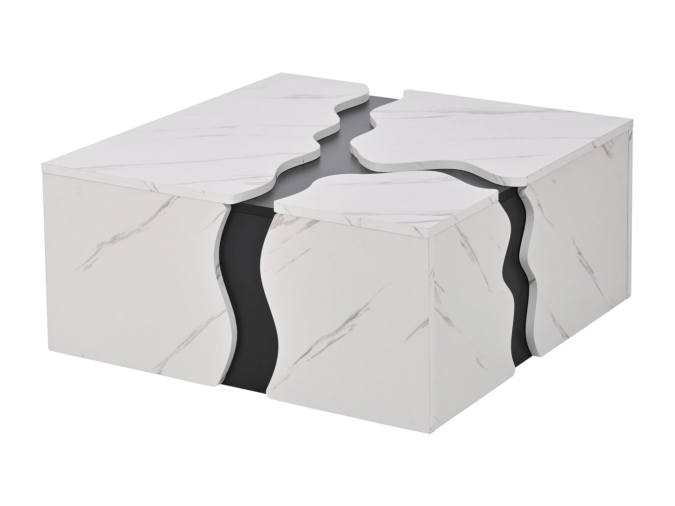 Moderner Couchtisch 70x70x31 cm - mit 1 Schublade - Marmorfurnier - Spanplatten - Weiß