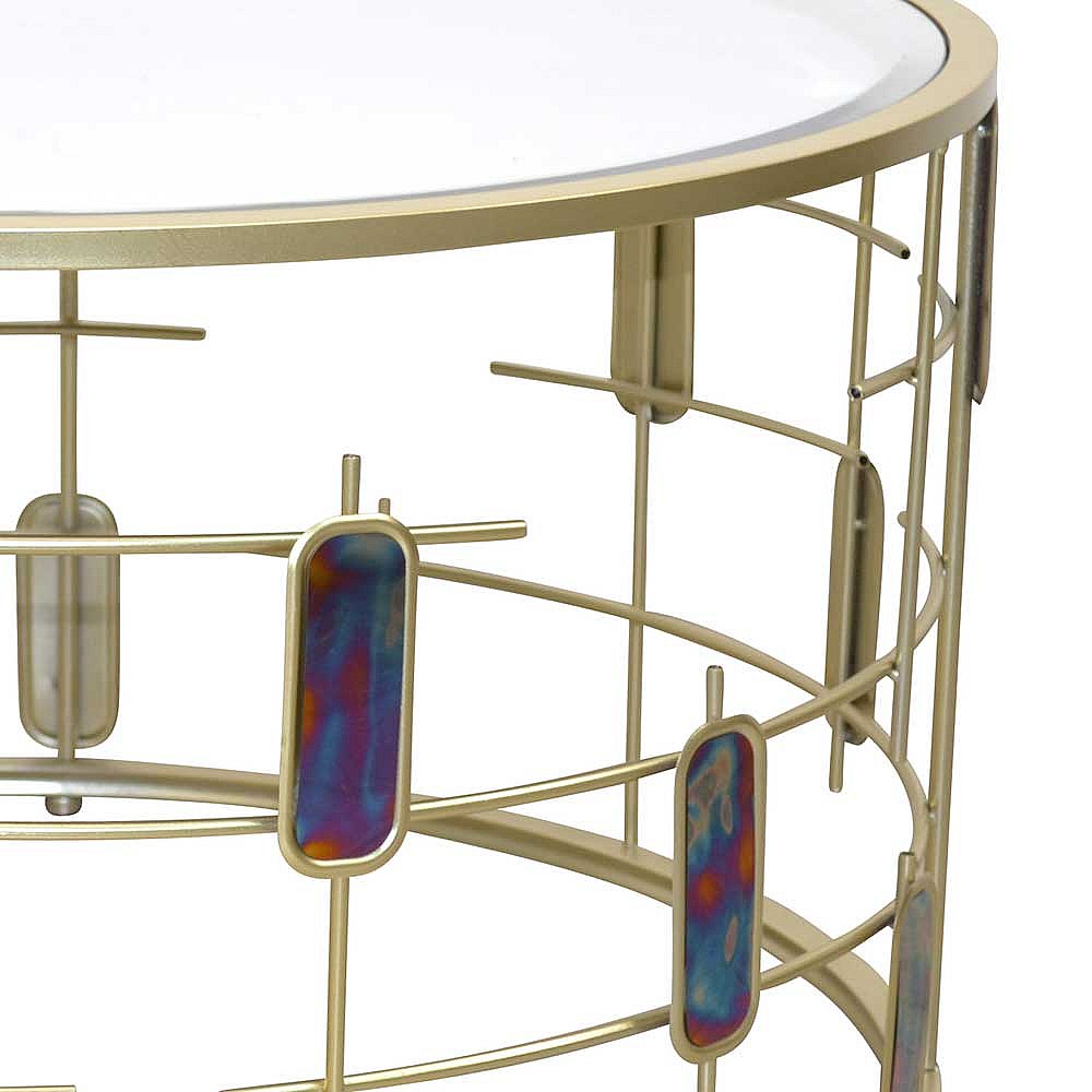 Moderner Designtisch in Goldfarben Spiegelglas und Metall