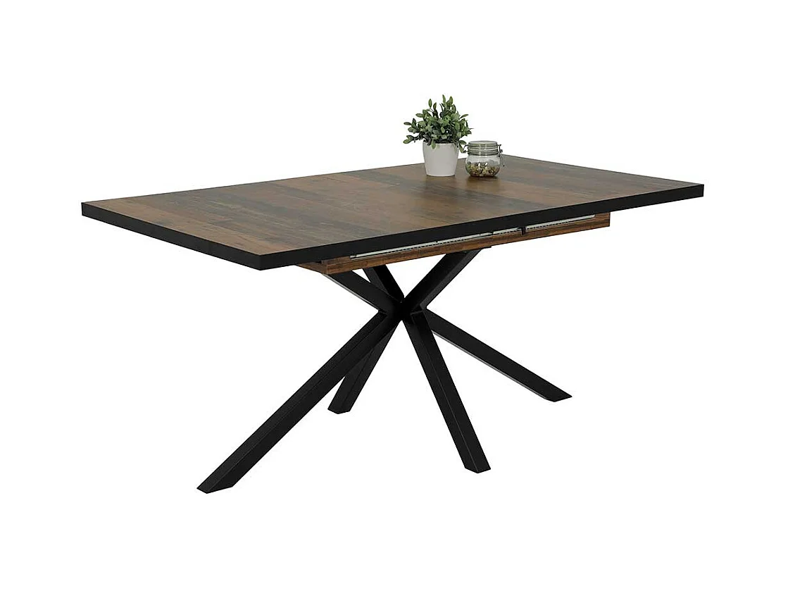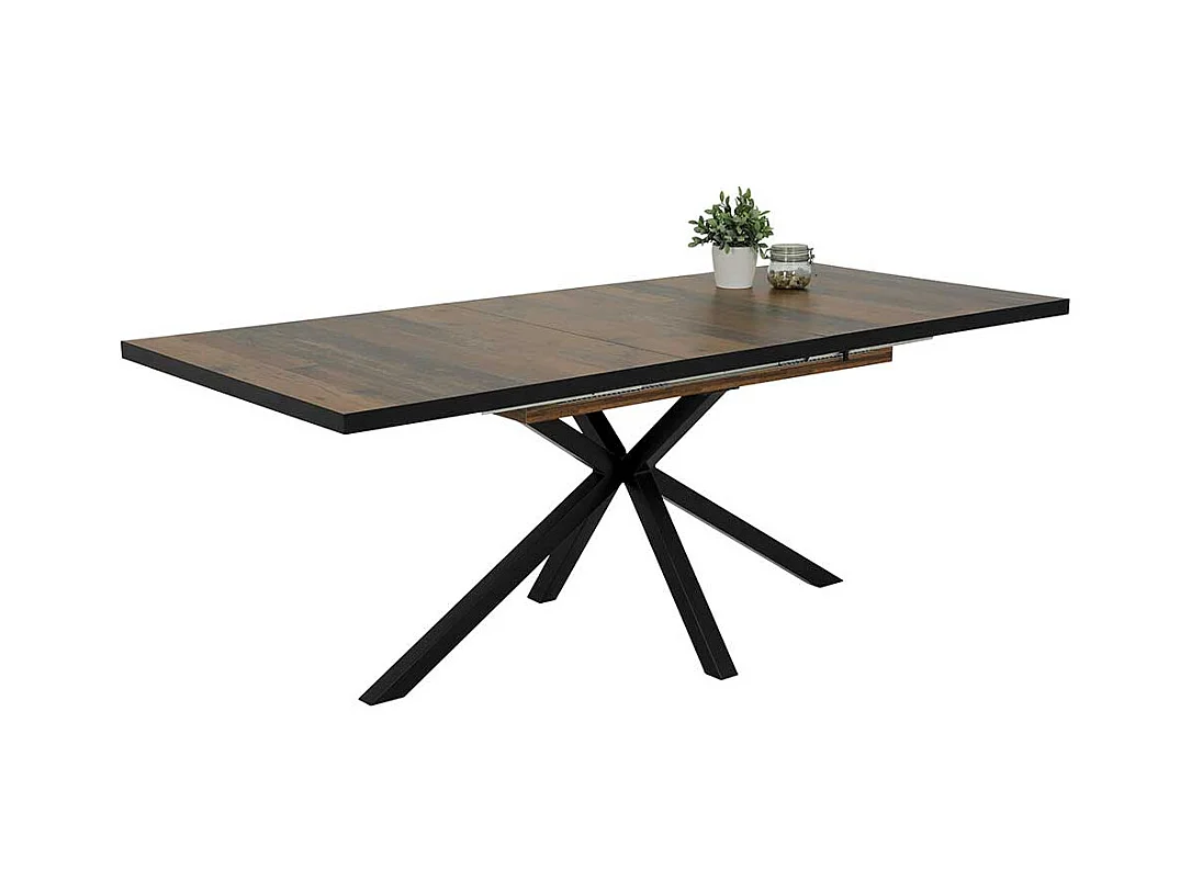 Moderner Esstisch in Holz Antik Optik und Schwarz ausziehbar