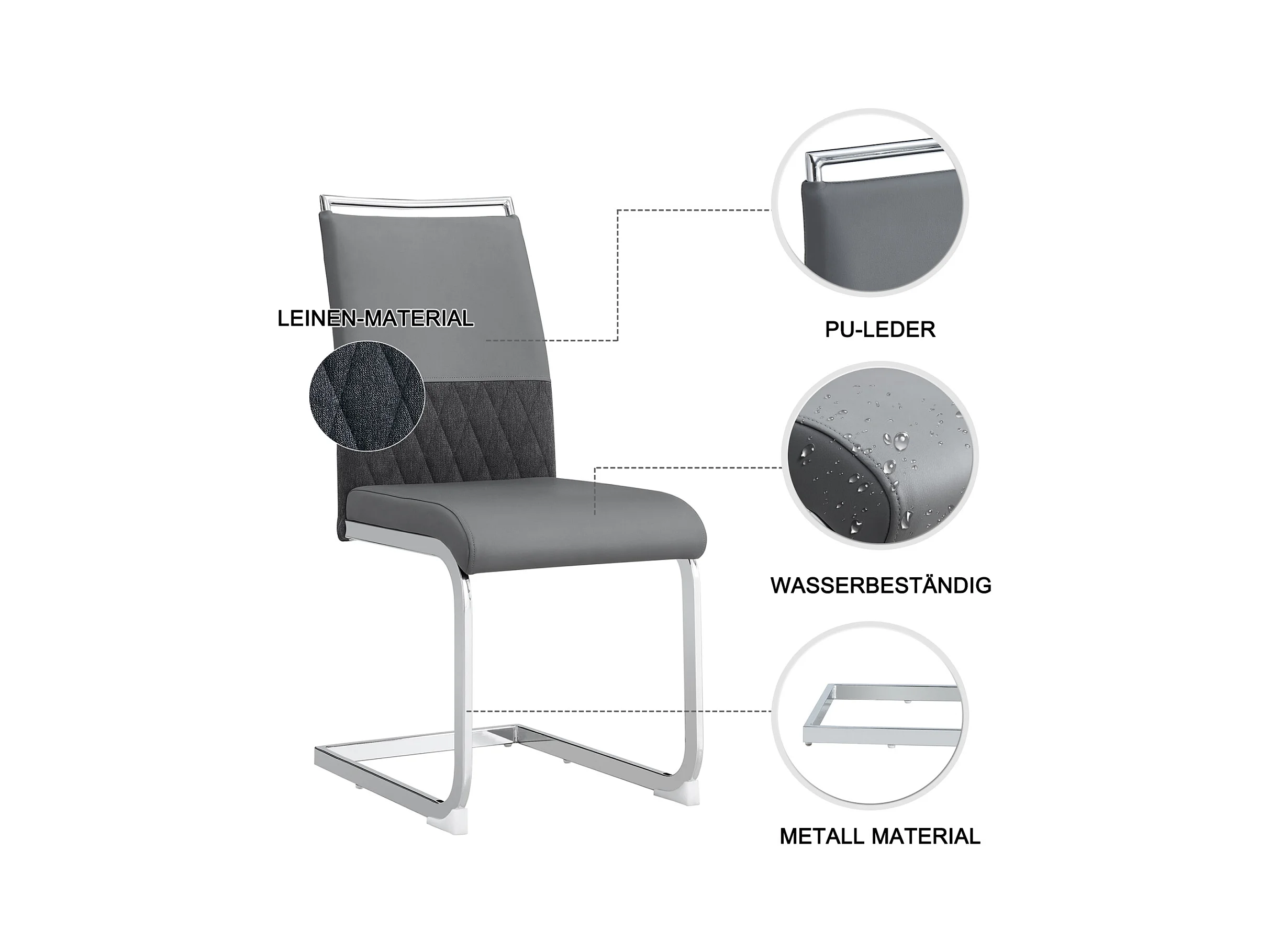 Modernes Esszimmerstuhl-Set, 6 Stück – Hohe Rückenlehne, gepolsterte Beine, Stuhl mit gekreuzten Streifen, Rückenlehne für Esszimmer, Küche, Bürostuhl – Grau