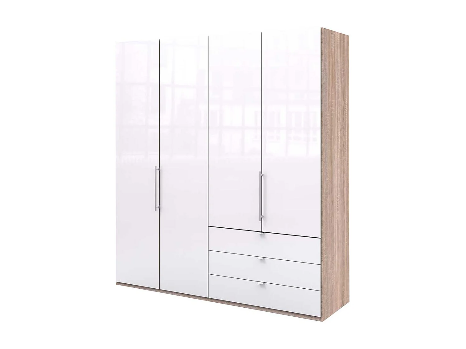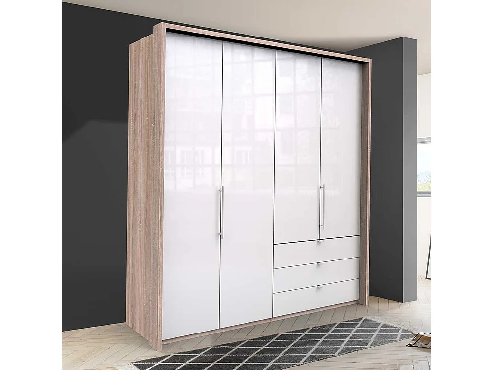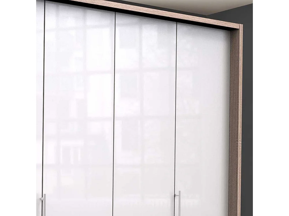 Moderner Falttüren Schrank in Weiß Eiche Sägerau glasbeschichtet