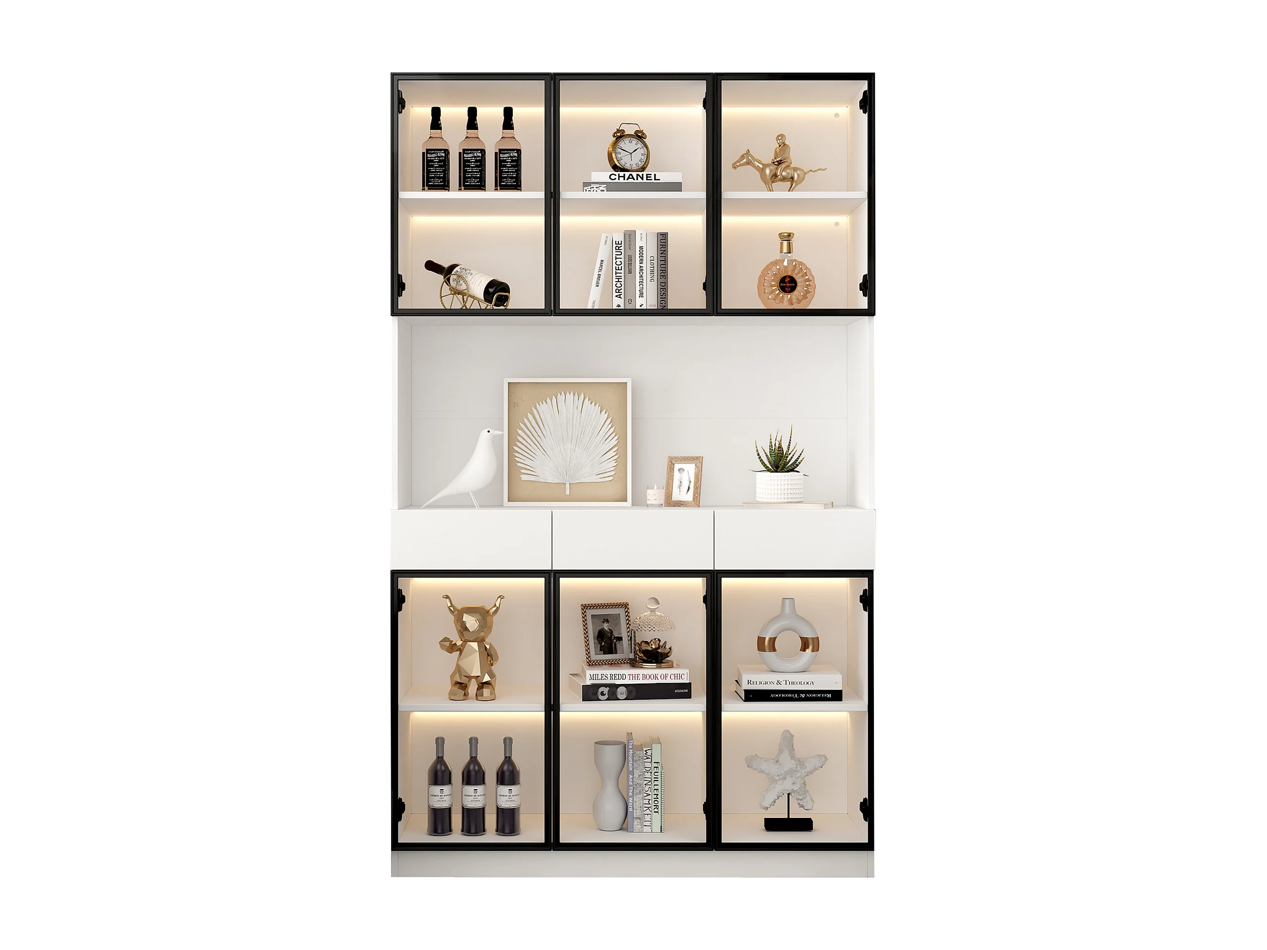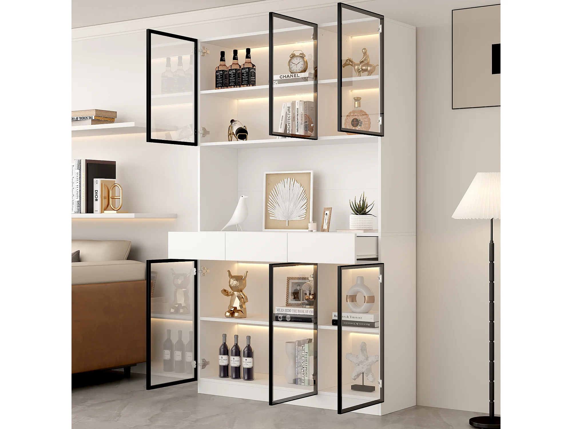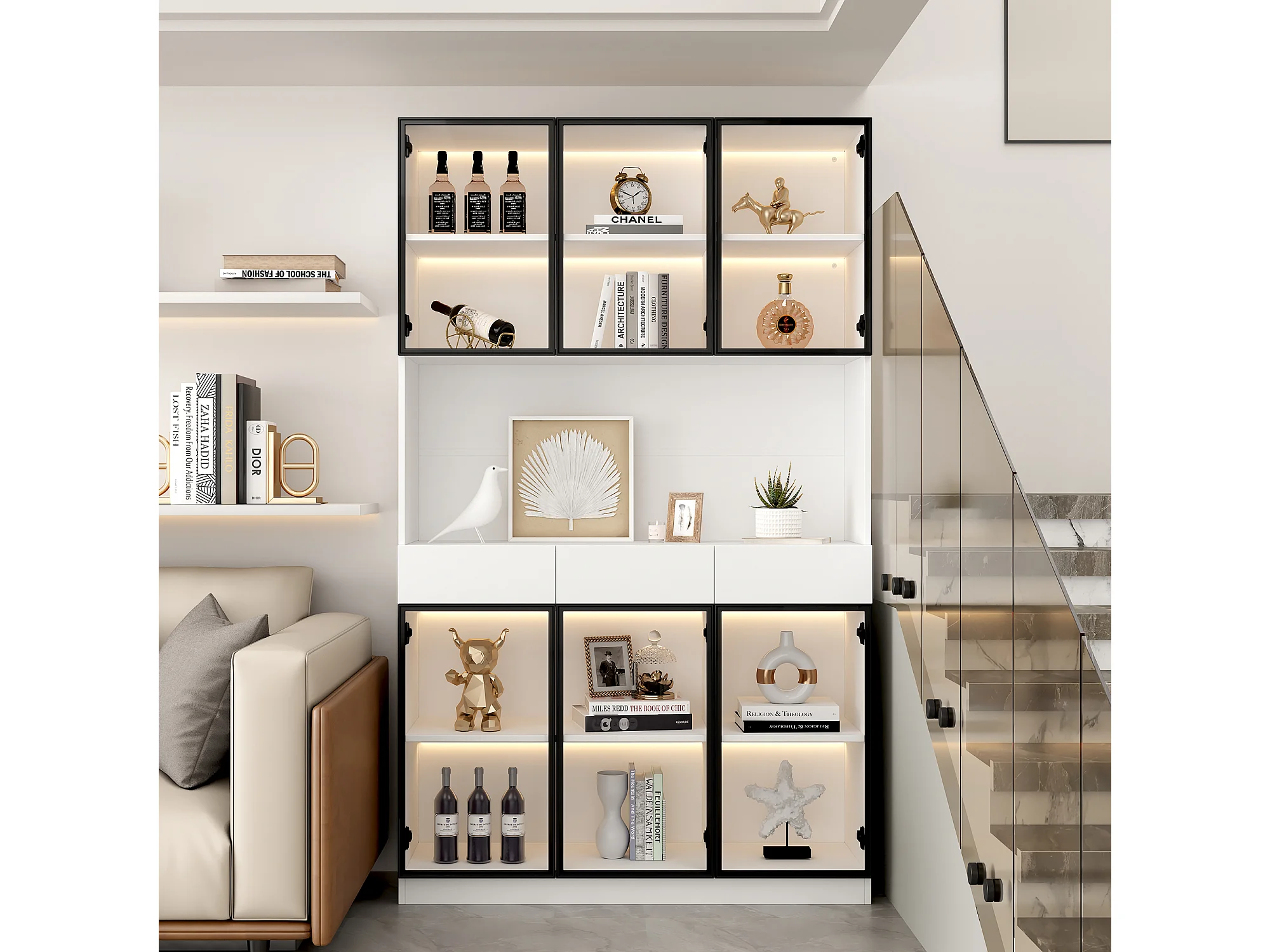 Moderner, hoher Glasschrank – 120 x 36 x 200 cm – mit LED-Beleuchtung und 6 Türen – für Sammlerstücke/Schlafzimmer – Spanplatte – weiß